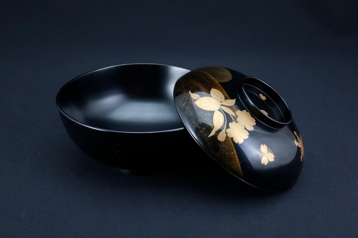 ☆さりげない感じの桜と若松の蒔絵がお洒落な吸物椀。月の背景もとても綺麗です。