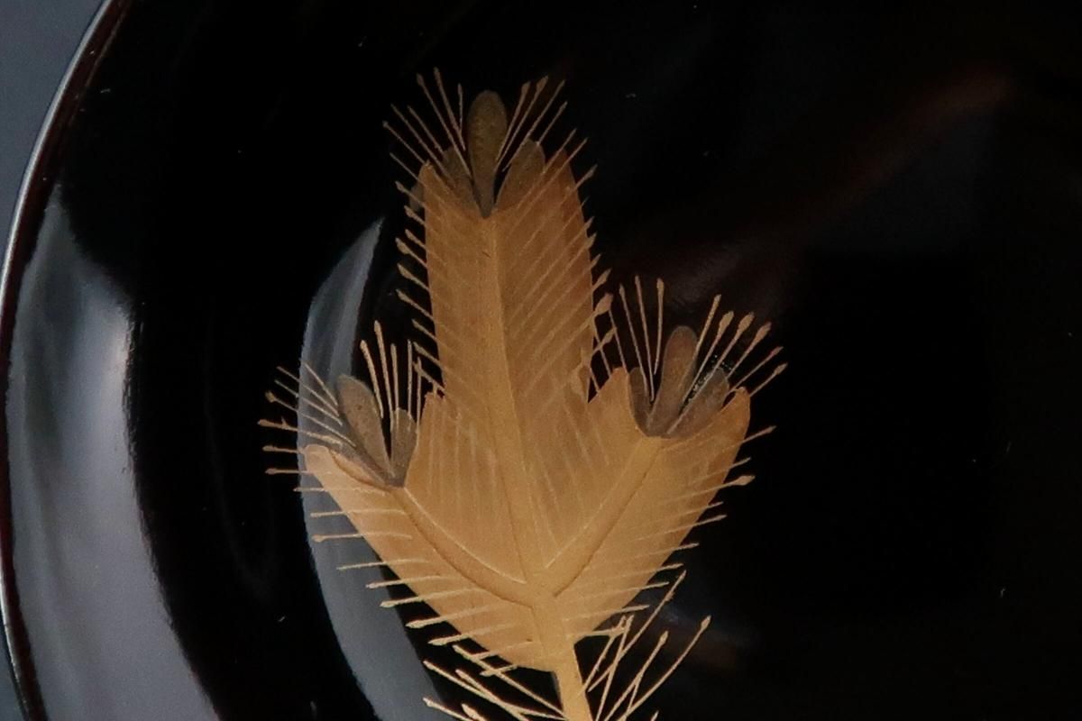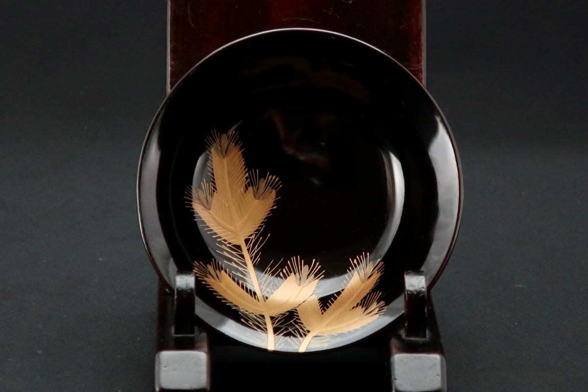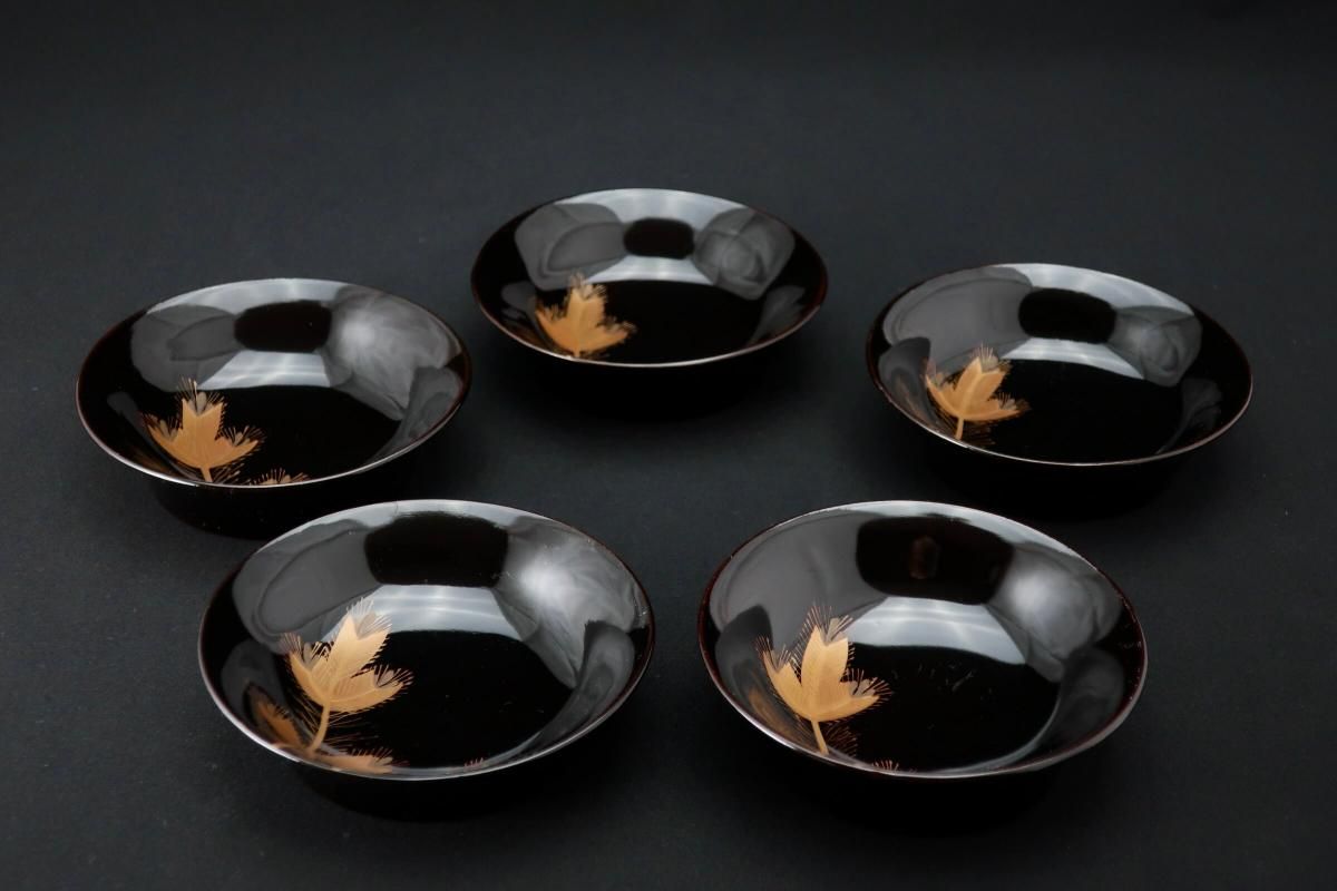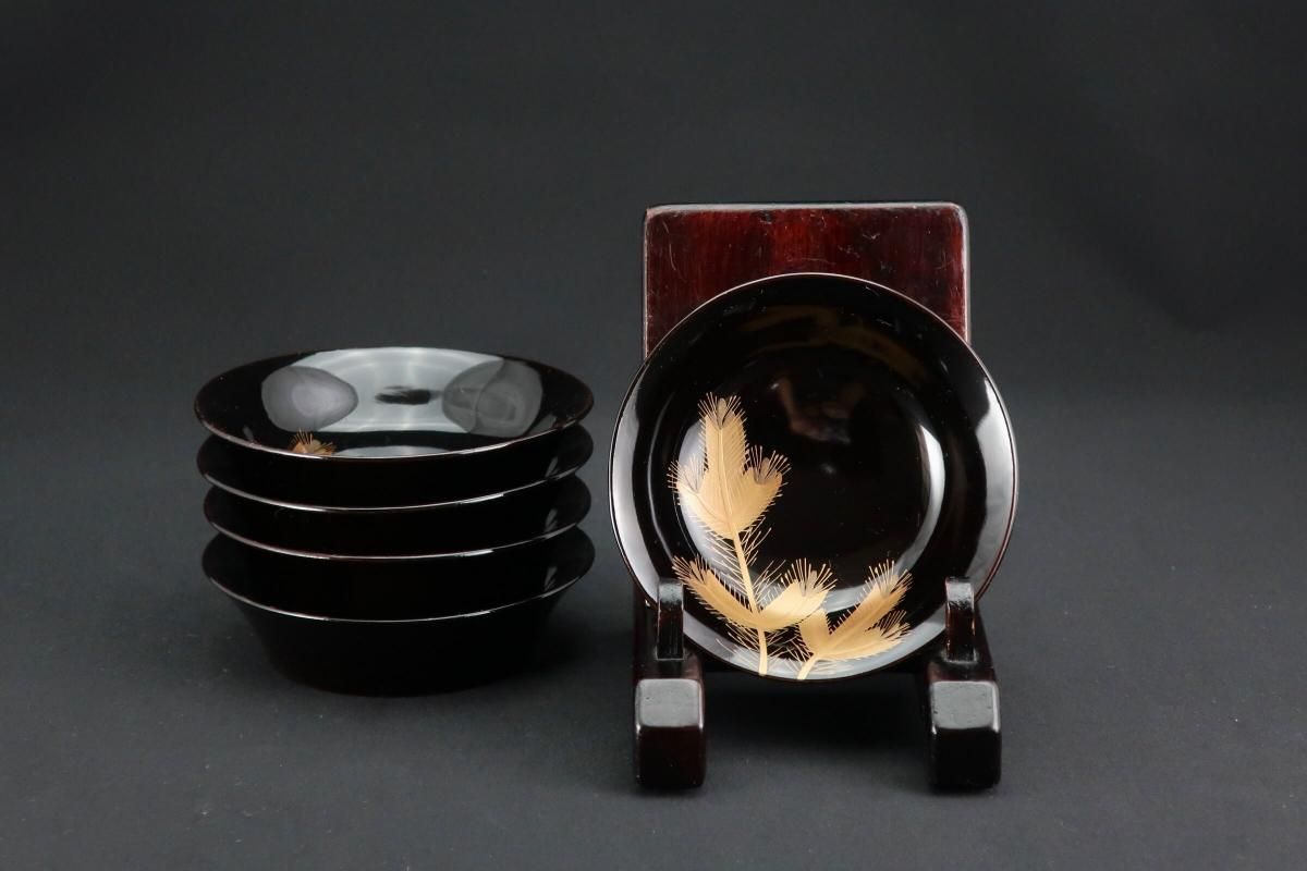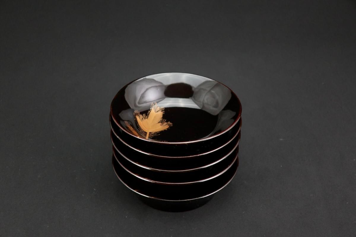 黒塗若松蒔絵菓子皿 五枚組 / Lacquered Sweet Plates with Pine 'Makie' picture set of 5