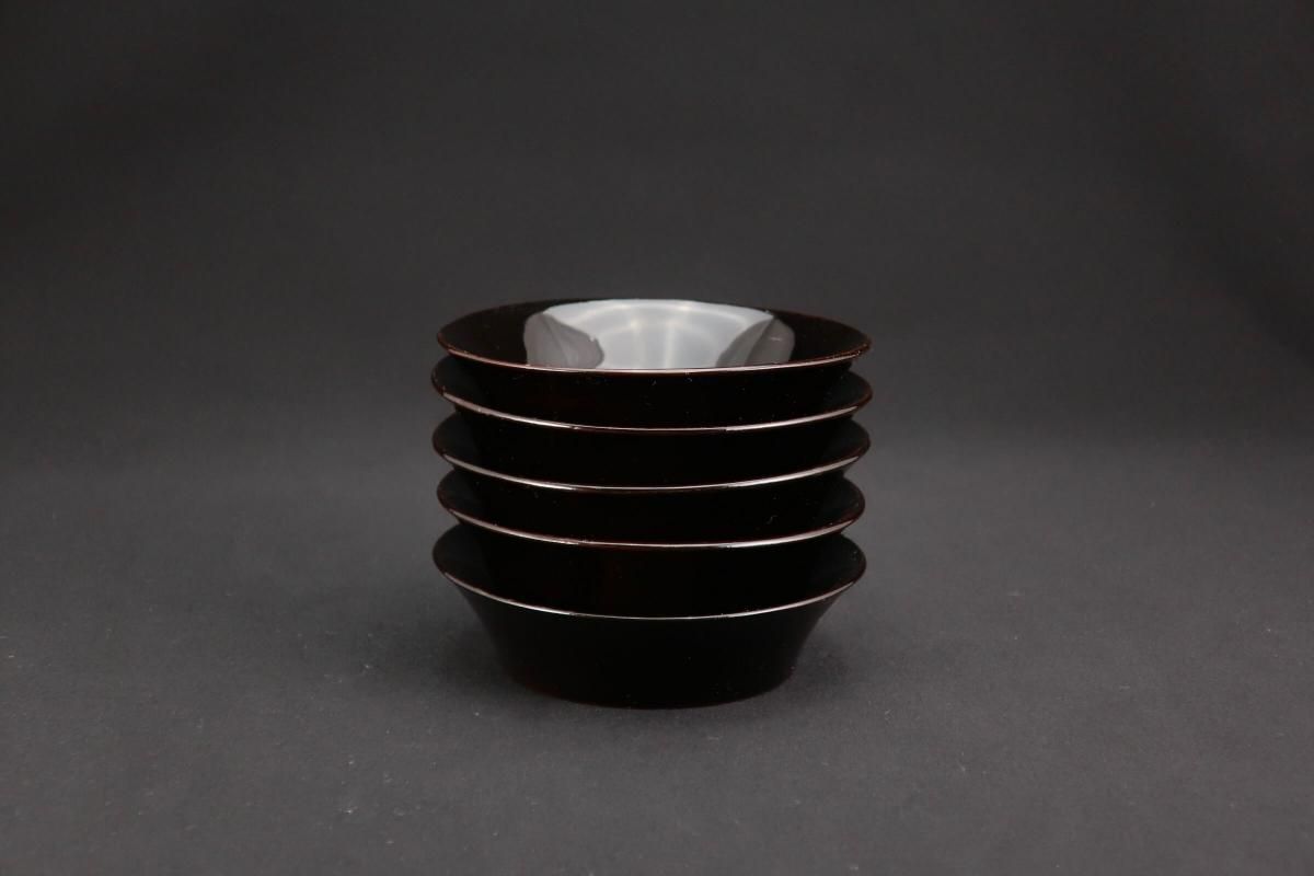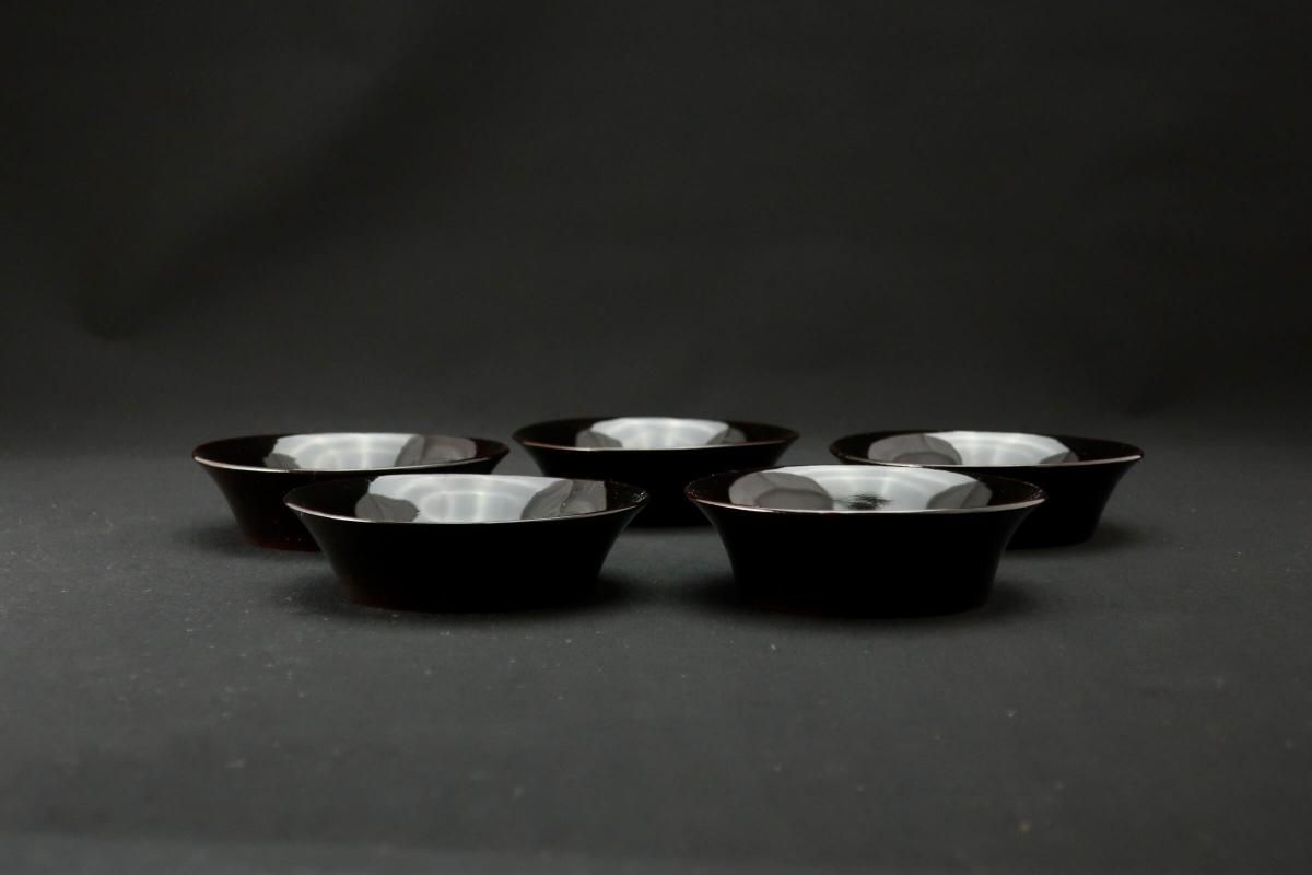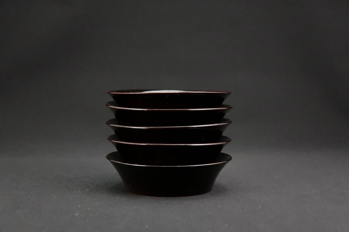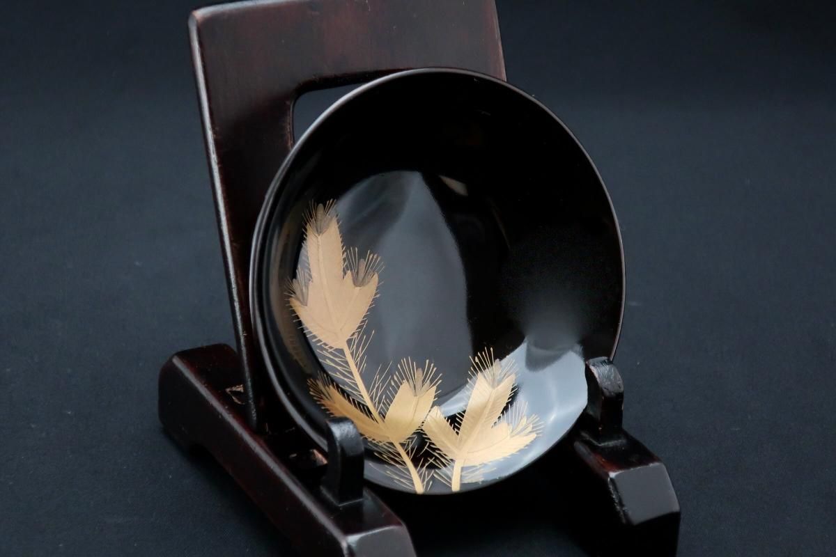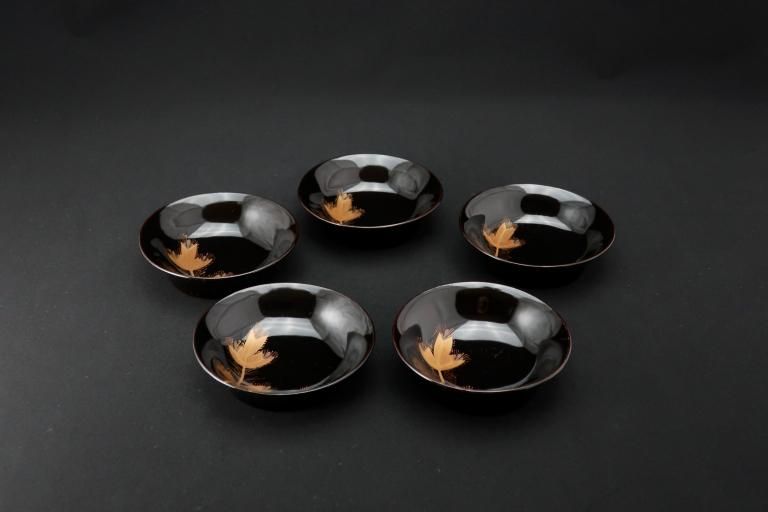 黒塗若松蒔絵菓子皿 五枚組 / Lacquered Sweet Plates with Pine 'Makie' picture set of 5