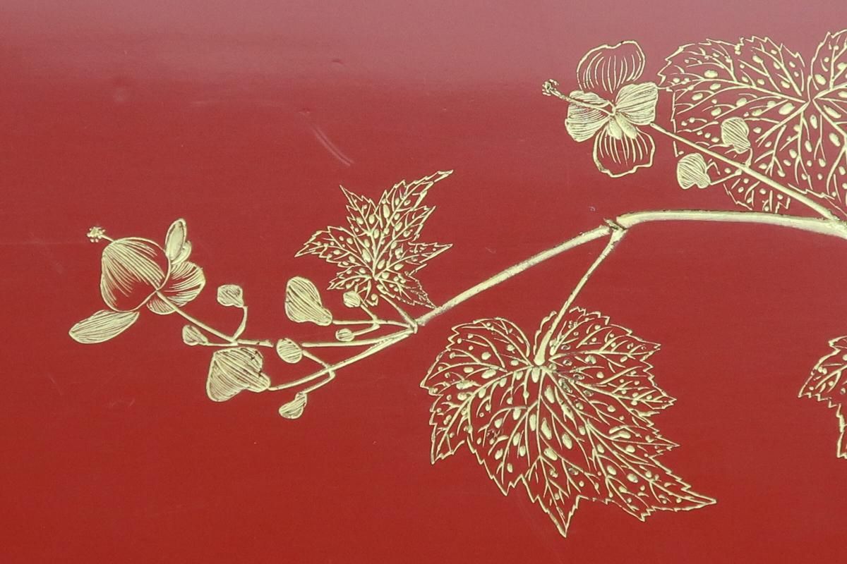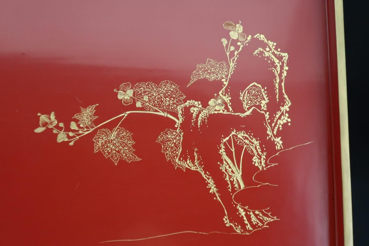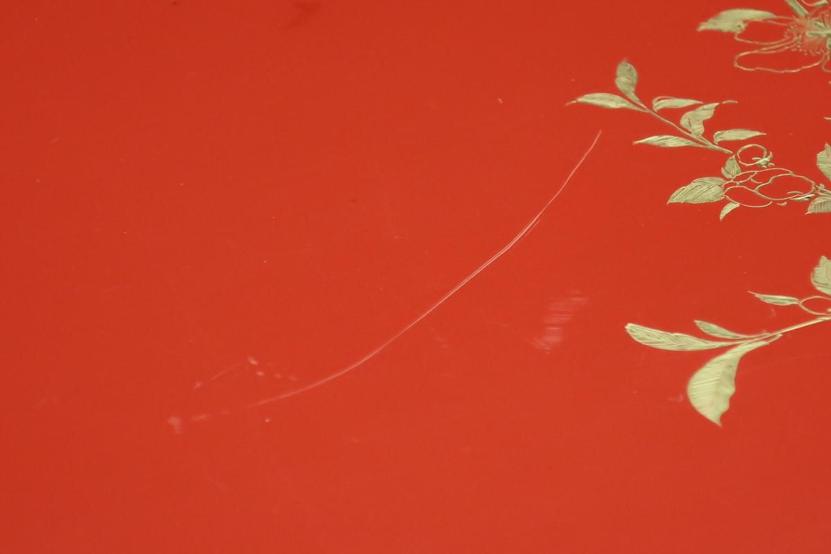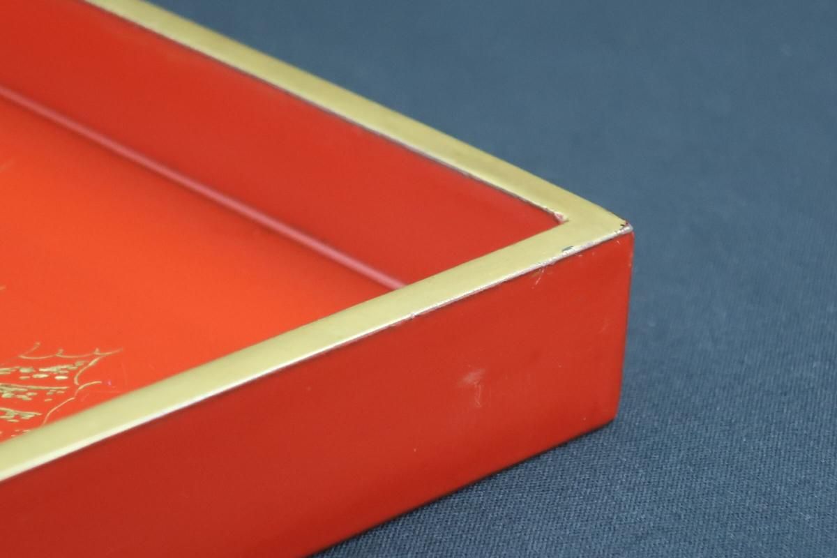 そんな硯蓋ですが、さまざまな大きさがあるようで、こちらは大振りの二枚組。沈金の絵がさりげなくて綺麗です。どんなものを載せていたか興味津々ですが、他の用途でもアイデア次第で楽しめそうですね。