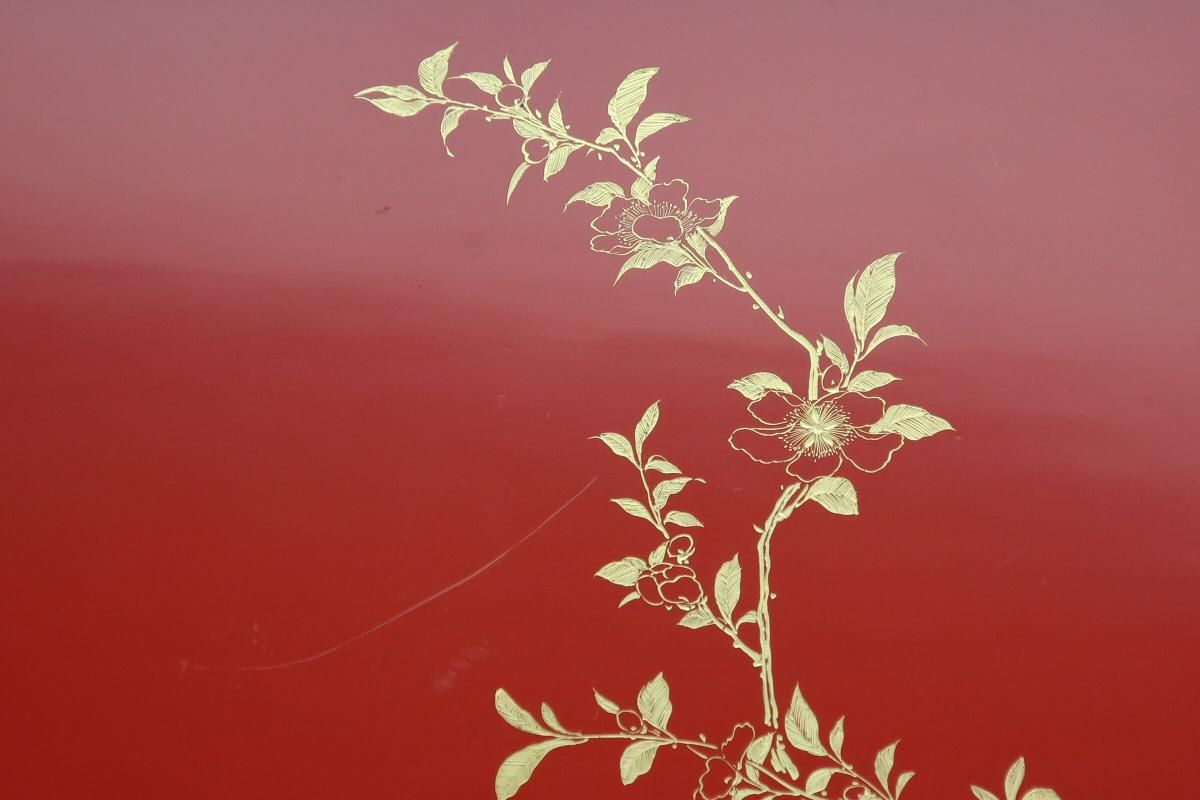 朱塗沈金硯蓋 大小二枚 / Red-lacquered 'Suzuributa' Trays set of 2