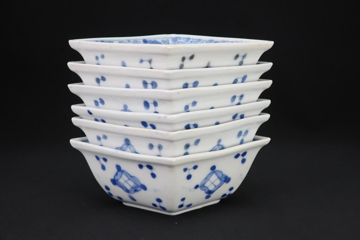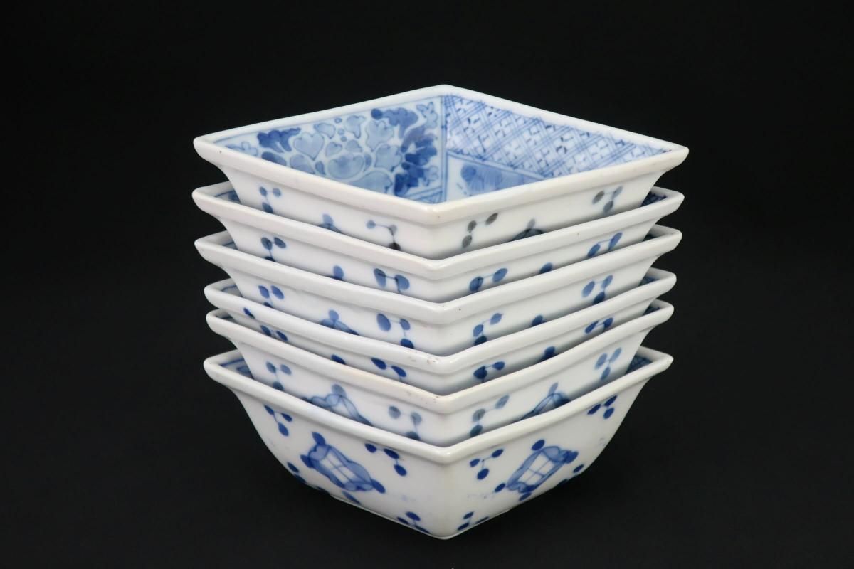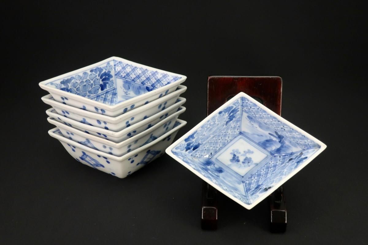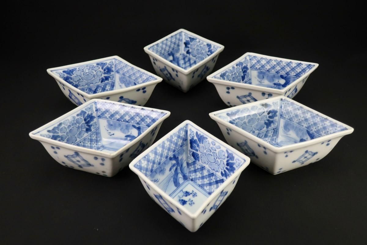 伊万里染付牡丹文菱形小鉢 六客組 / Imari Small Diamond-shaped Bowls with the picture of Peony Flowers set of 6