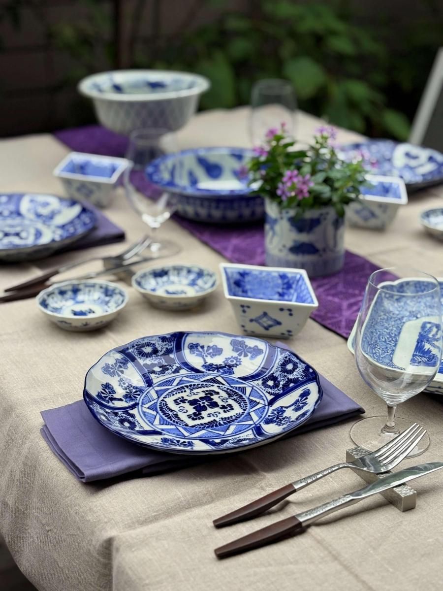 ☆2セット在庫がありますが、手作り故、呉須の色の濃淡等、細かな相違があります。全ピースの掲載は致しませんが、ご了承下さいませ。また、当時の窯の状況から、焼成時に出来た鉄分が付着して出来た茶色の部分や、ピンホール、釉薬の剥がれ等ございます。ご了承の上、ご購入くださいませ。