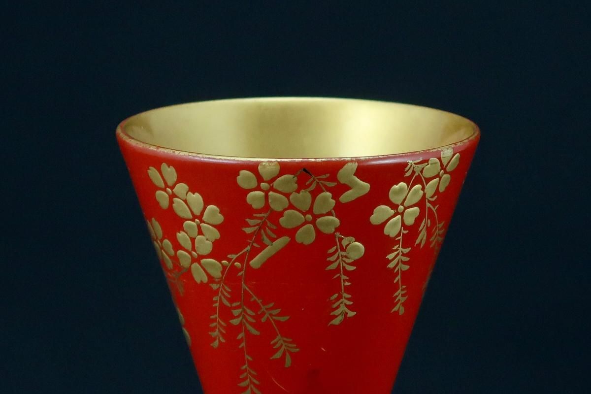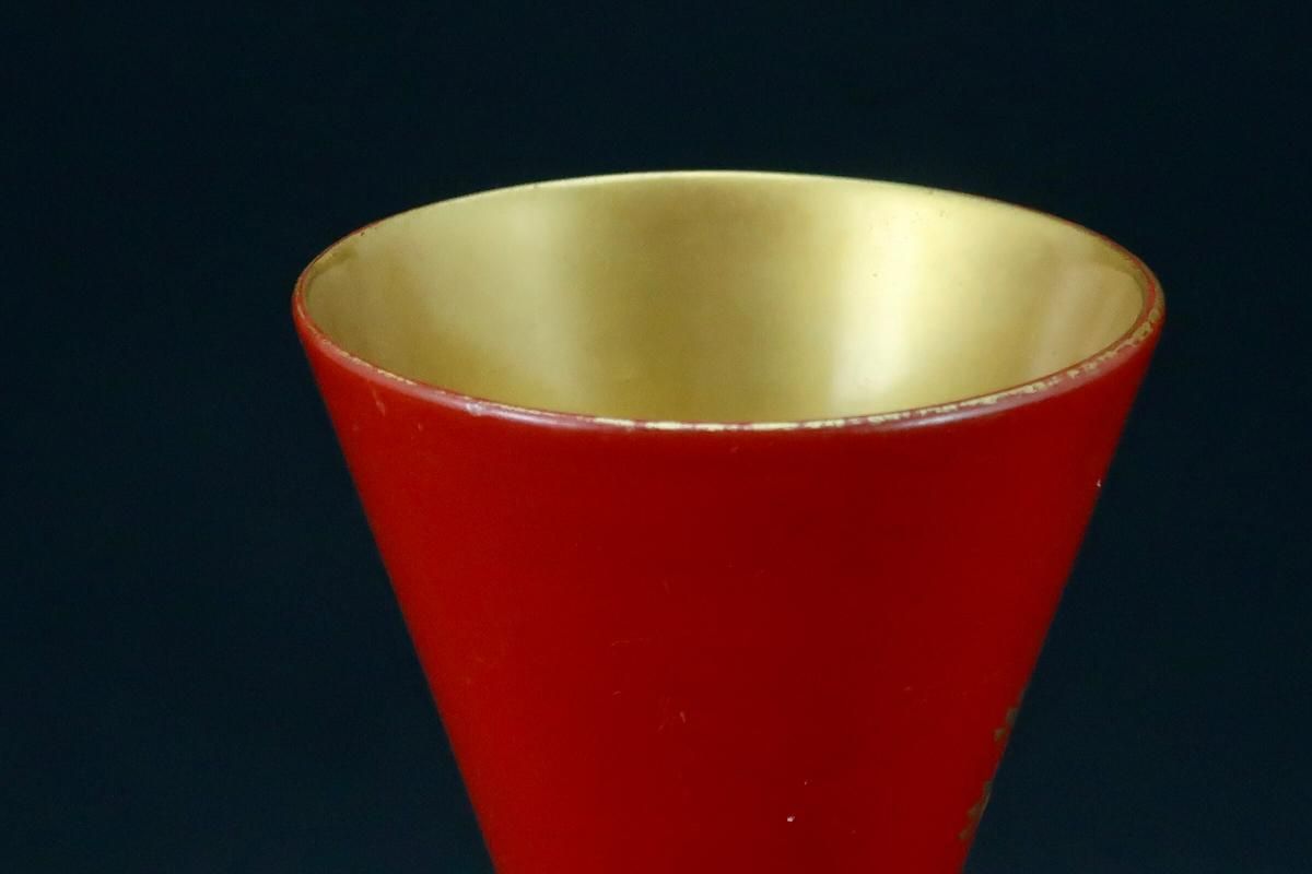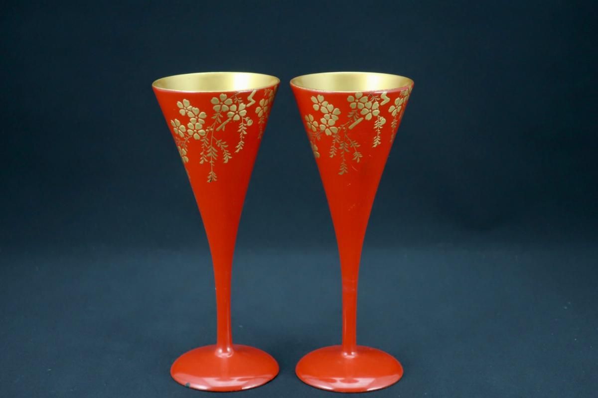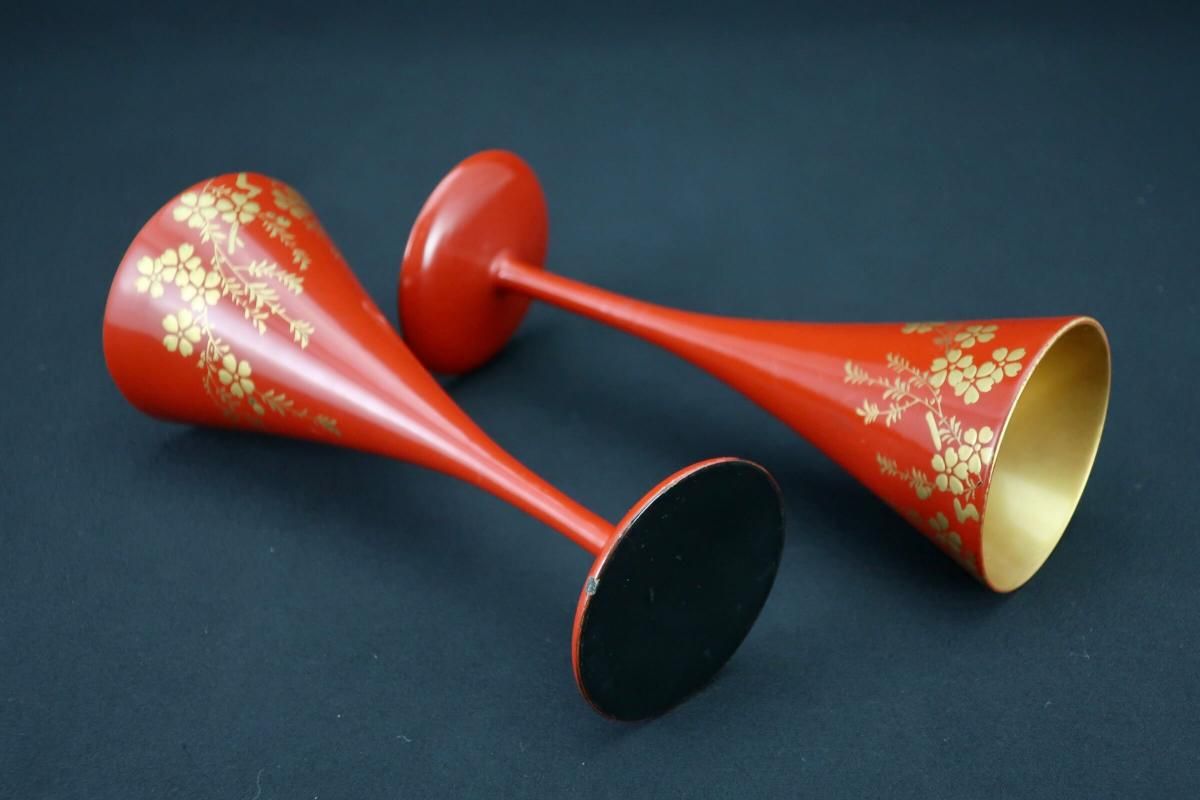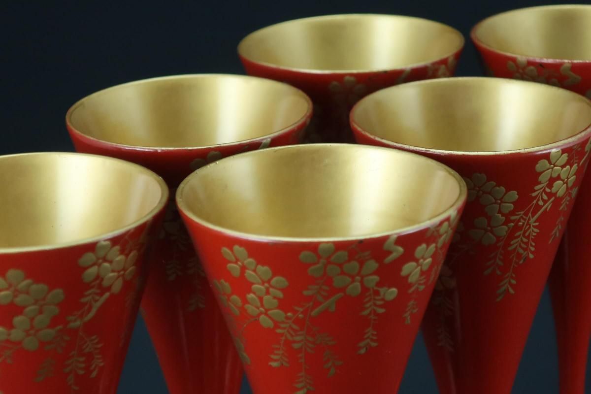 朱塗内金桜蒔絵脚付酒盃 六客組 / Red-lacquered Sake Cups with 'Makie' picture of Sakura set of 6