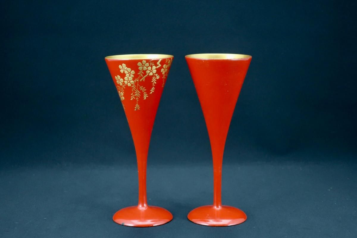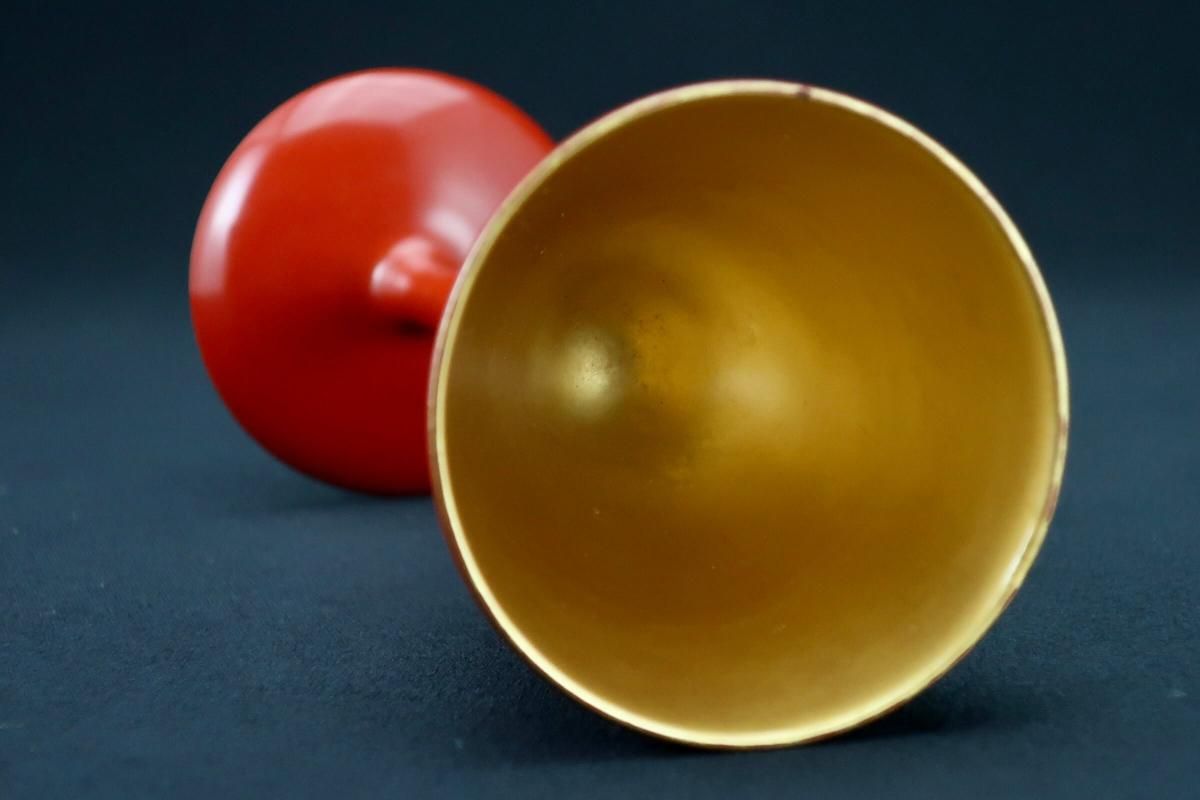 ☆存在感たっぷりのテーブルのアクセントに相応しい脚付の朱塗盃。小さなアミューズを入れてもきっと素敵です。
