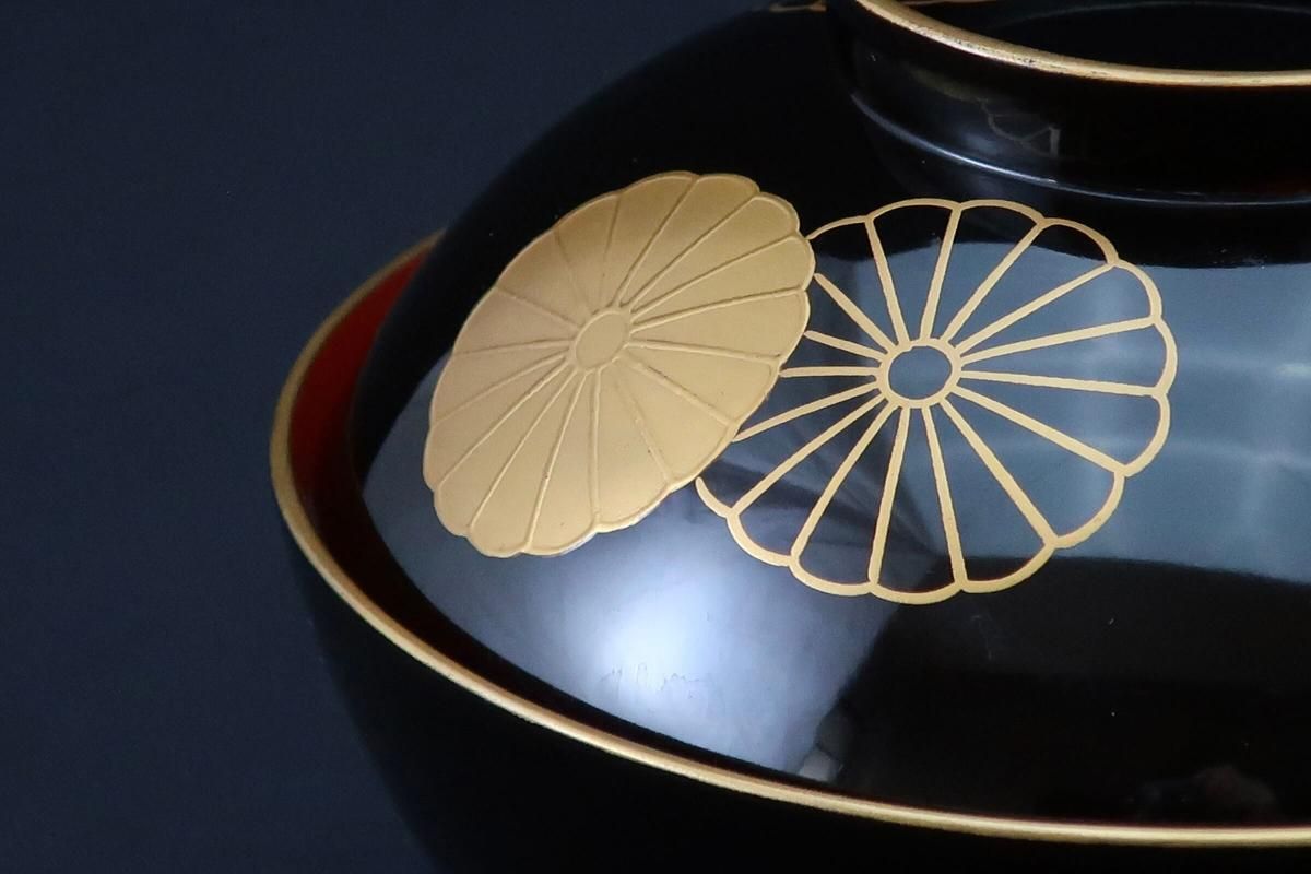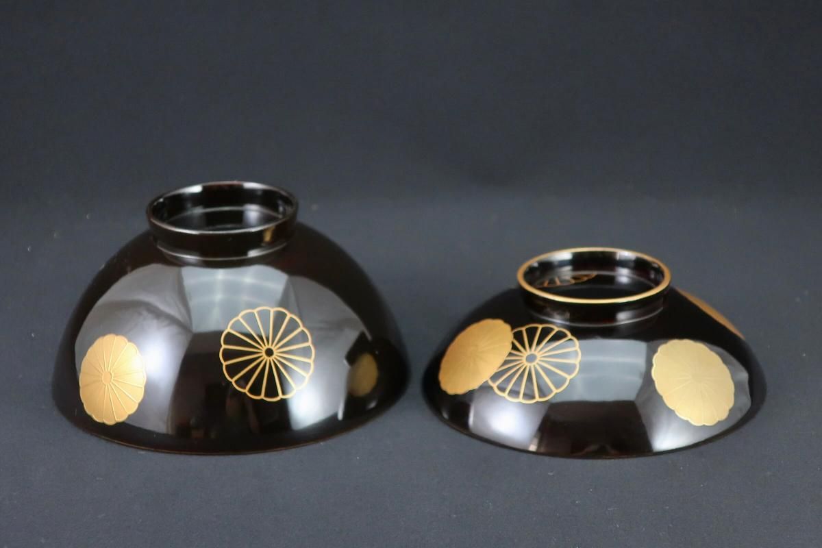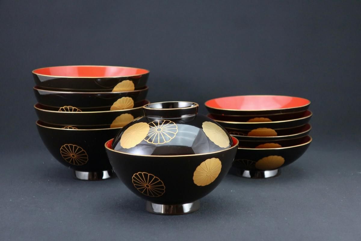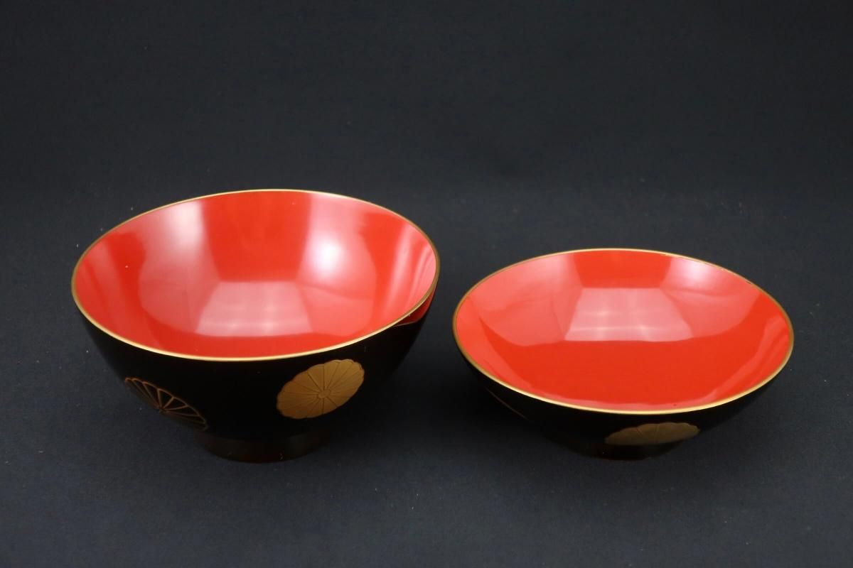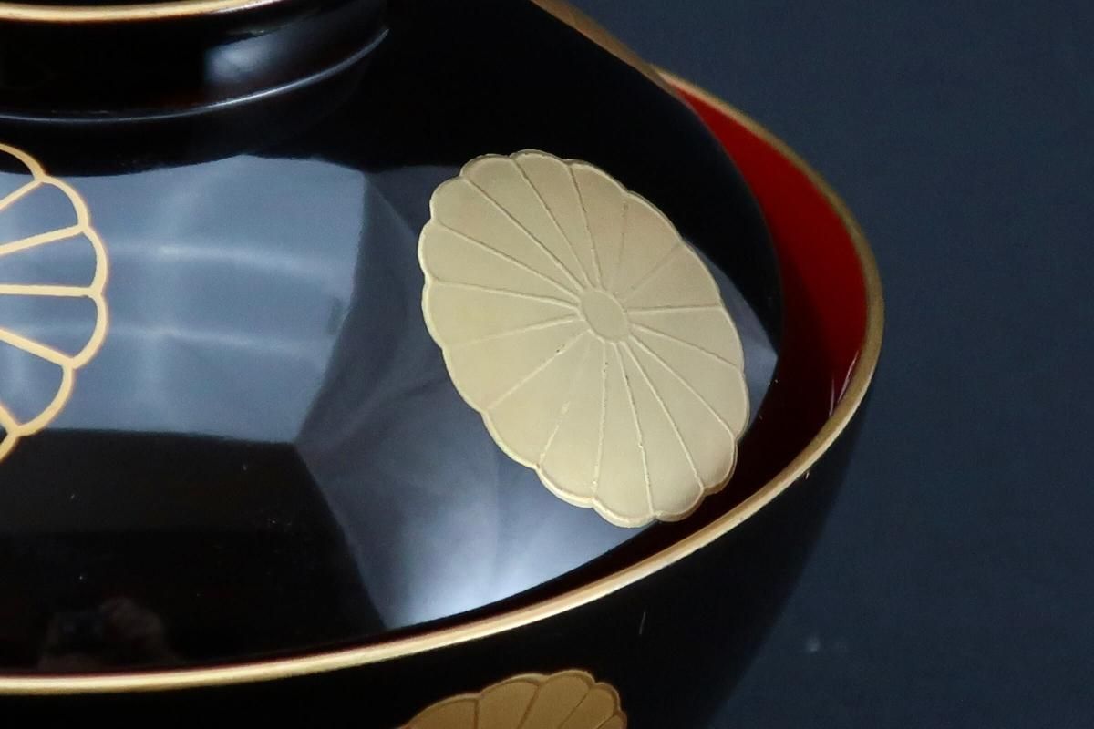 黒塗内朱菊蒔絵吸物椀 五客組 / Black-lacquered Soup Bowls with Lids set of 5-1.2