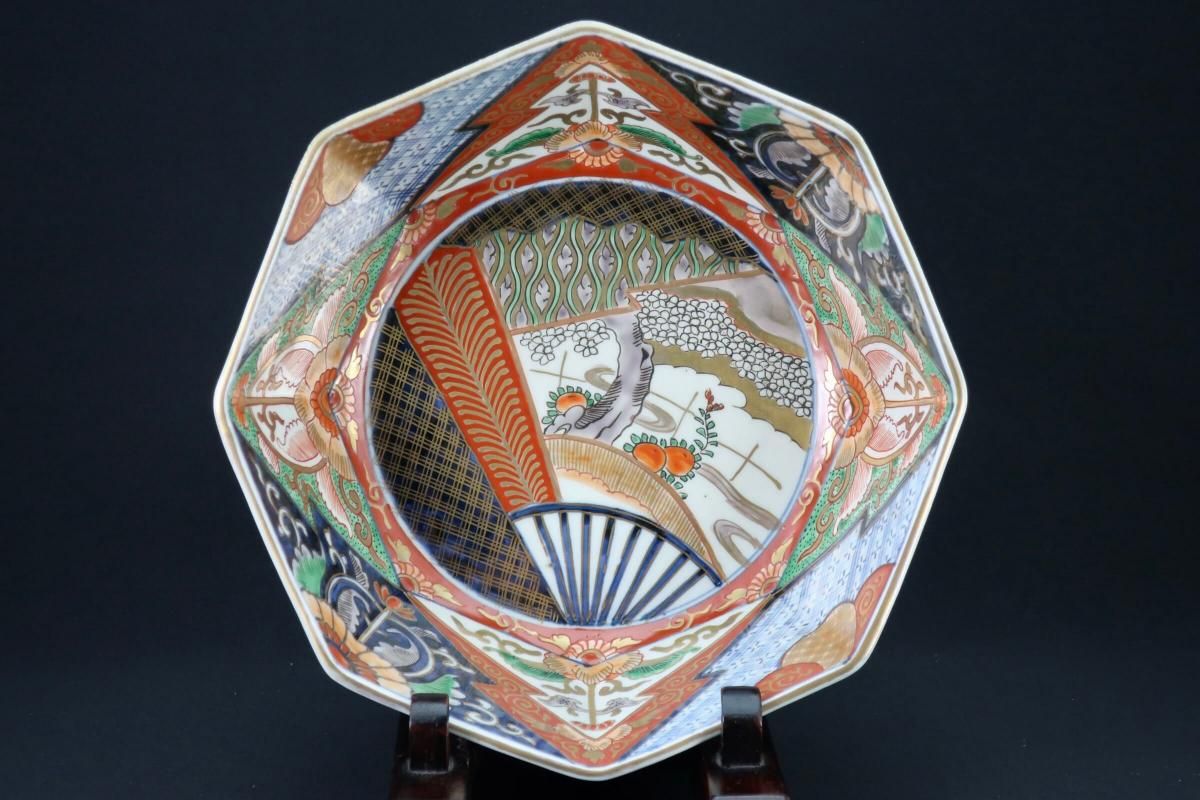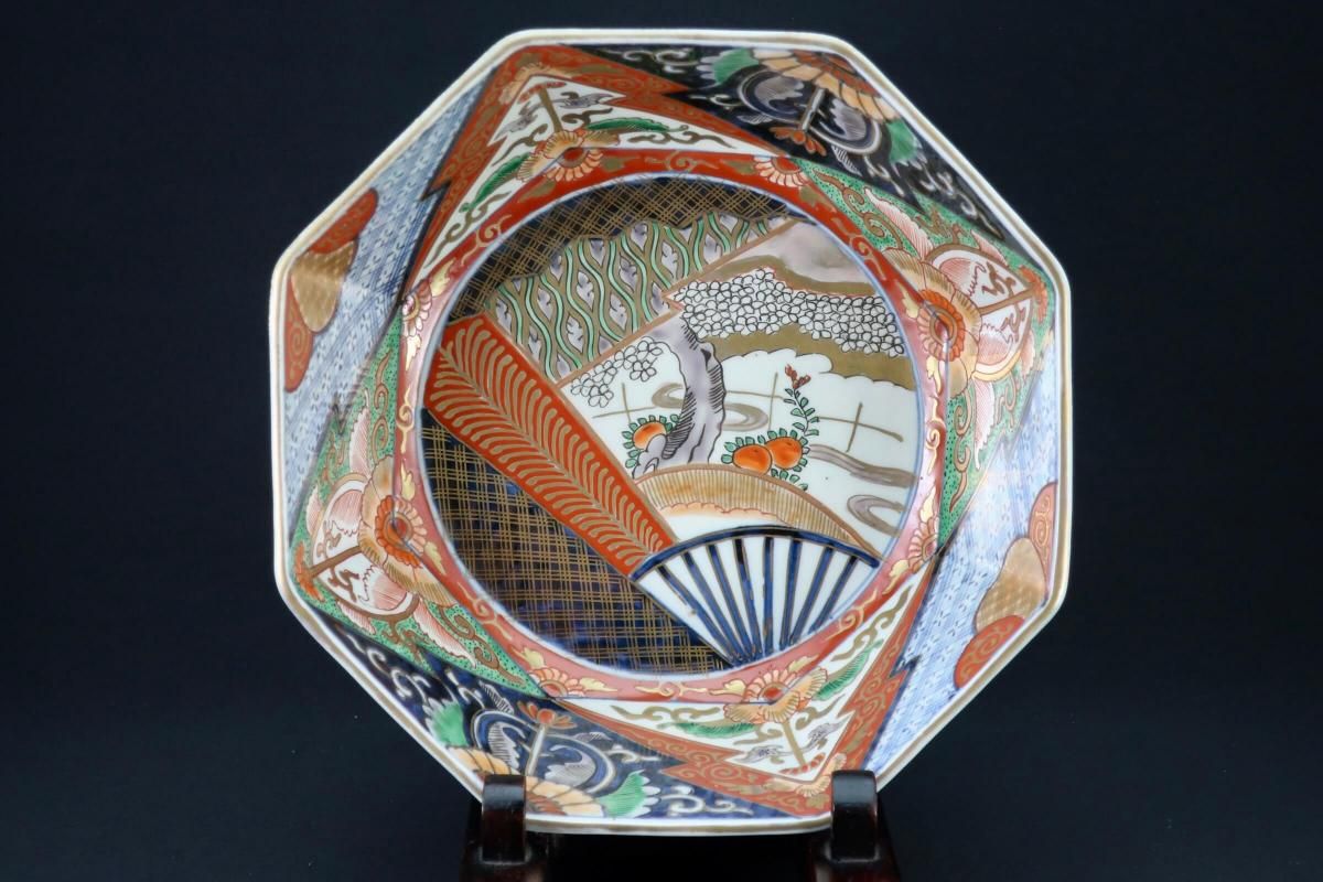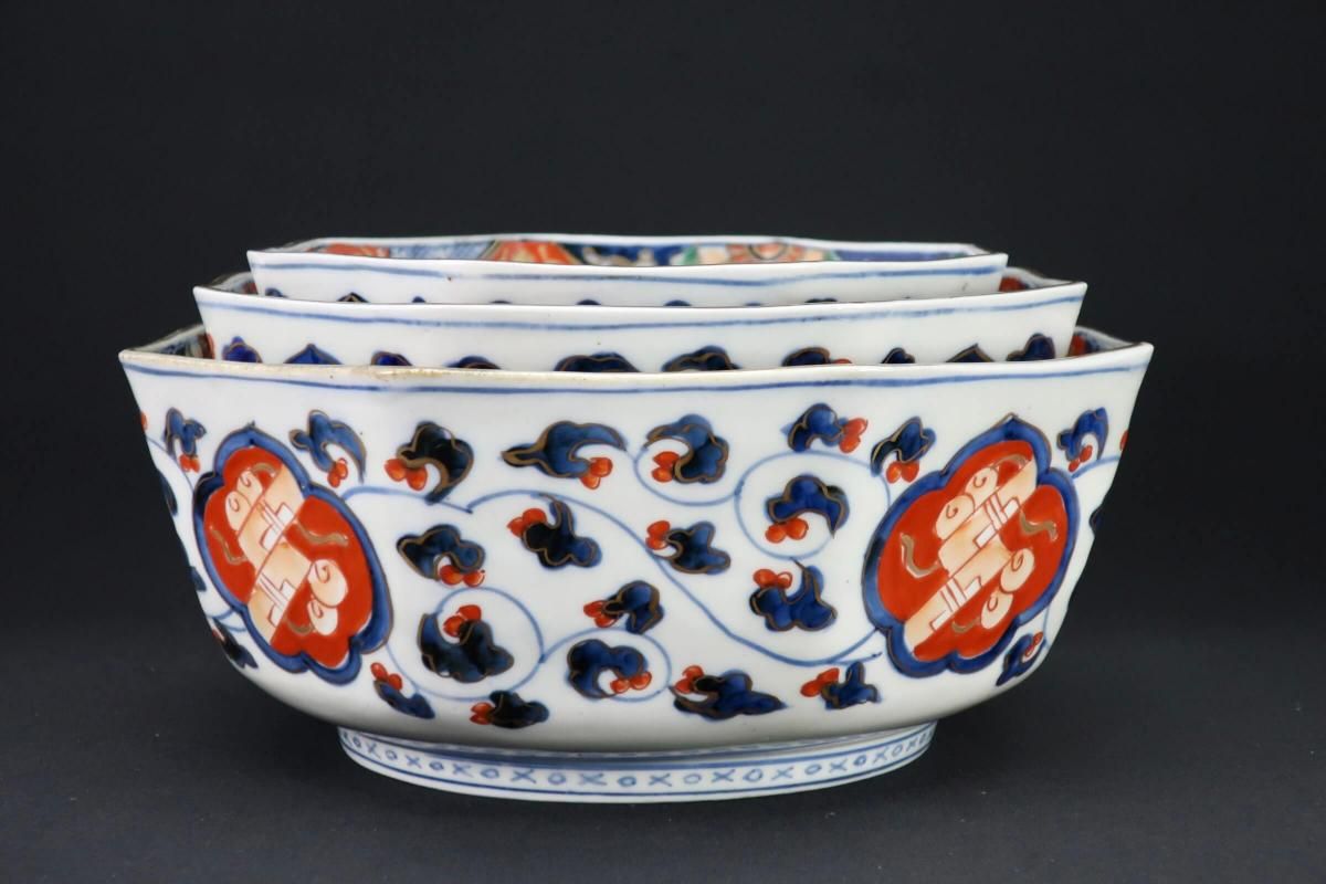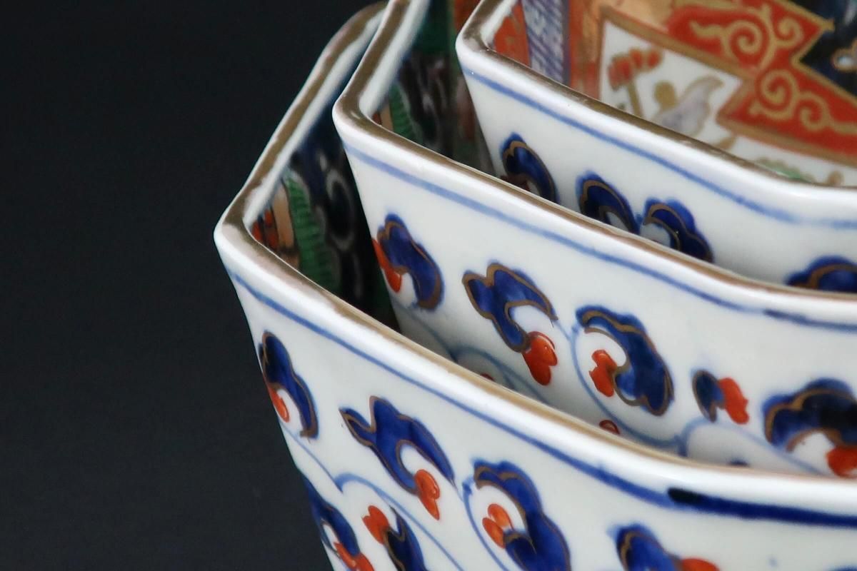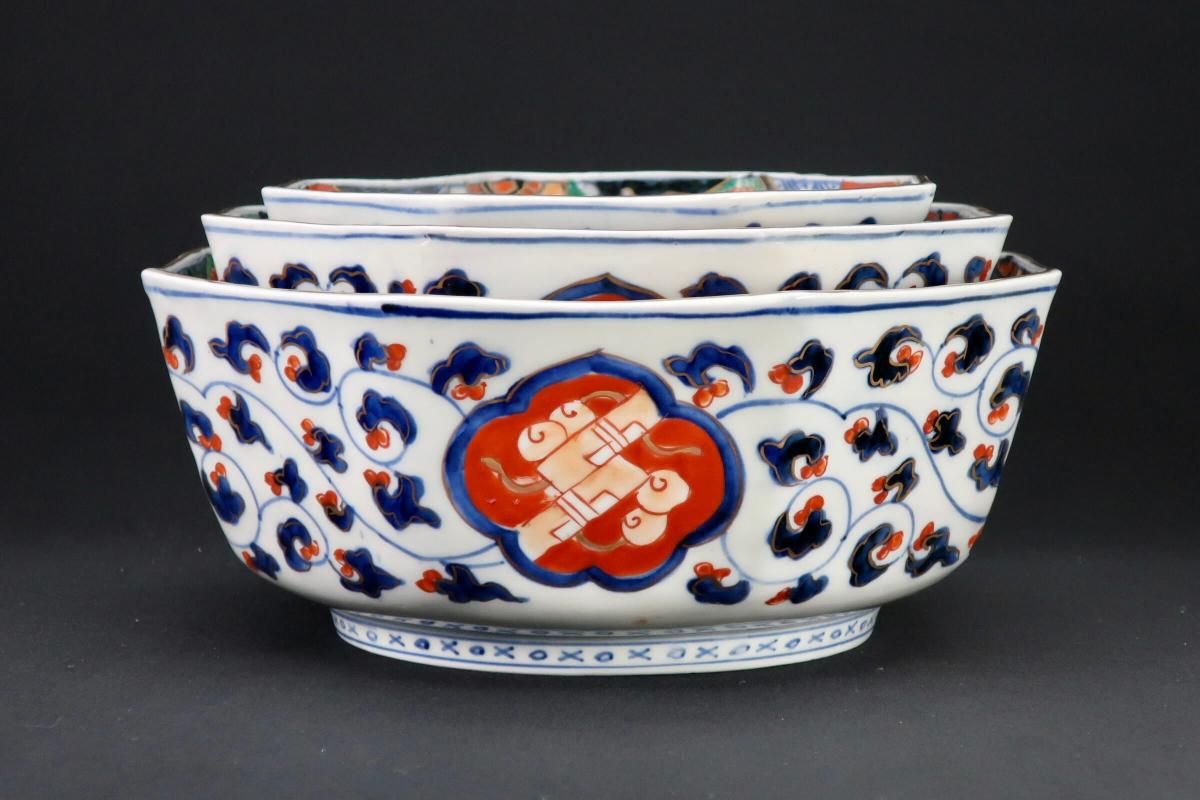 伊万里色絵扇面桜文八角三つ組鉢 / Imari Octagonal Polychrome Bowls with the picture of the Fans set of 3 (L/M/S)