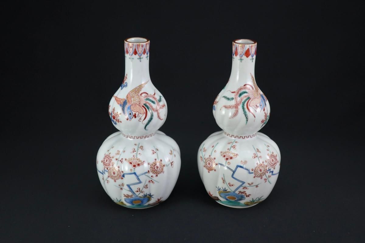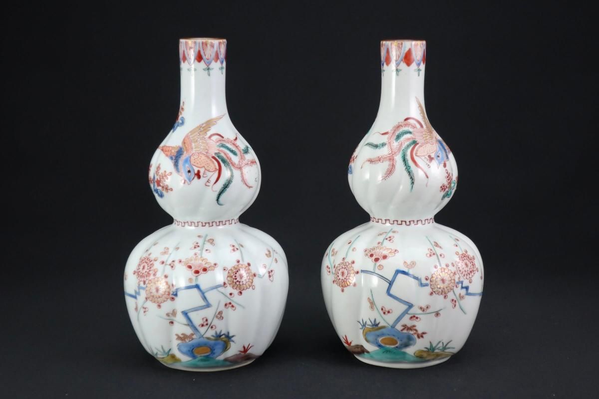 伊万里柿右衛門手瓢形徳利 一対 / Imari Polychrome 'Kakiemon'-Styled Gourd-shaped Sake Bottles 1 pair