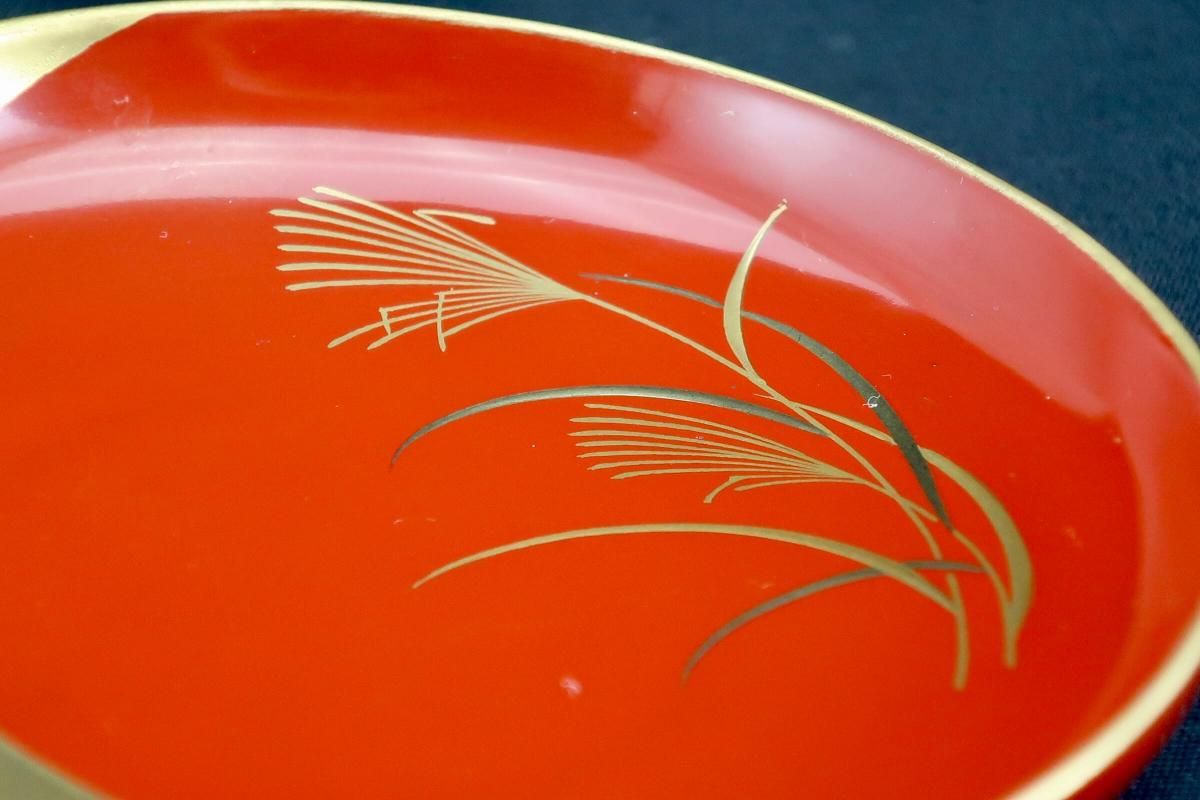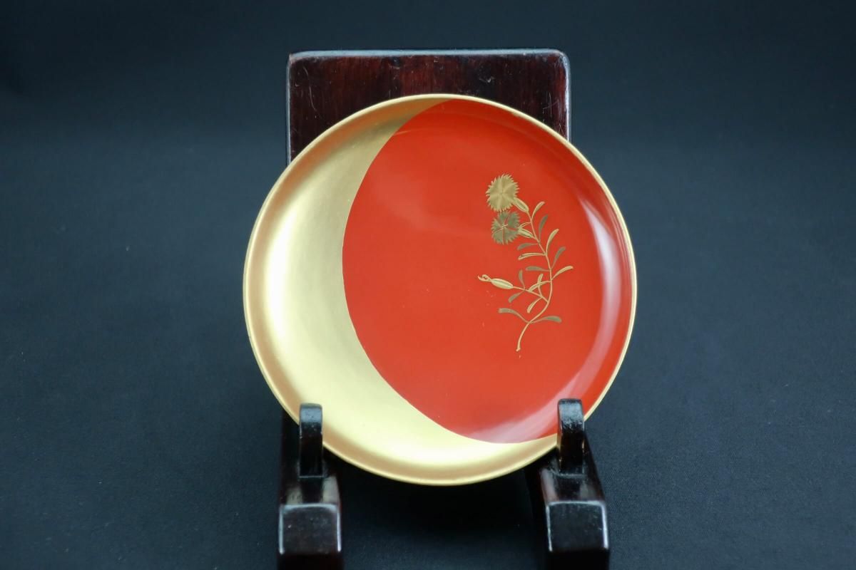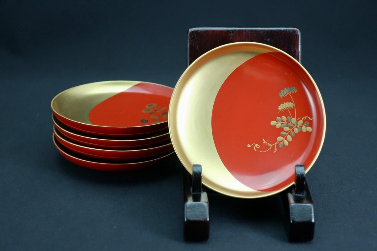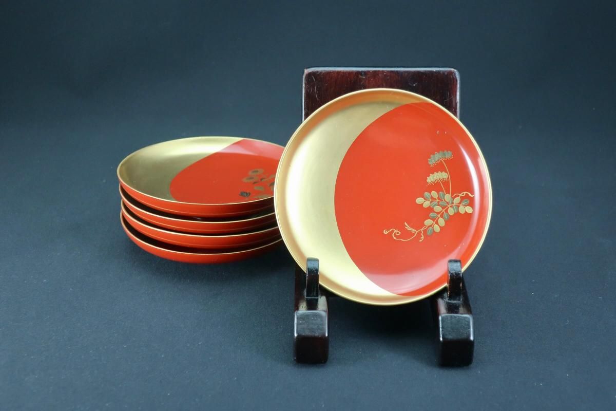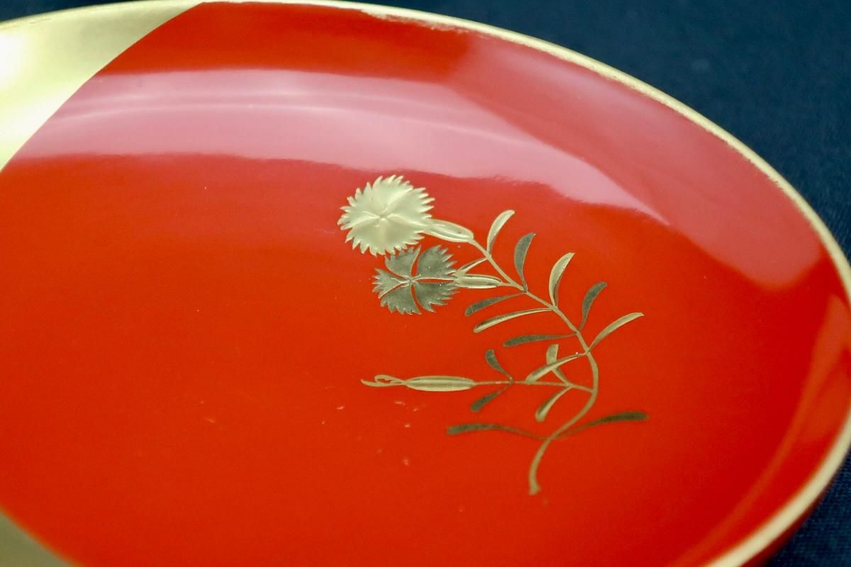 ¼ëÅÉ¿ÞÊÑÁð²Ö¼¬³¨°úÇÖ­¢¡¡¸ÞµÒÁÈ / Red-lacquered Sake Cups with 'Makie' picture of Flowers set of 5