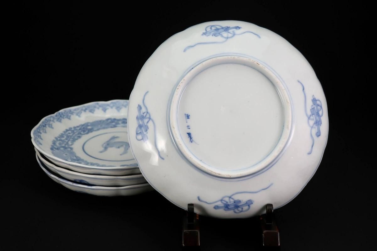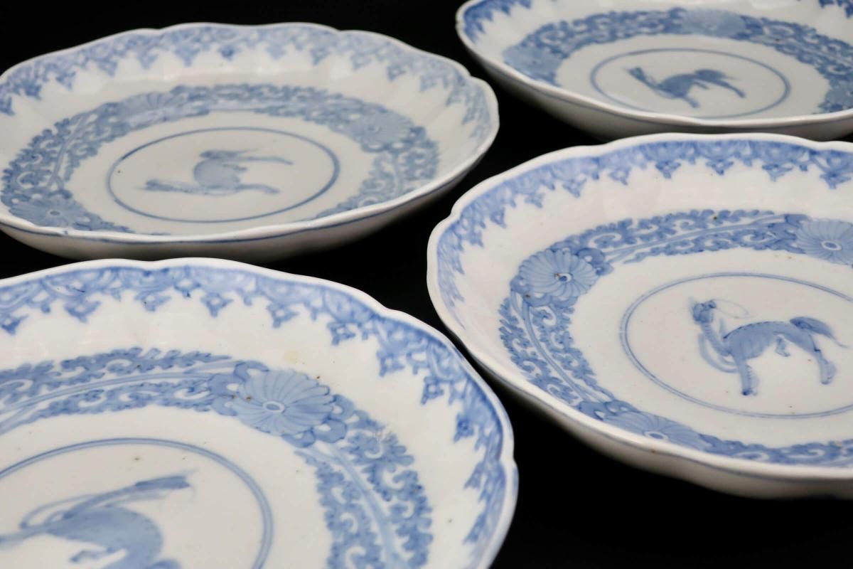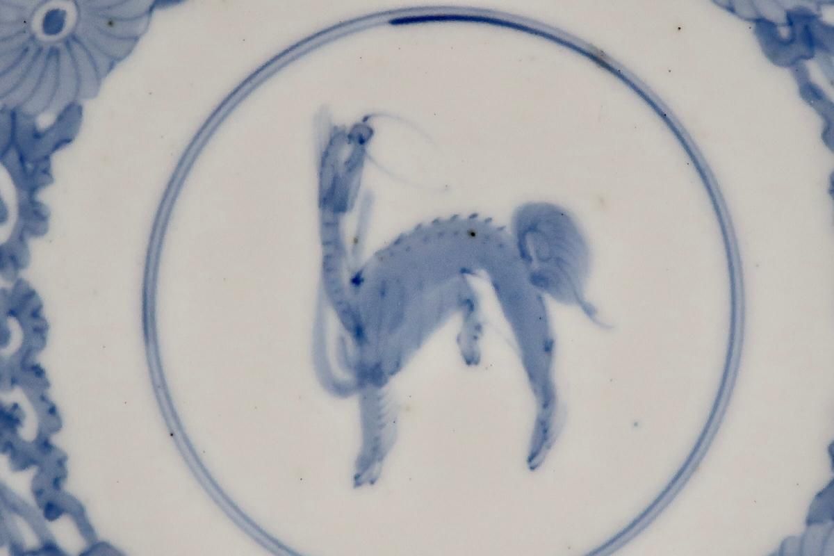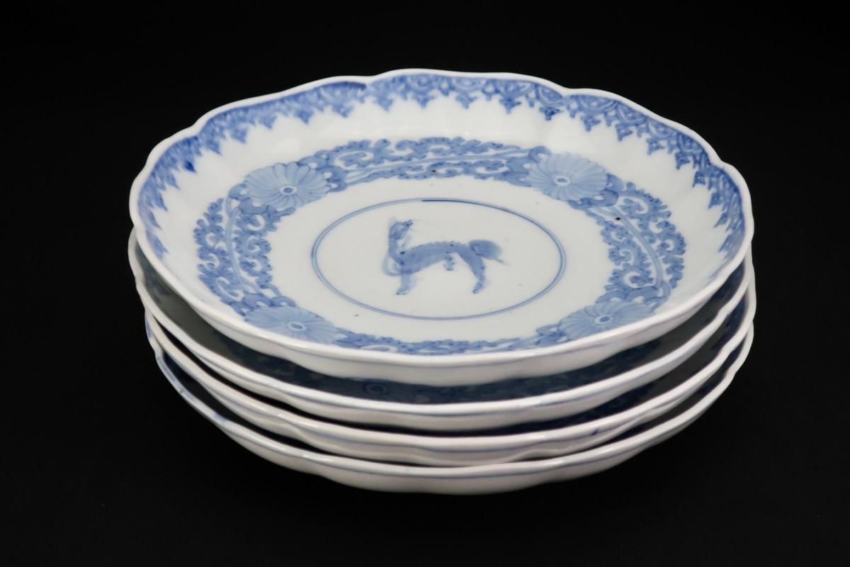 有田源六焼染付菊唐草麒麟文七寸皿 / Arita Blue & White Plates with the picture of 'Kirin' set of 5