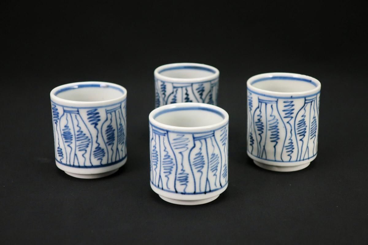 伊万里染付よろけ文覗猪口 四客組 / Imari Small Blue & White Cups set of 4