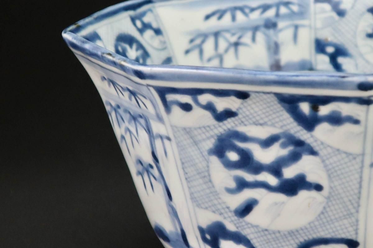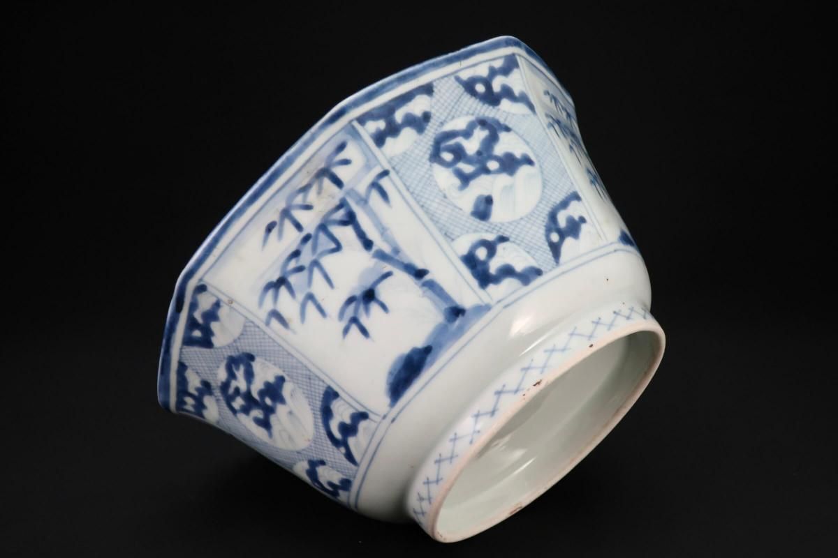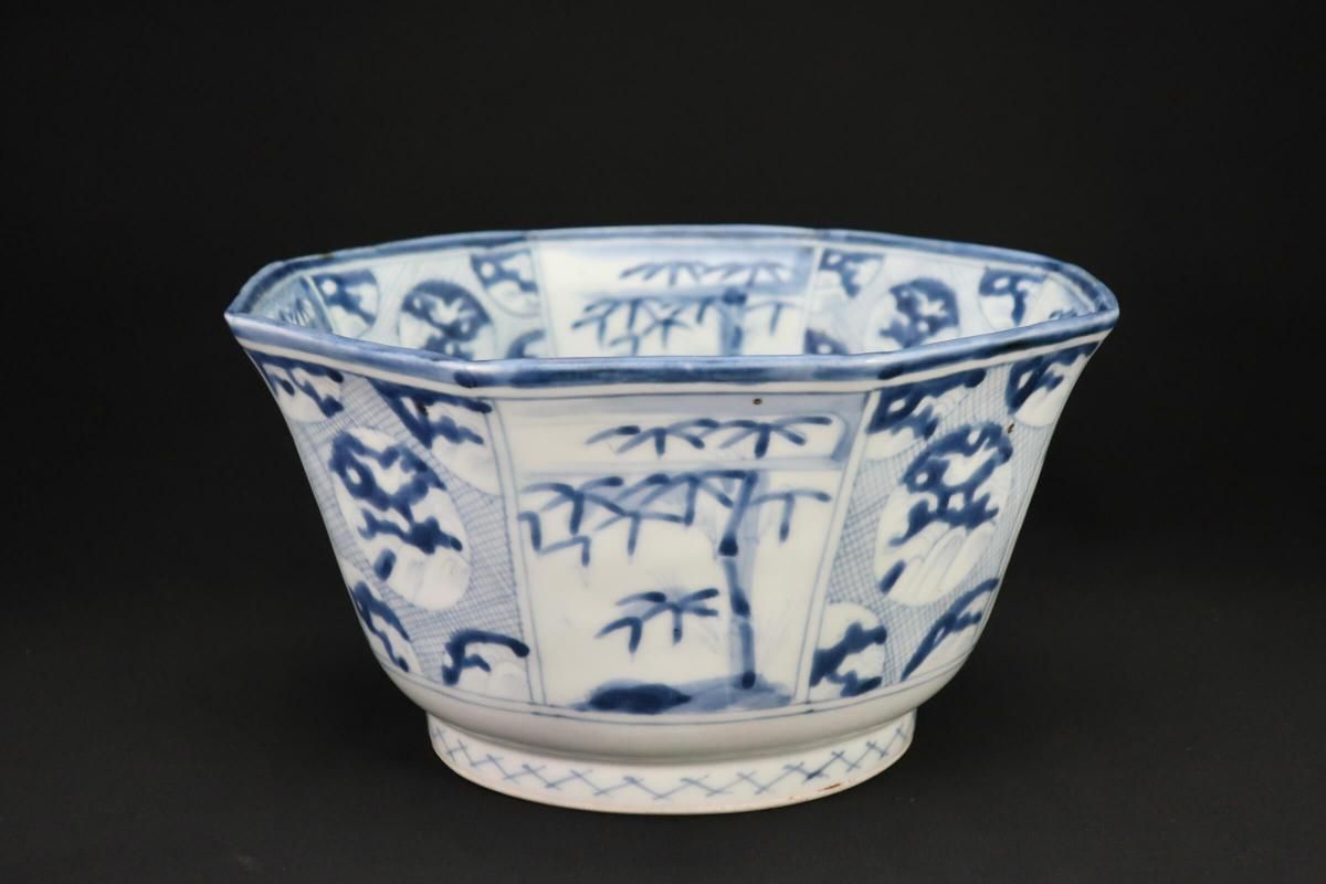 伊万里染付丸竹林文八角大鉢 / Imari Large Blue & White Octagonal Bowl with the picture of Bamboo
