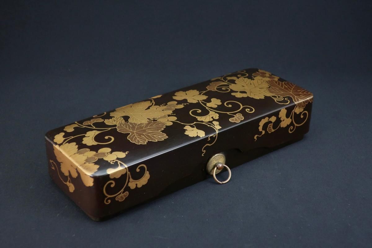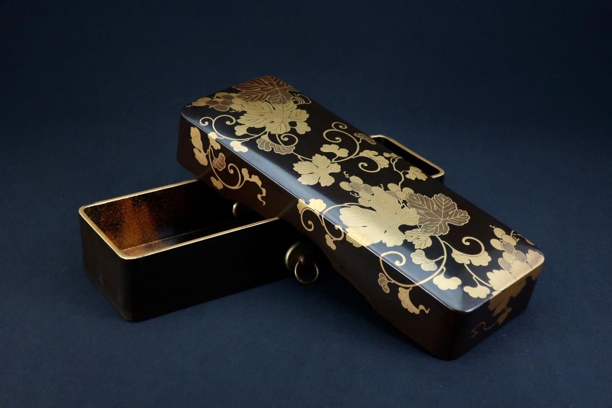 江戸葡萄蒔絵小箱 / Black-lacquered Box with 'Edo Makie' picture of Grapes