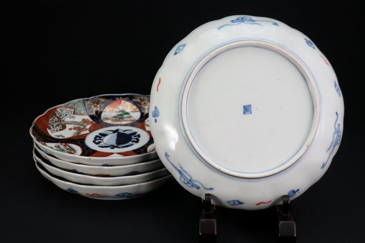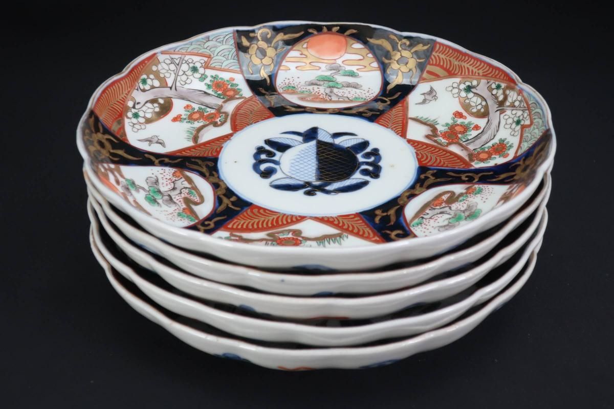 伊万里色絵桃花鳥文七寸皿 五枚組 / Imari Polychrome Plates with the picture of Pine and Plum blossonms set of 5