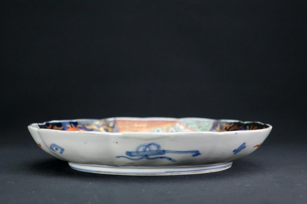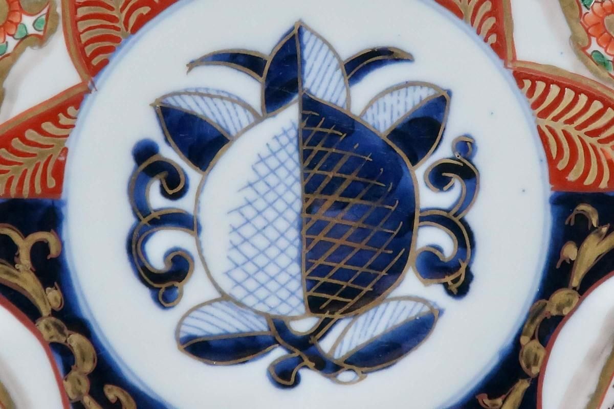 ☆明治伊万里のお馴染みの見込みの図、桃。華やかな色絵のお皿によく描かれています。こちらもとても豪華な絵付けの七寸皿。色とりどりの器でテーブルを食卓を元気にしましょう!