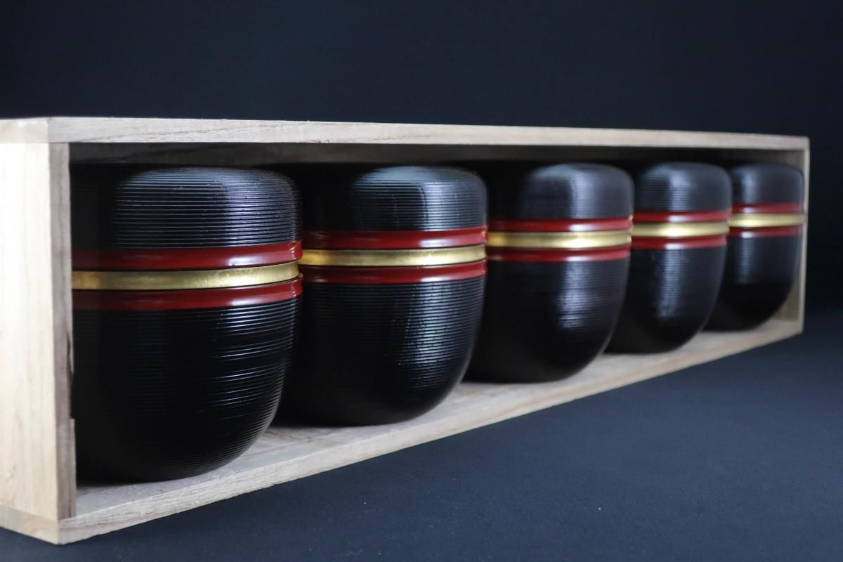糸巻信玄弁当 五個組 / Round 'Shingen Bento' Lunch Boxes set of 5