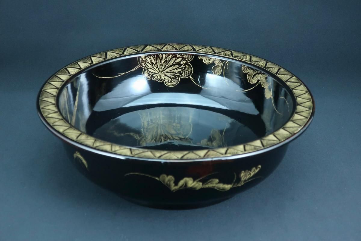 黒塗沈金四君子蒔絵大鉢 / Large Black-lacquered Bowl with'Chinkin Makie' picture