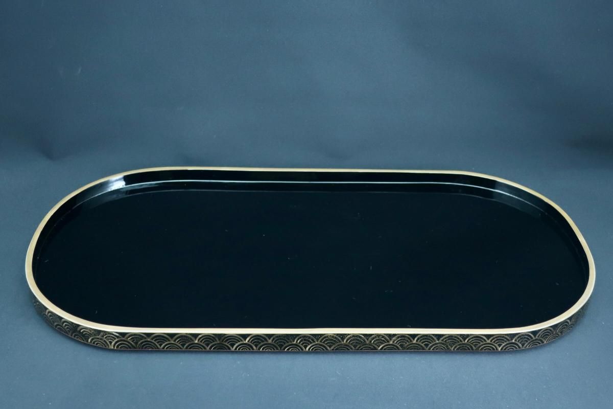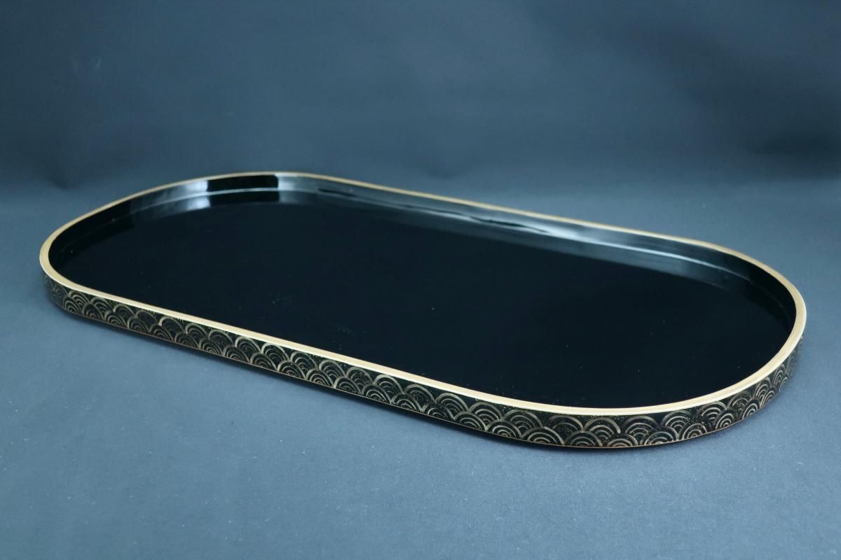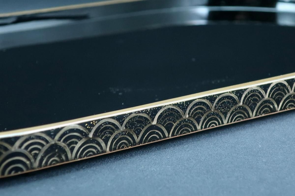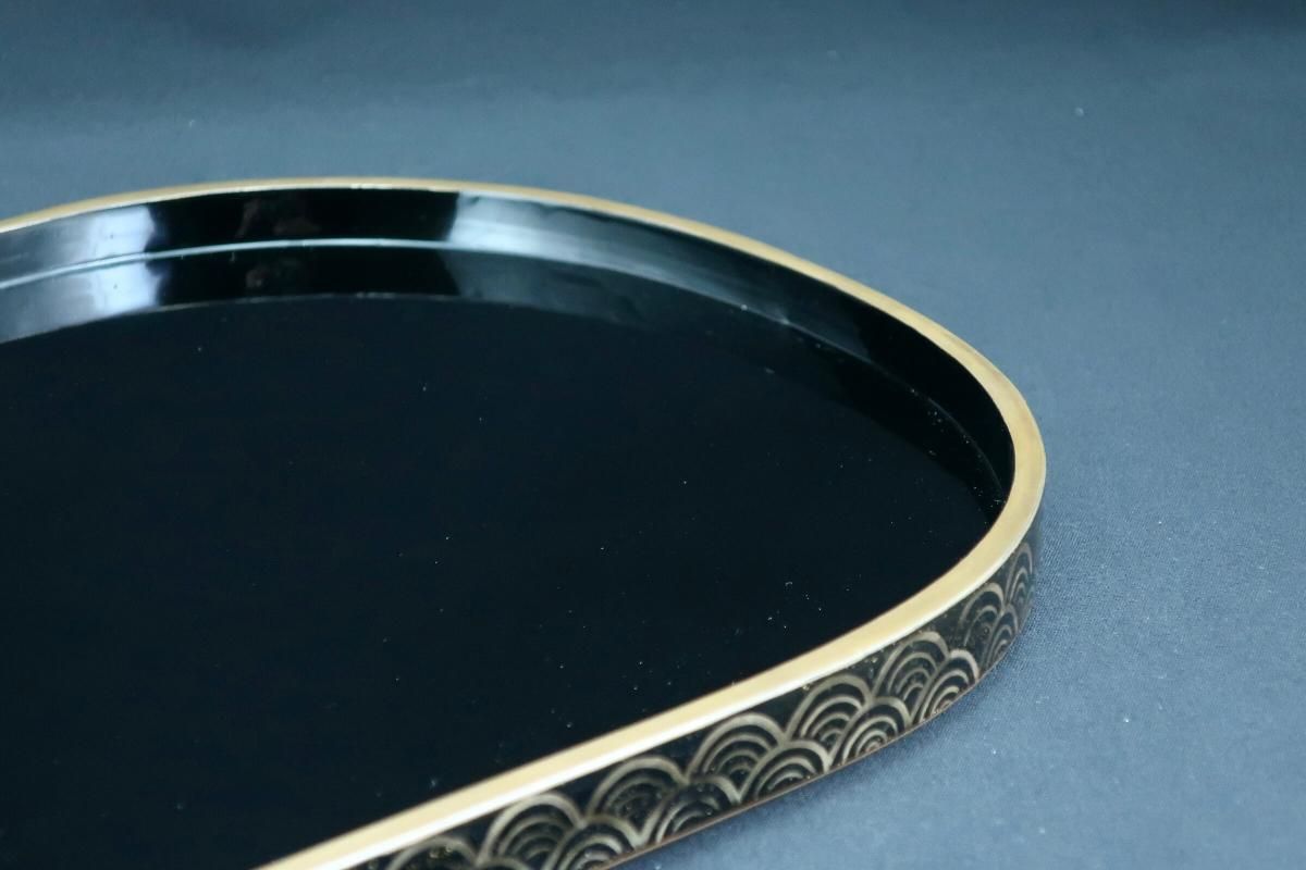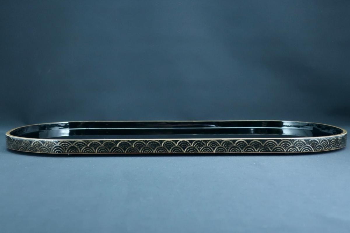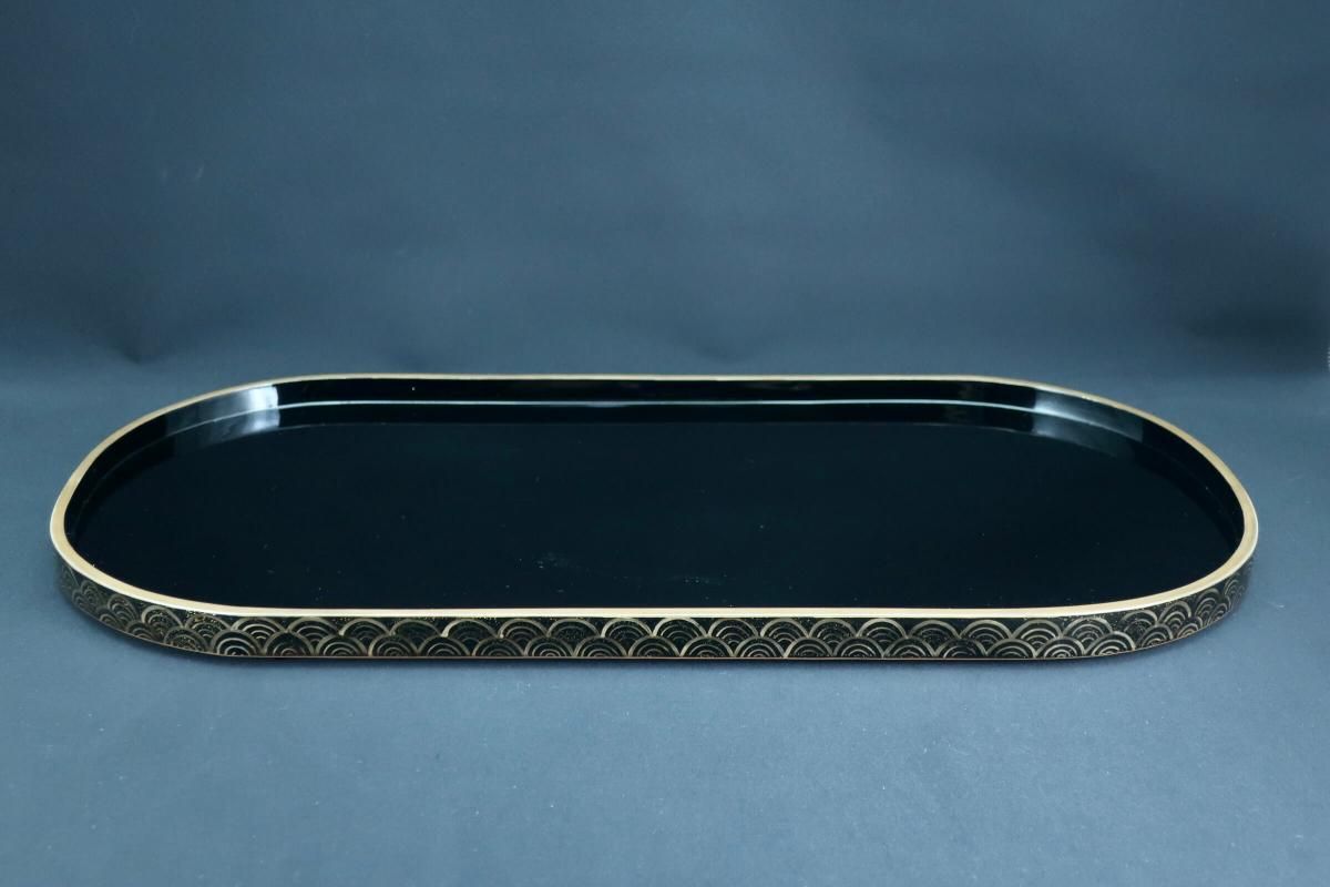 黒塗青海波加賀蒔絵楕円盆 / Black-lacquered Oval Tray