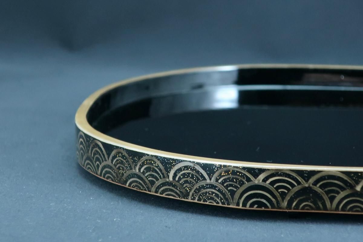 ☆加賀蒔絵の作家中山幸比古作の楕円盆。青海波の蒔絵には金粉が散りばめられたお洒落なデザインです。