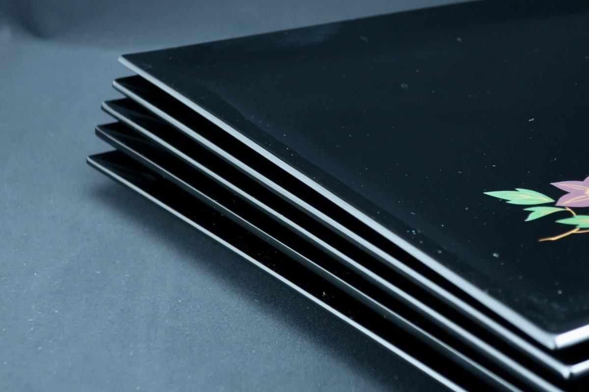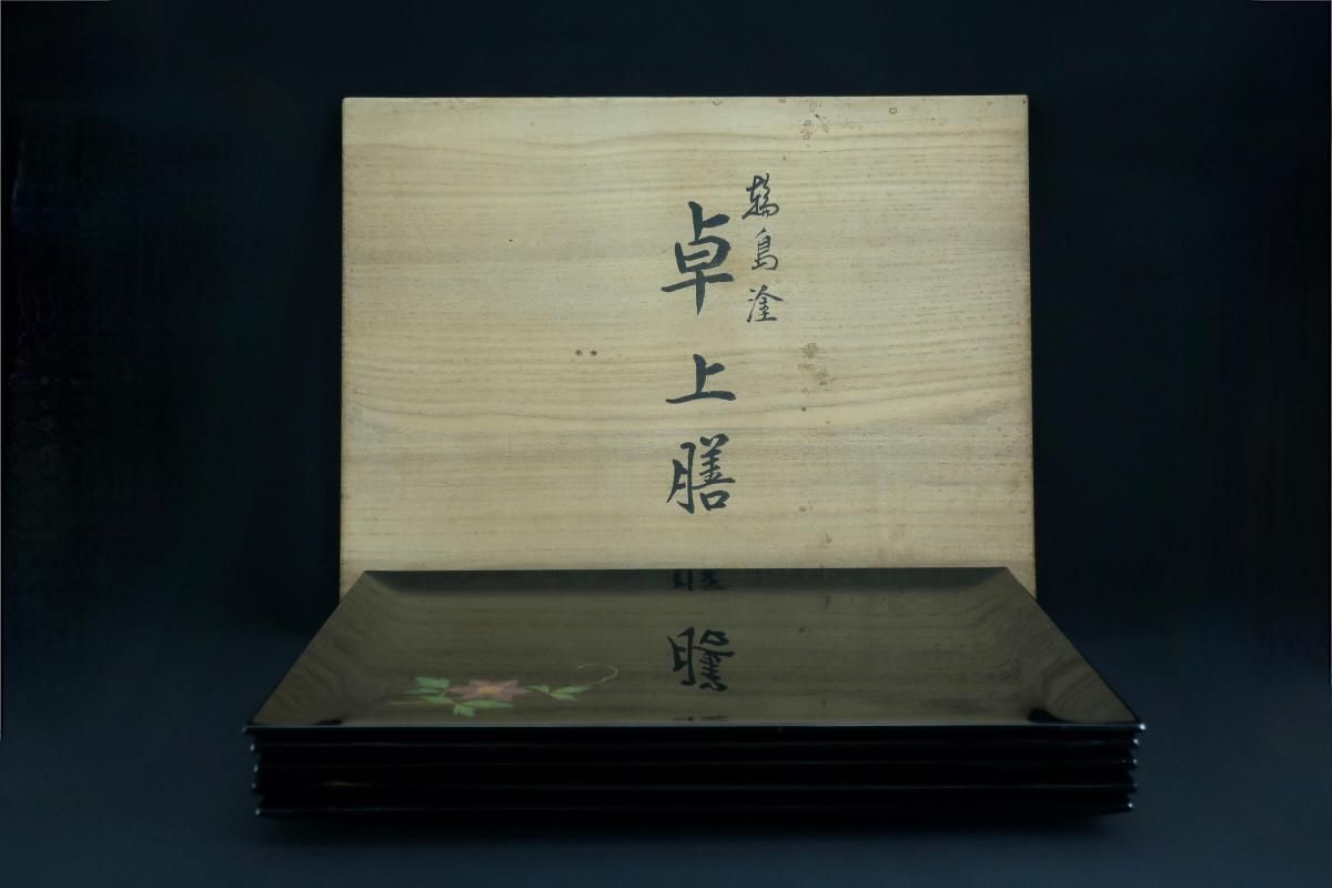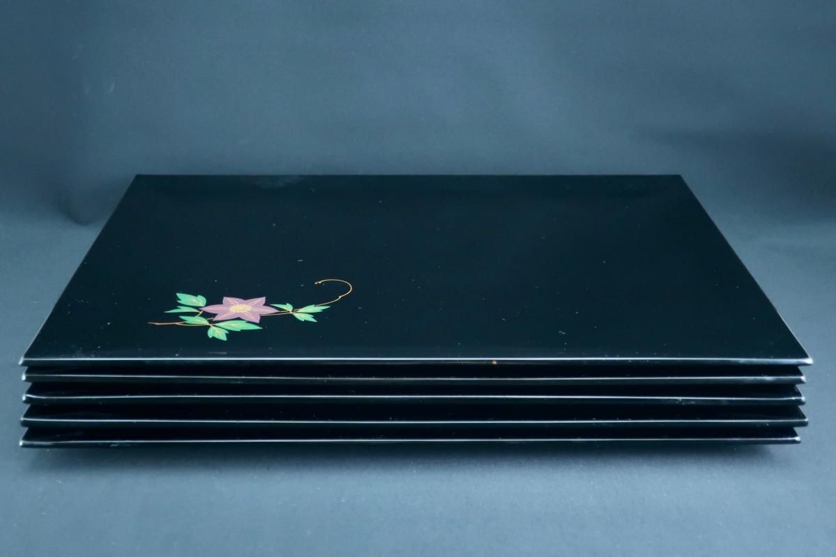 輪島塗図変蒔絵卓上膳 五枚組 / Wajima-lacquered Trays with 'Makei' picture of Flowers set of 5