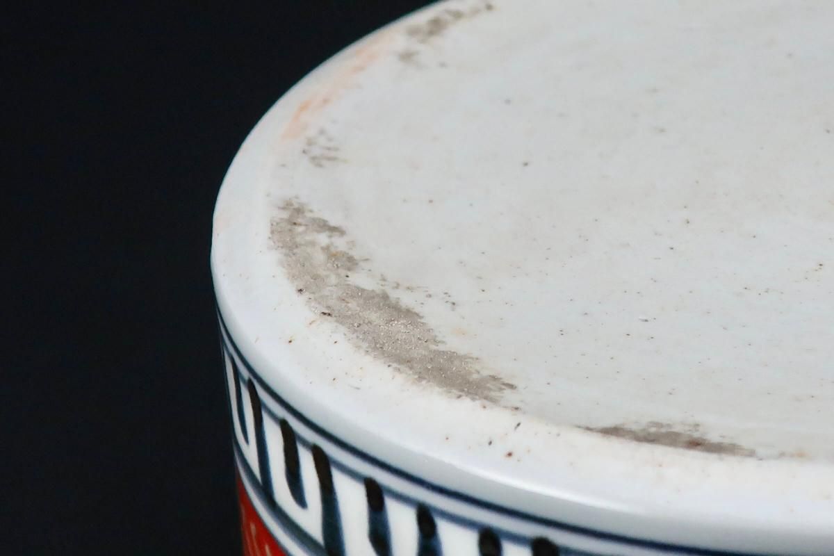 ☆一番下の段の縁に窯傷が見られます。当時の窯の状況から、焼成時に出来た鉄分が付着して出来た茶色の部分や、ピンホール、釉薬の剥がれ等ございます。ご了承の上、ご購入くださいませ。