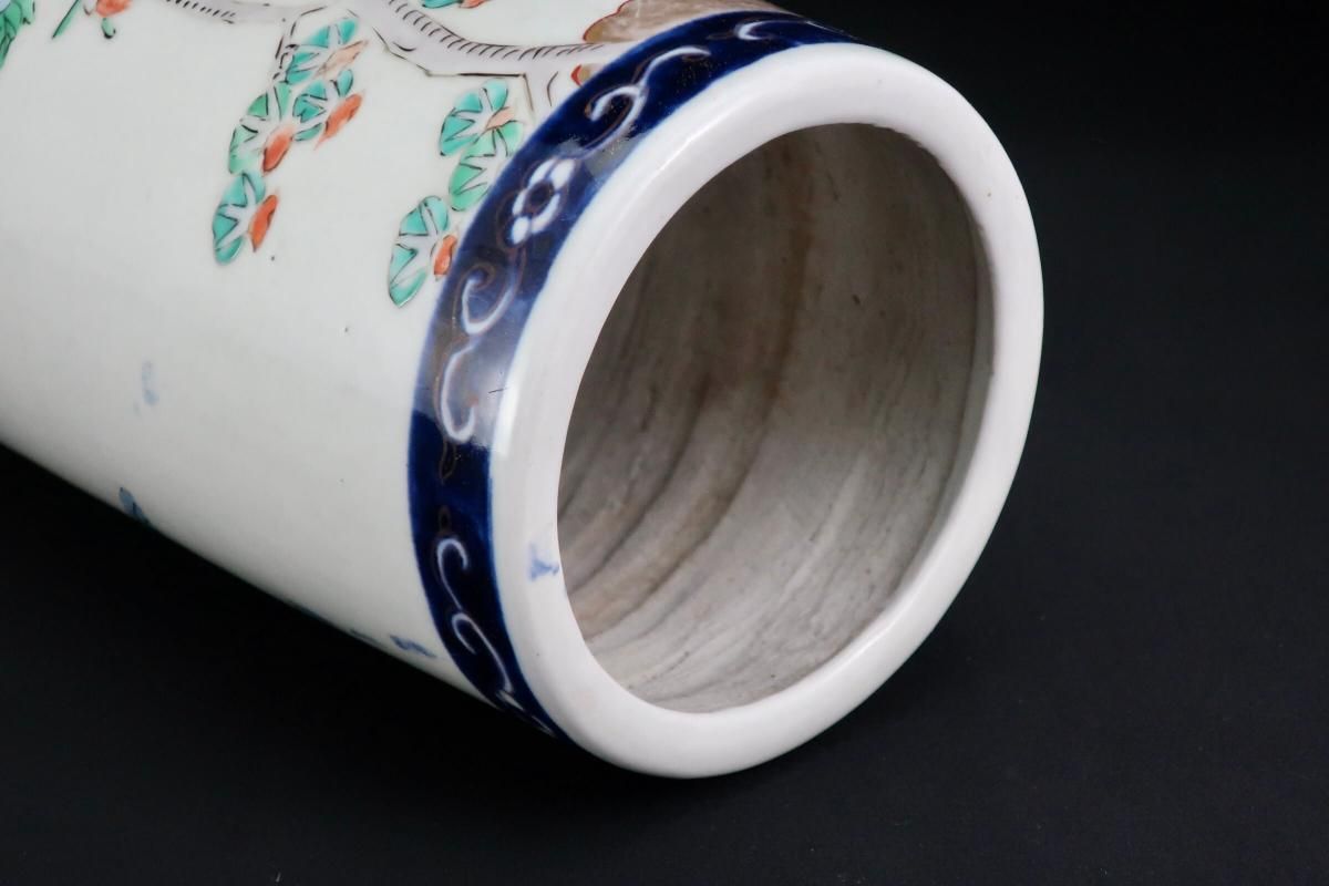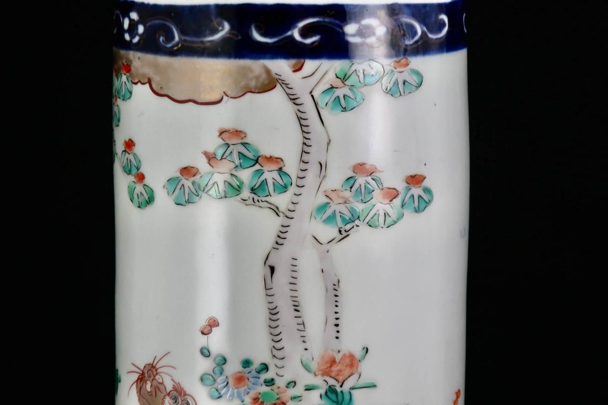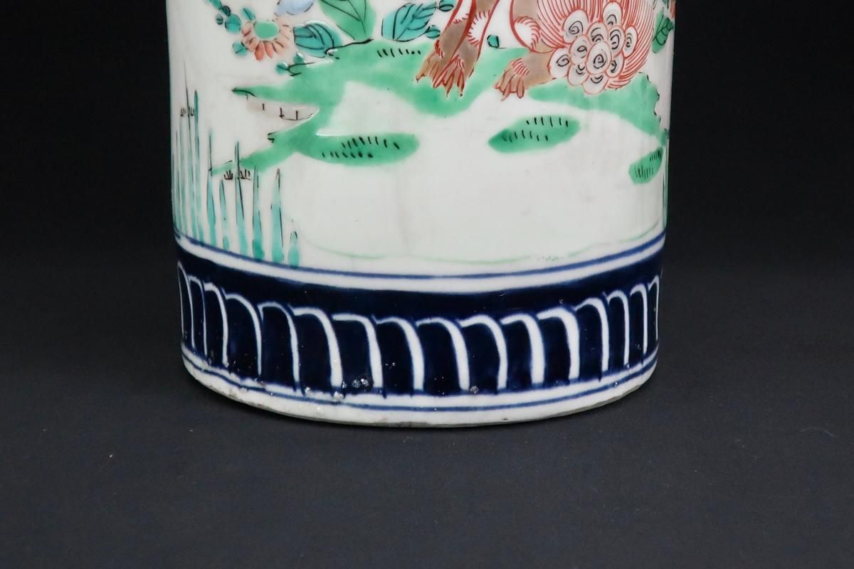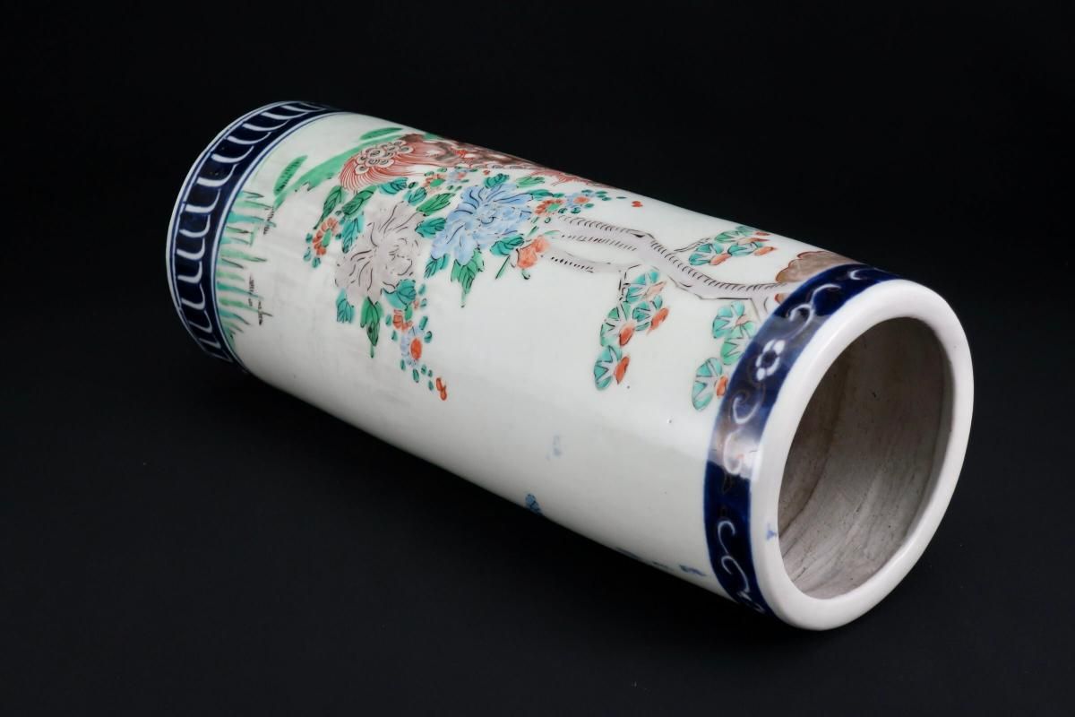 伊万里色絵獅子牡丹文筒形花入 / Imari Polychrome Vase with the picture of Lion and Peony