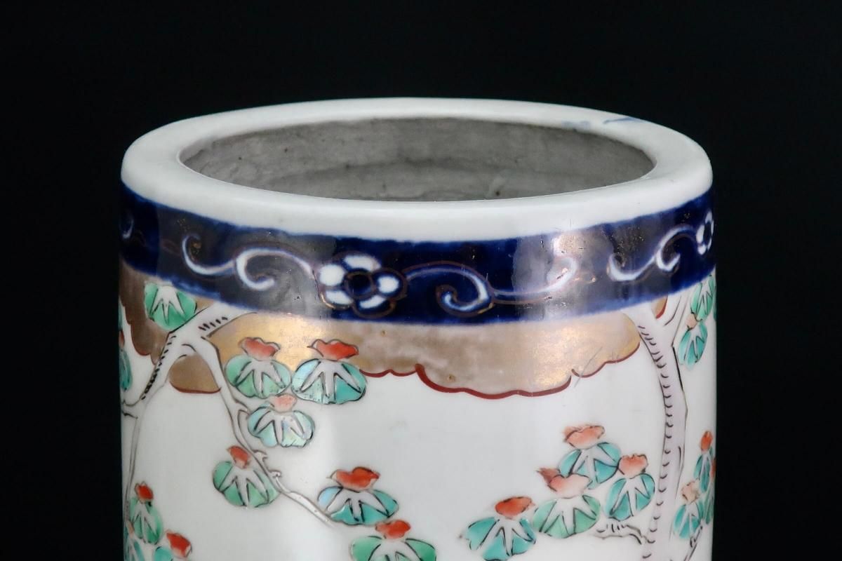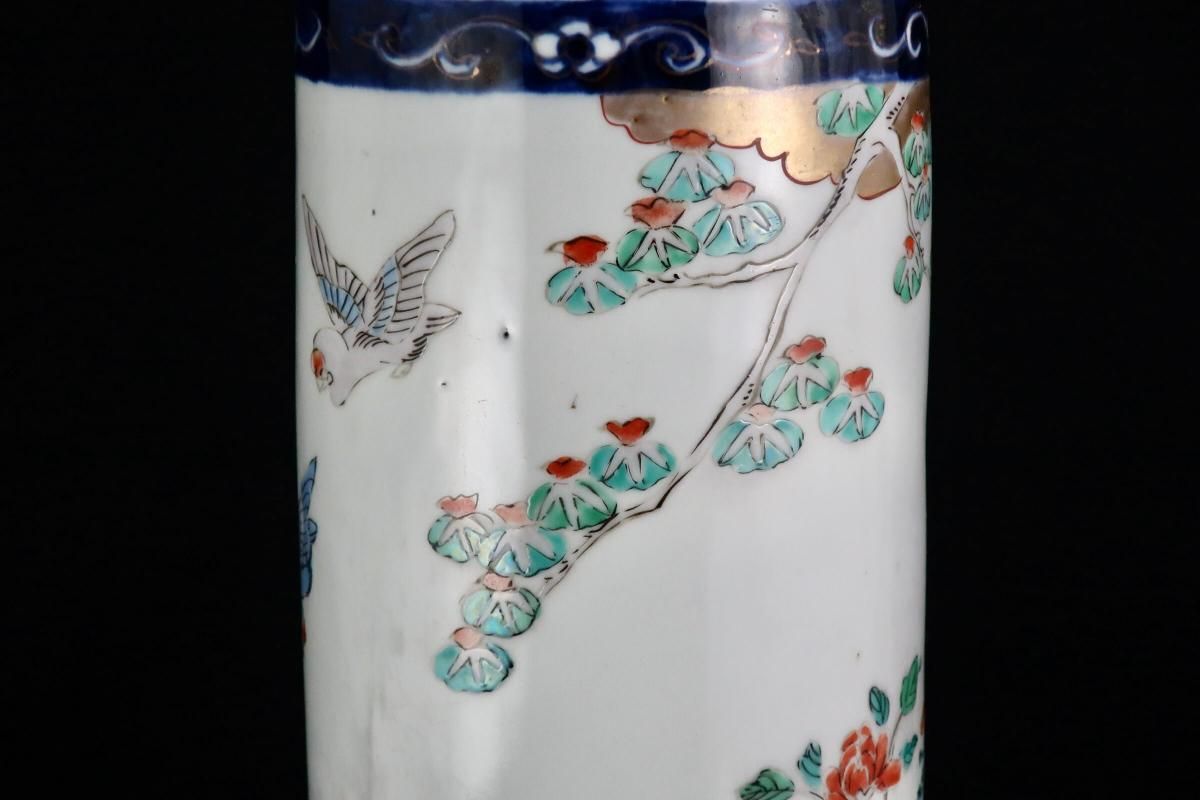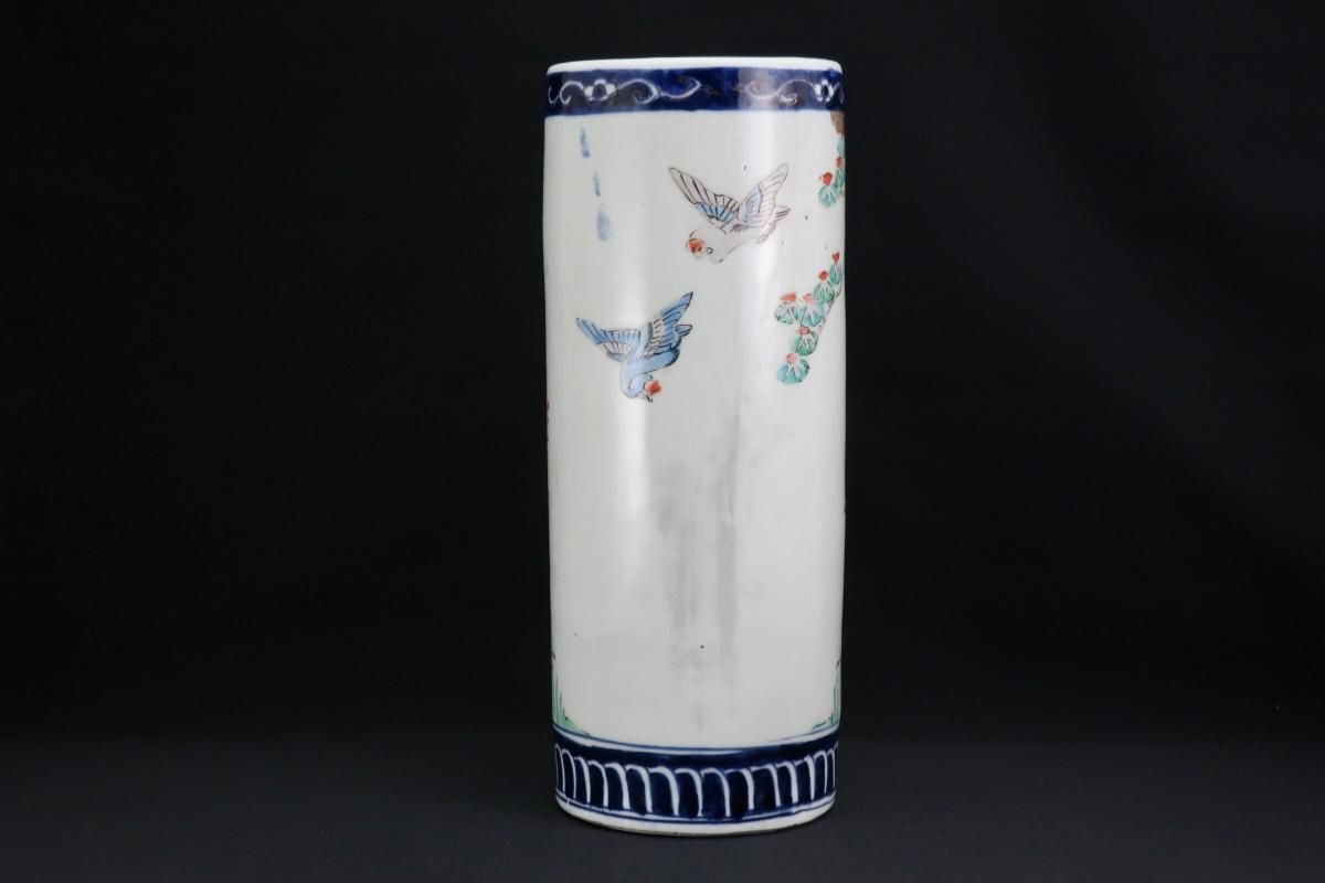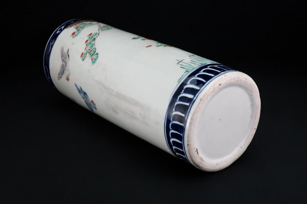 伊万里色絵獅子牡丹文筒形花入 / Imari Polychrome Vase with the picture of Lion and Peony