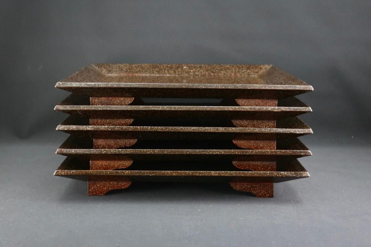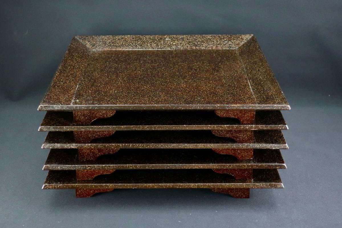 梨地小角膳 五枚組 / 'Nashiji' Lacquered Square Trays set of 5
