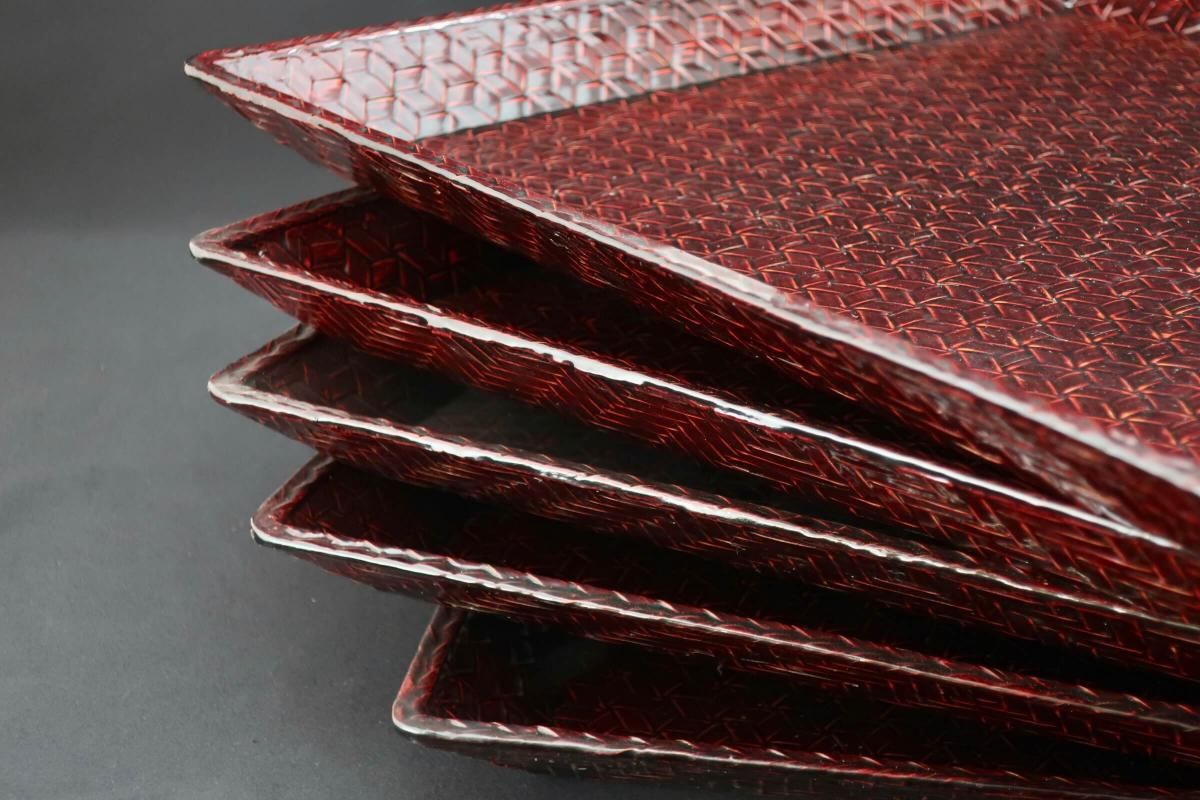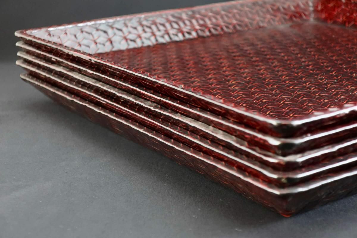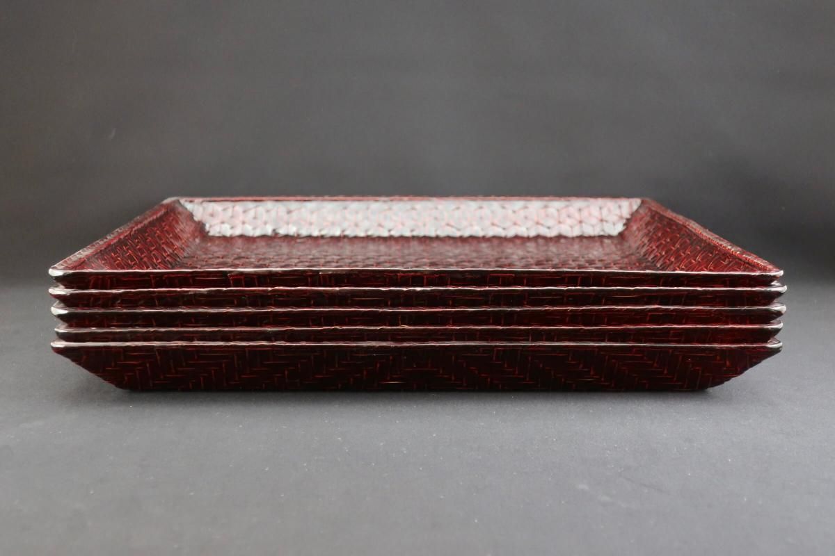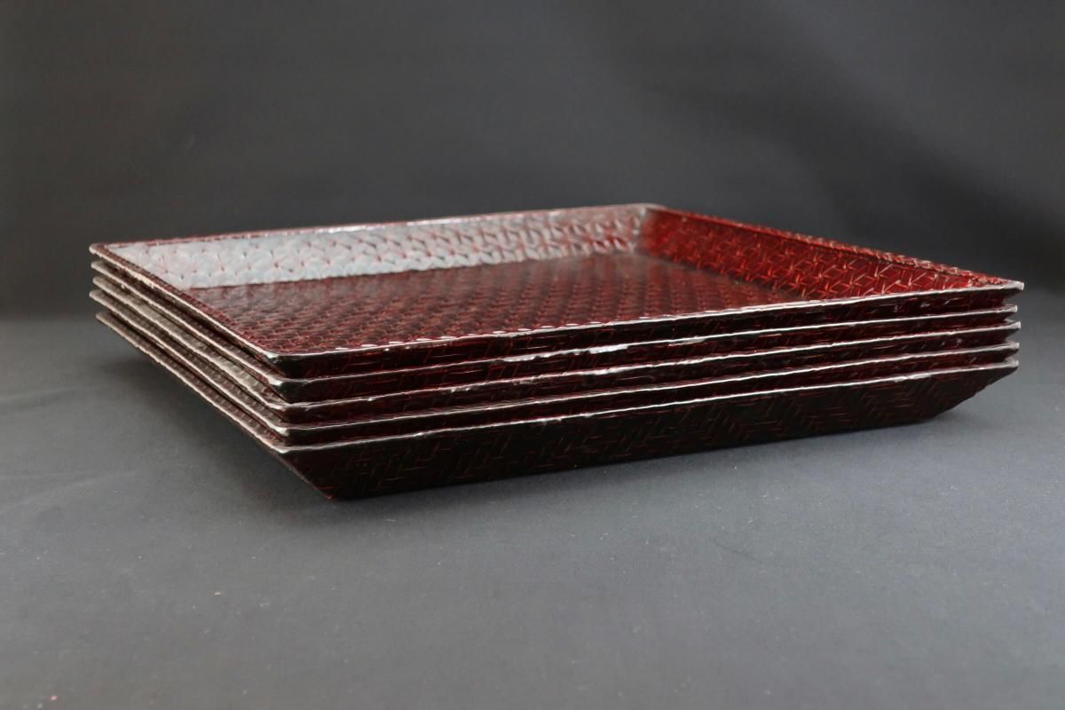 網代(籃胎)角膳 五枚組 / Wickerwork Trays set of 5