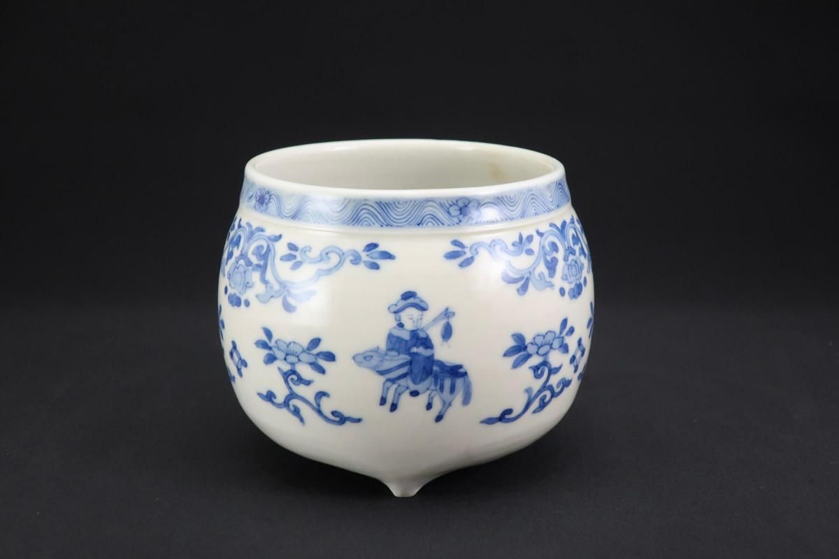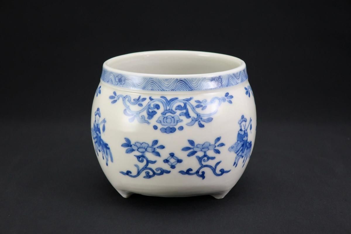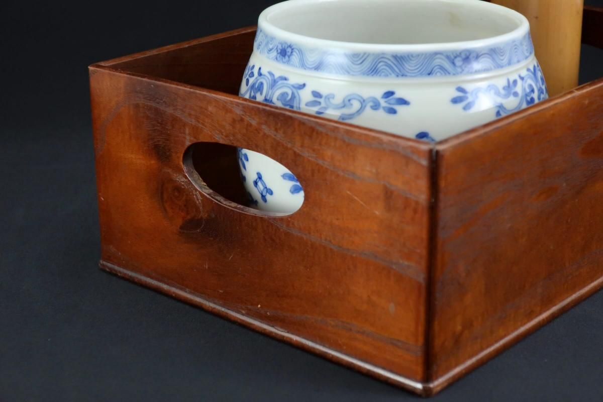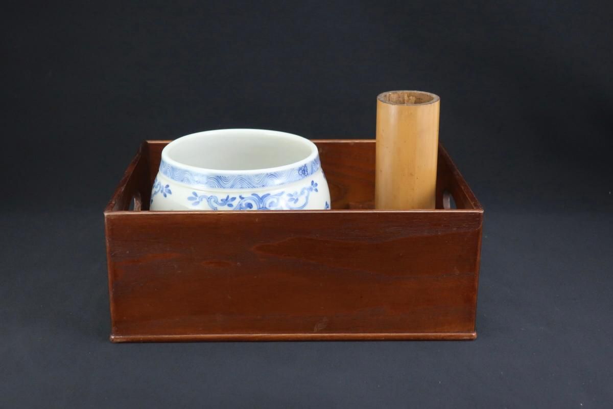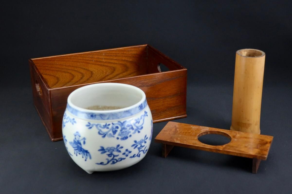 桑煙草盆&瀬戸染付騎馬韃靼人の図火入 / Seto Blue & White 'Hiire' Pot with the picture of Tatar and Mulberry Box