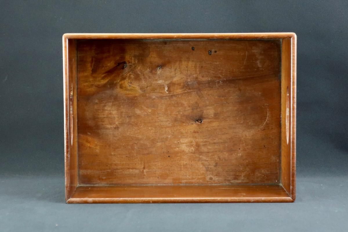 さらっとした表面の木目が美しい煙草盆に可愛らしい韃靼人の絵付の火入が仕込まれたセットのご紹介。