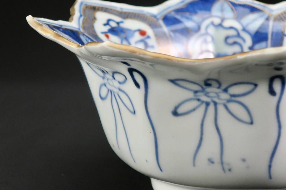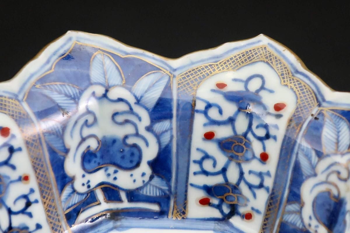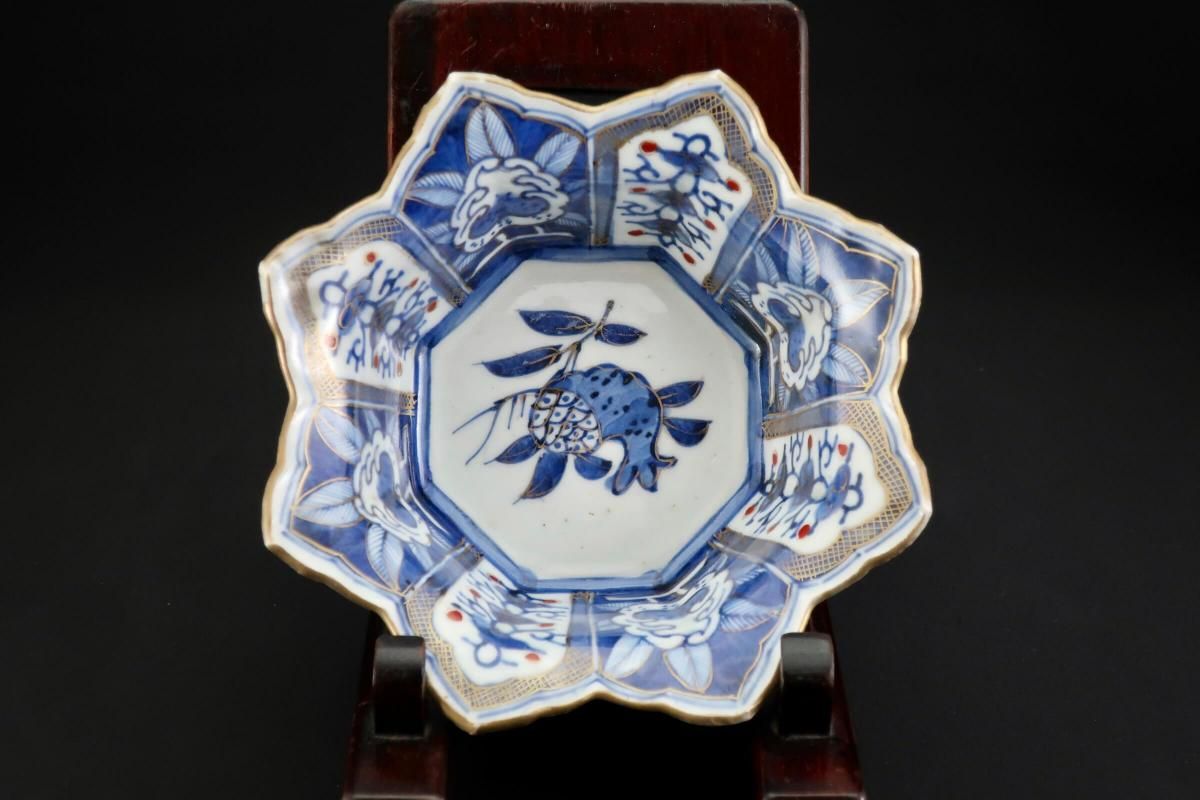 伊万里色絵星形柘榴文中鉢(大) / Imari Star-shaped Polychrome Bowl with the picture of Pomegranates(L)