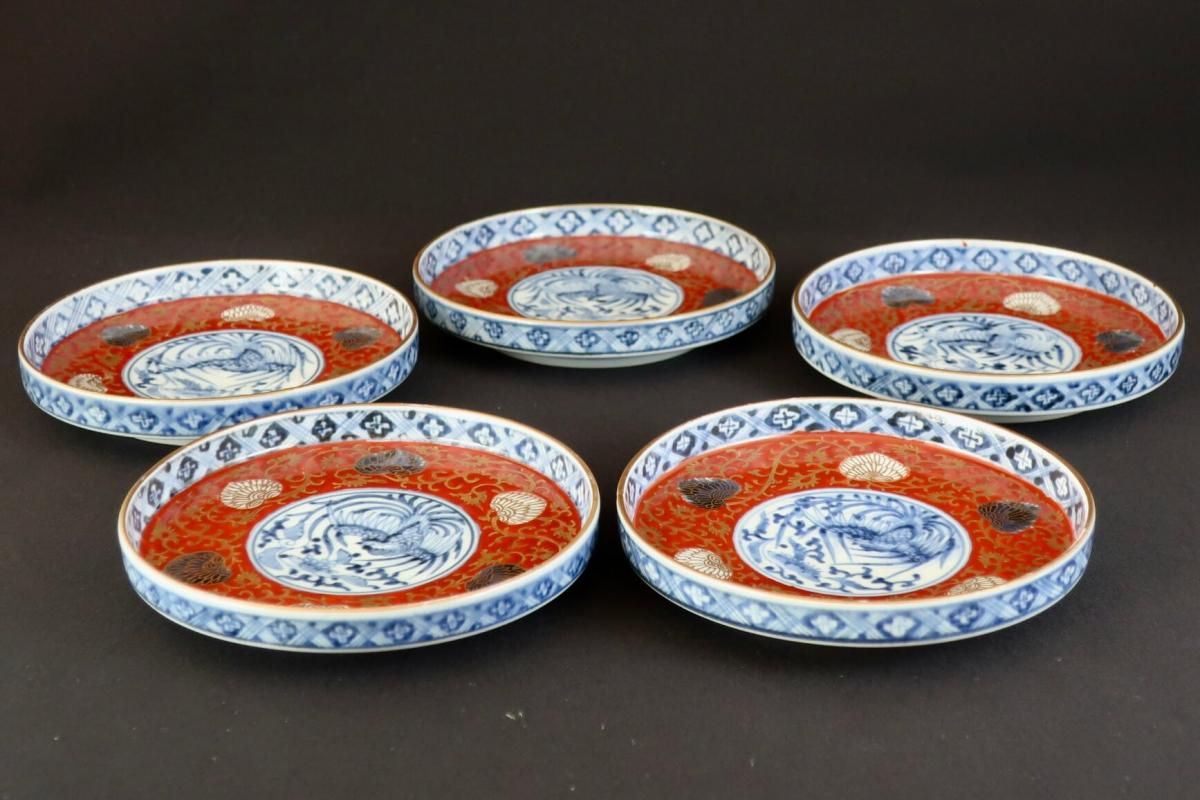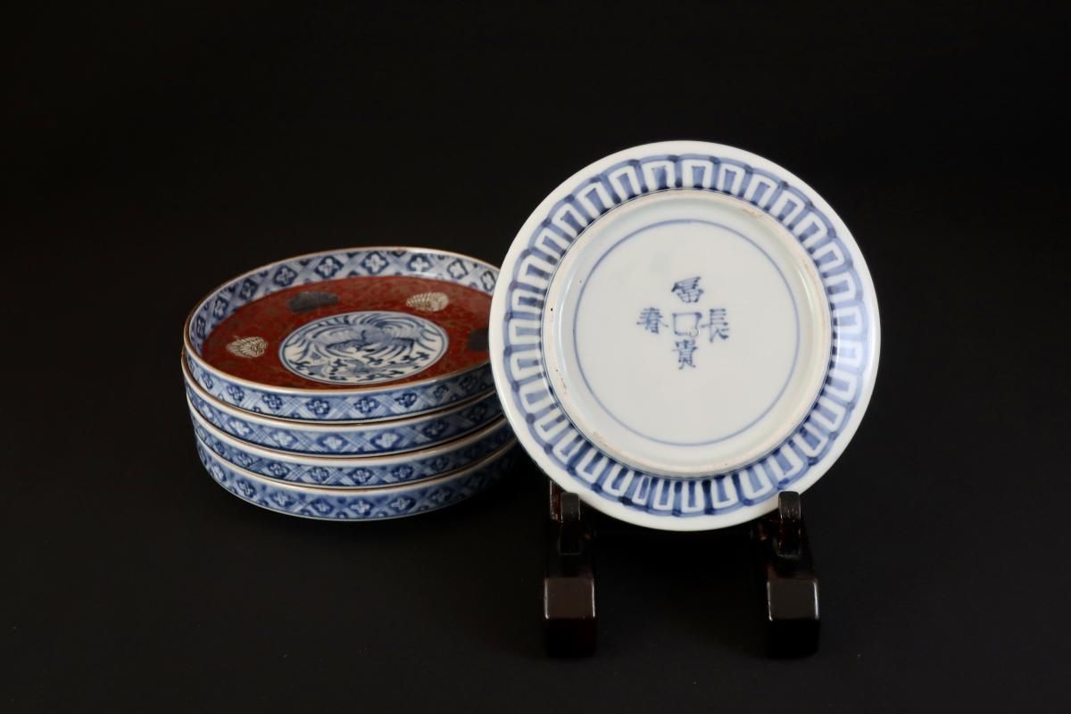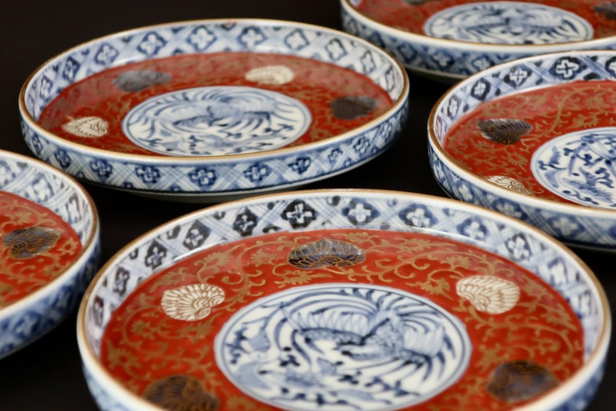 大聖寺伊万里金彩赤絵葵鳳凰文五寸皿 五枚組 / Daishoji Imari Polychrome Plates with the picture of 'Aoi' set of 5