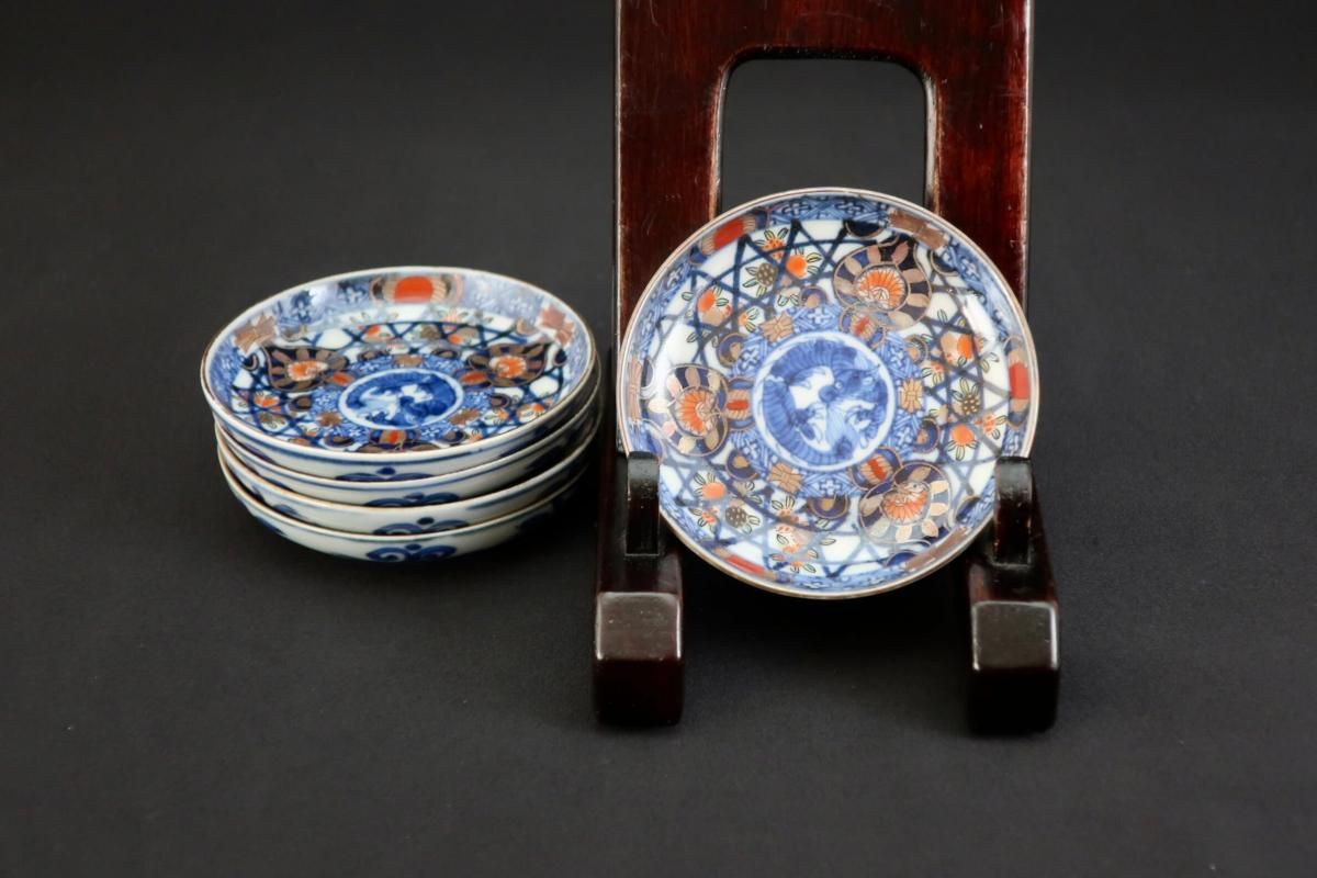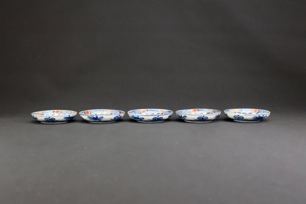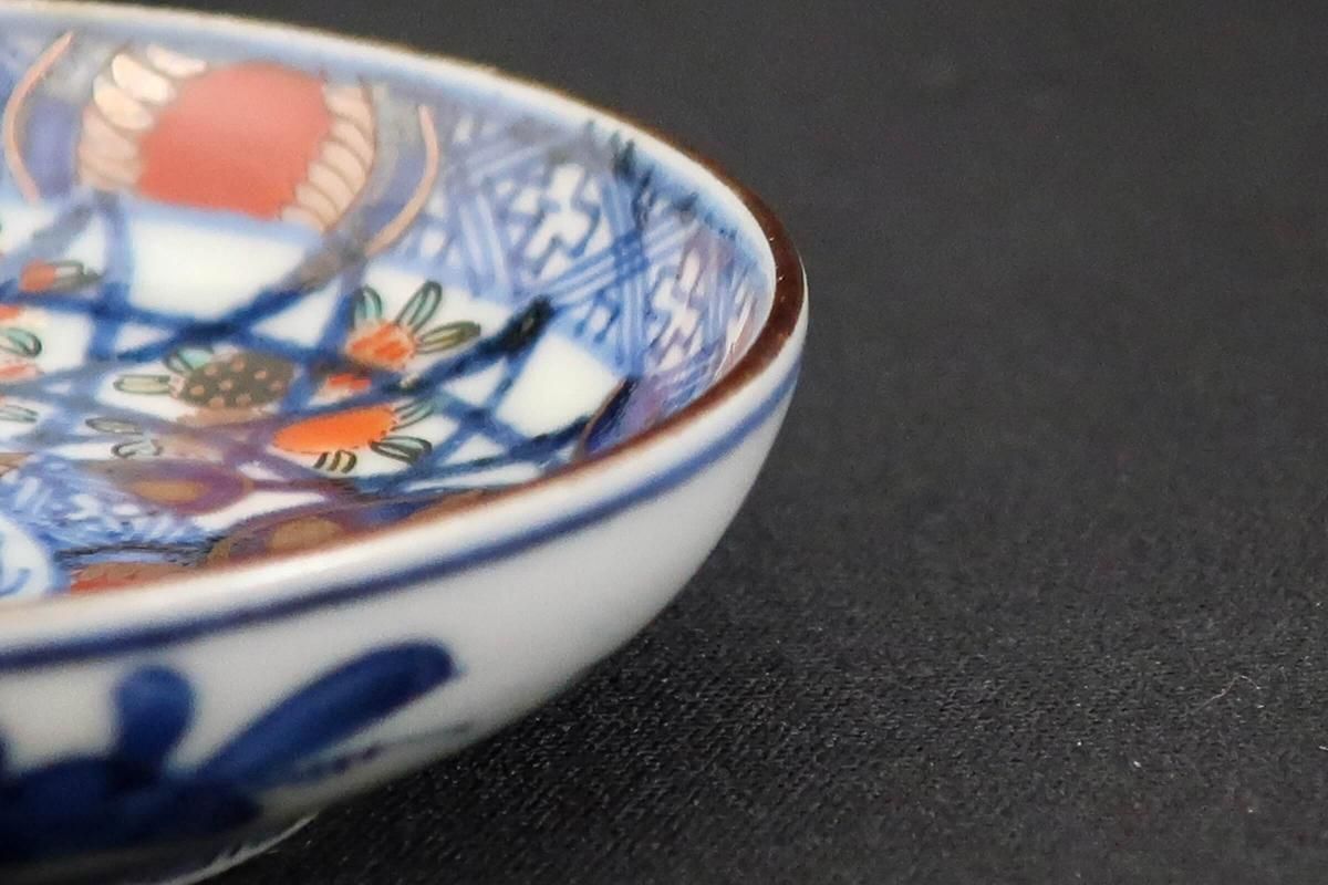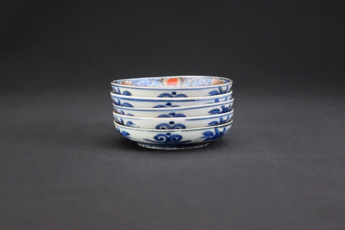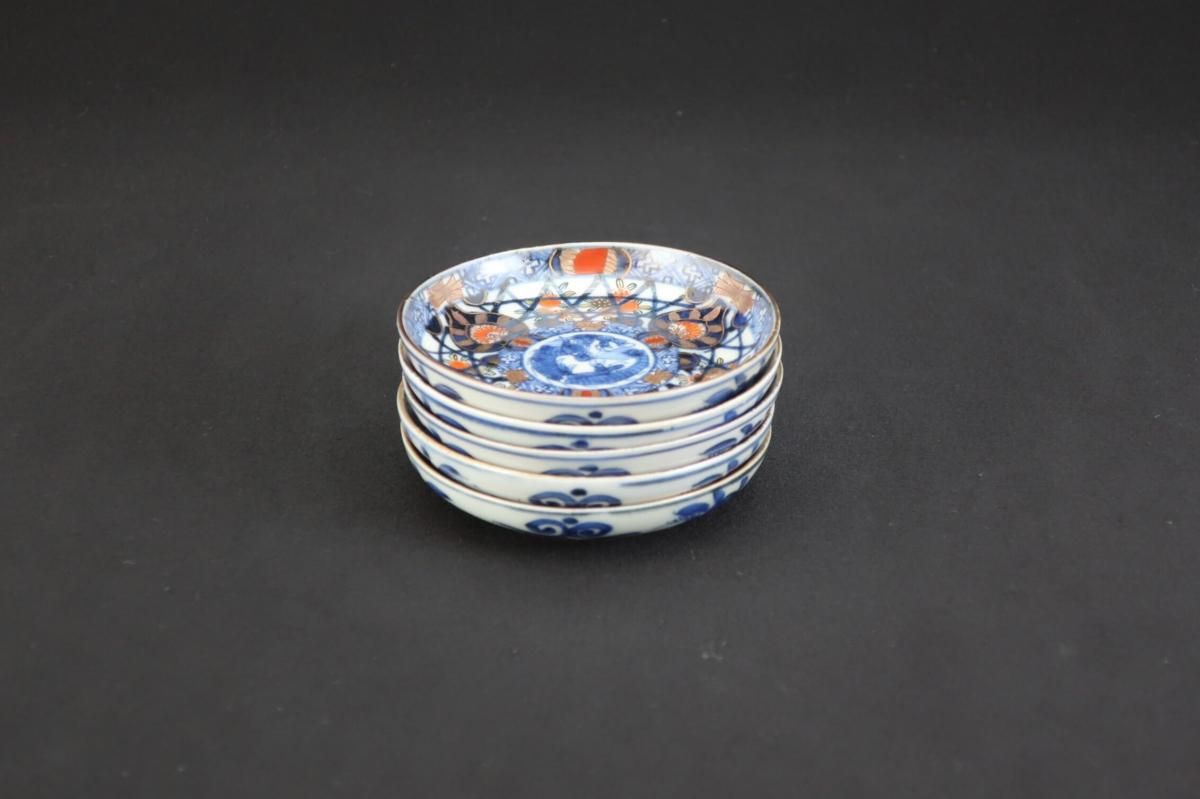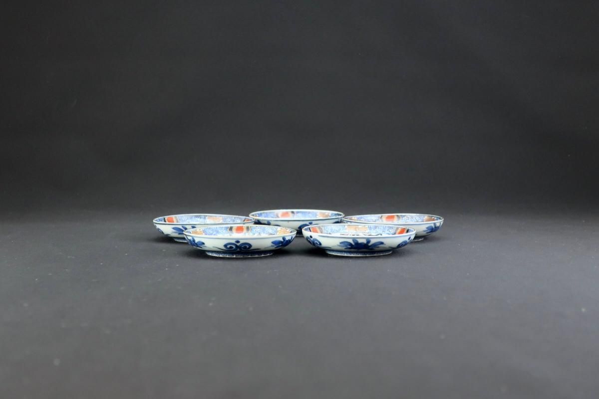 伊万里色絵籠目草花文豆皿 五枚組 / Imari Small Polychrome Plates with Woven-bamboo pattern