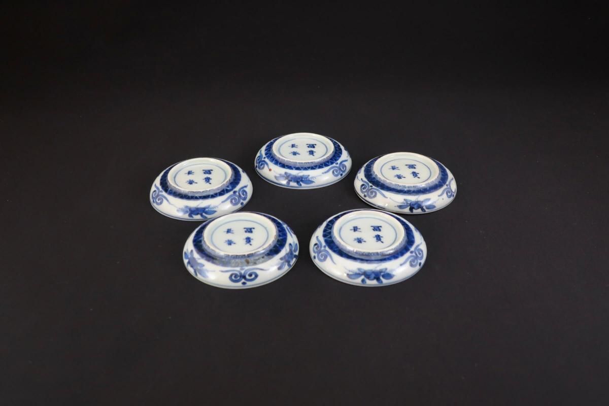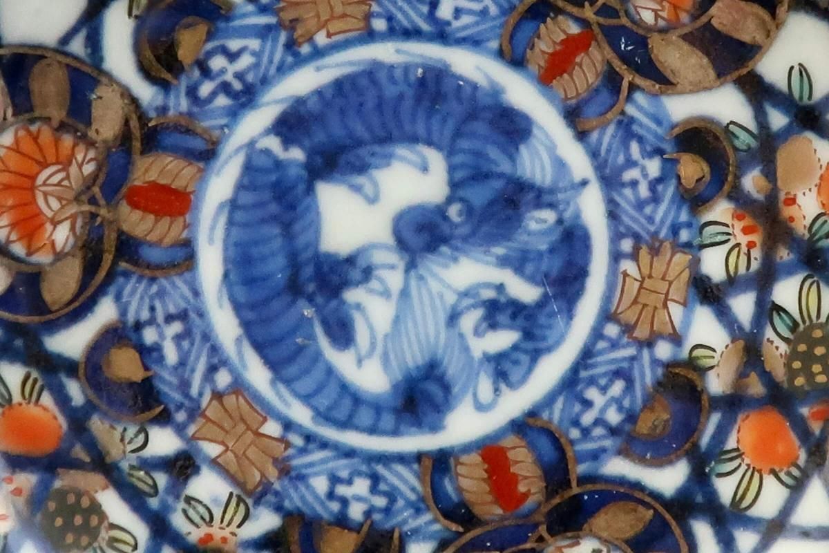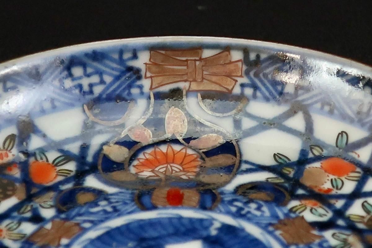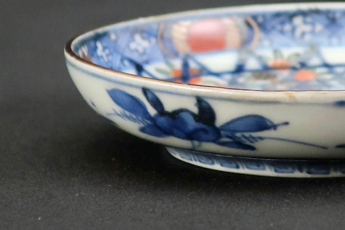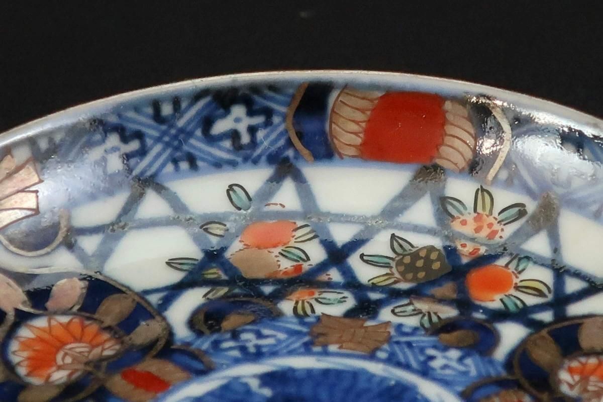 伊万里色絵籠目草花文豆皿 五枚組 / Imari Small Polychrome Plates with Woven-bamboo pattern