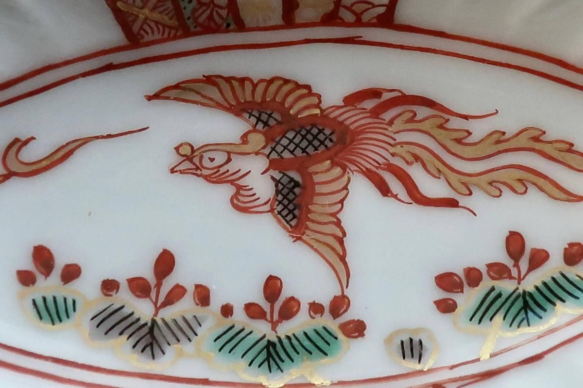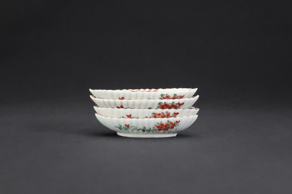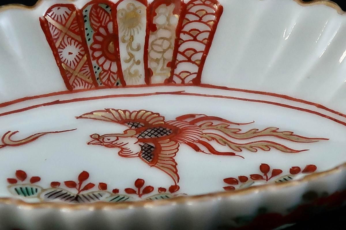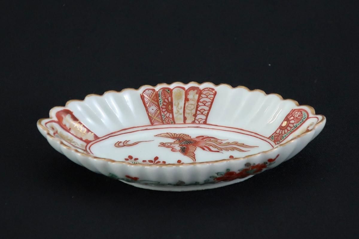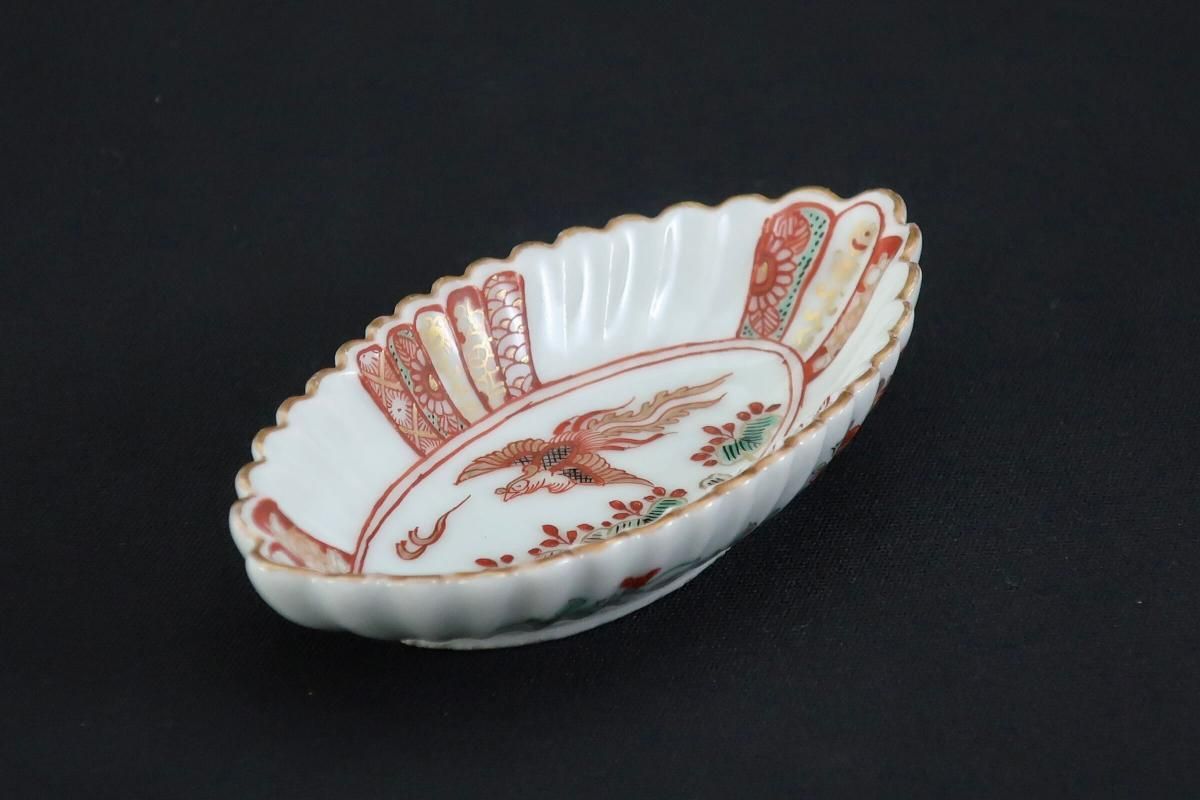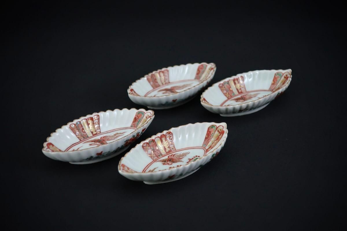 伊万里鳳凰文菊花舟形豆皿 四枚組 / Imari Small Polychrome Plates with the picture Phoenix set of 4
