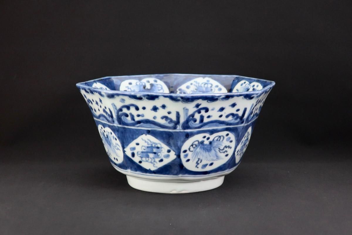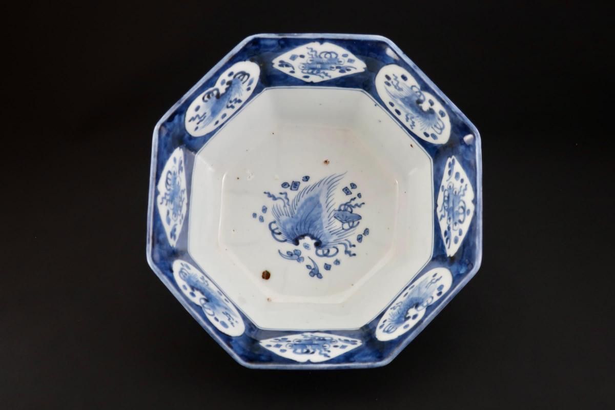 伊万里染付波千鳥吉祥丸文大鉢 / Imari Large Blue & White Bowl with the picture of Plover Birds on the Wave
