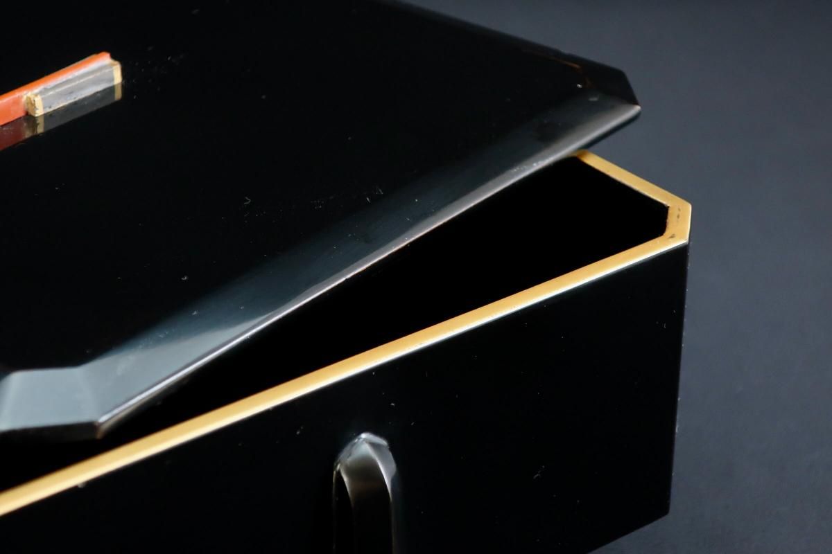 ☆脚付の器になぜか惹かれる大蔵オリエンタルアート。シンプルな黒塗の菓子器に可愛らしい扇子の摘みが良いポイントになっています。蓋を開ける楽しみもあるし、黒漆がどんなお菓子でも綺麗に見せてくれる事でしょう。素敵なティータイムをお楽しみください。