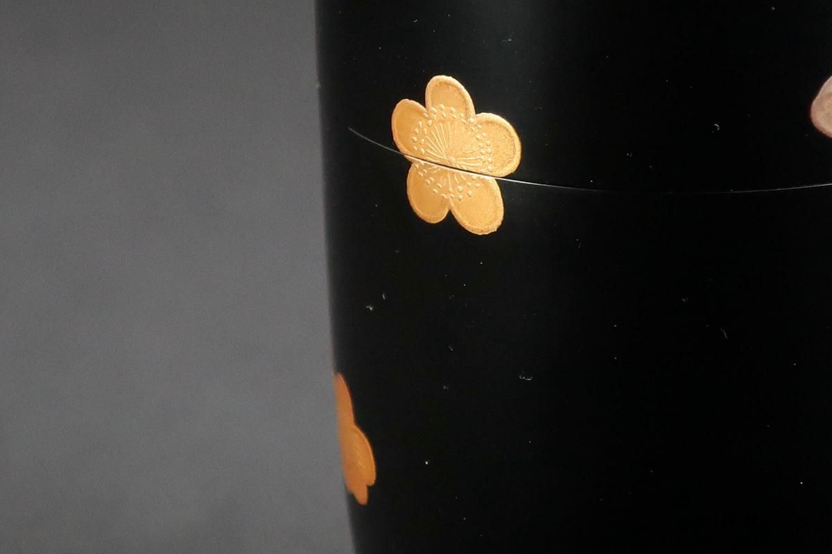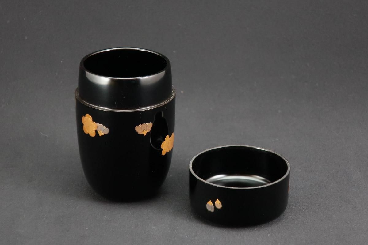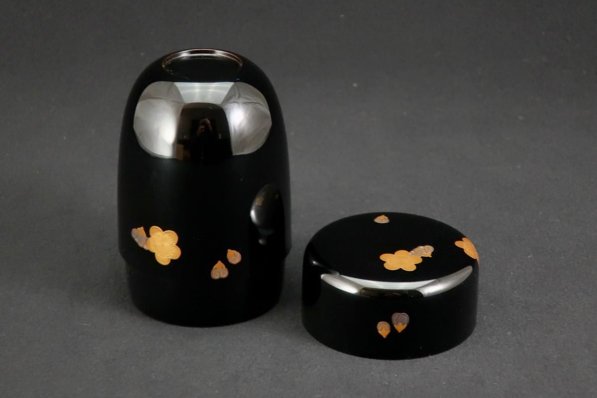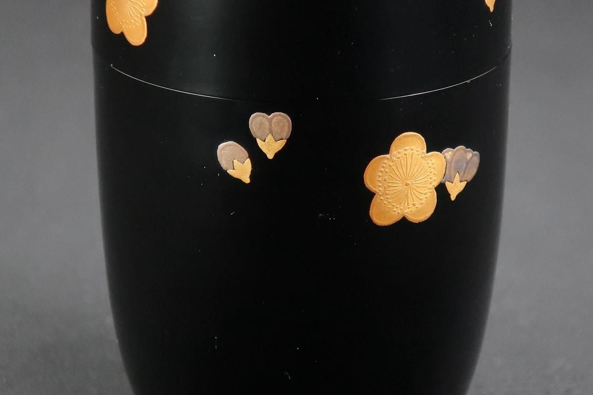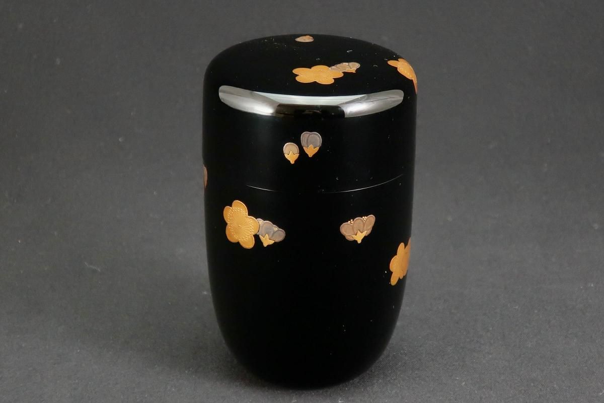 ☆絶妙なバランスで描かれた梅の蒔絵が可愛らしい細棗。新春にぴったりですね。茶道具の楽しさを教えてくれるような棗です。