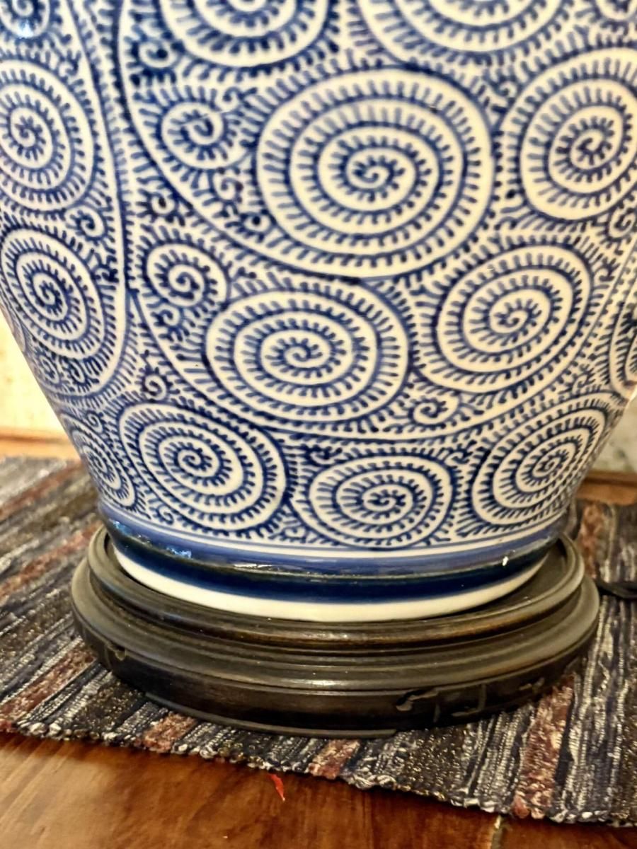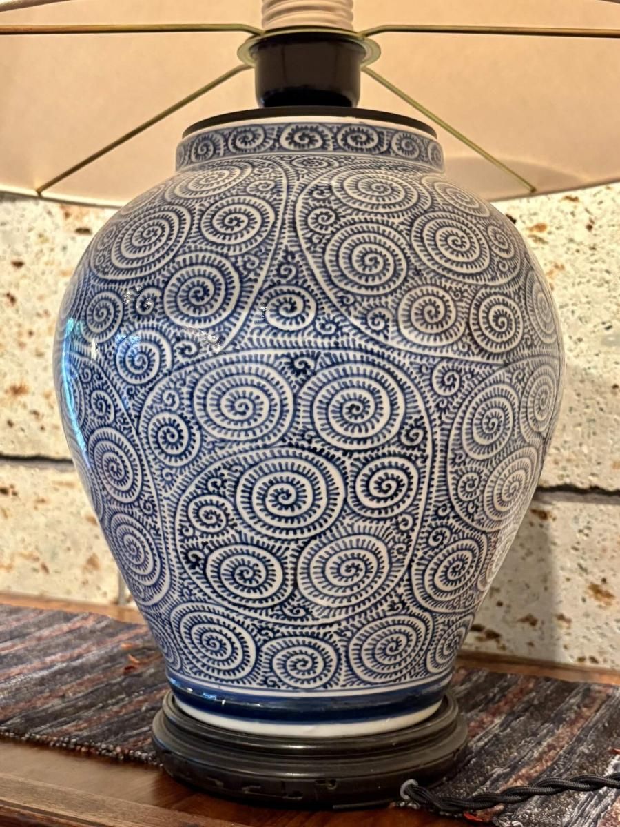 ☆蛸唐草文様の壺がようやく入荷♫立派なテーブルランプに仕上がりました。シェードとのバランスがとても良く大成功の仕上がりです。