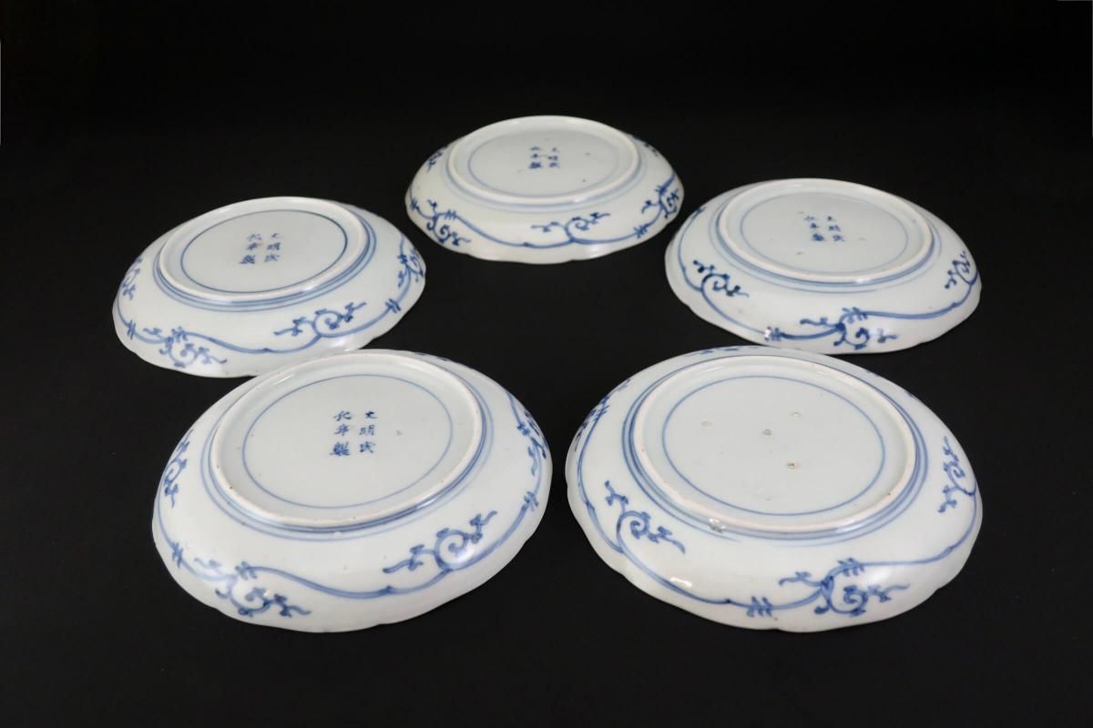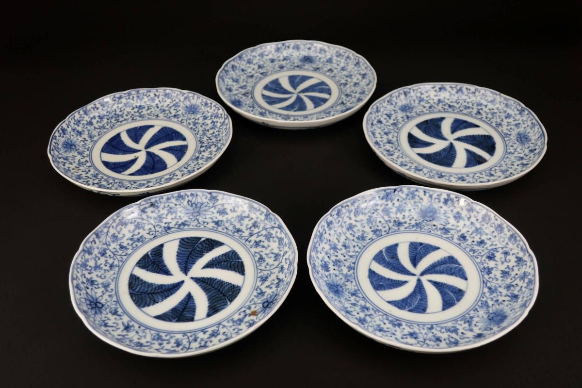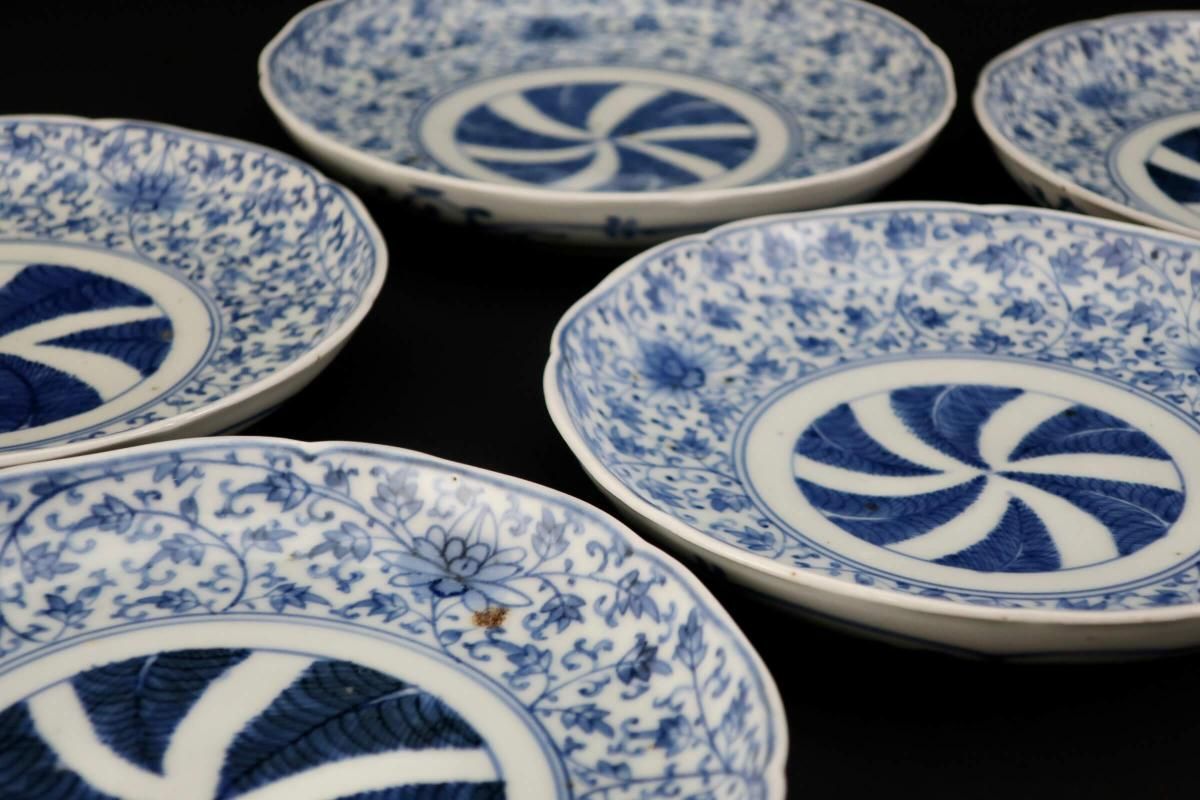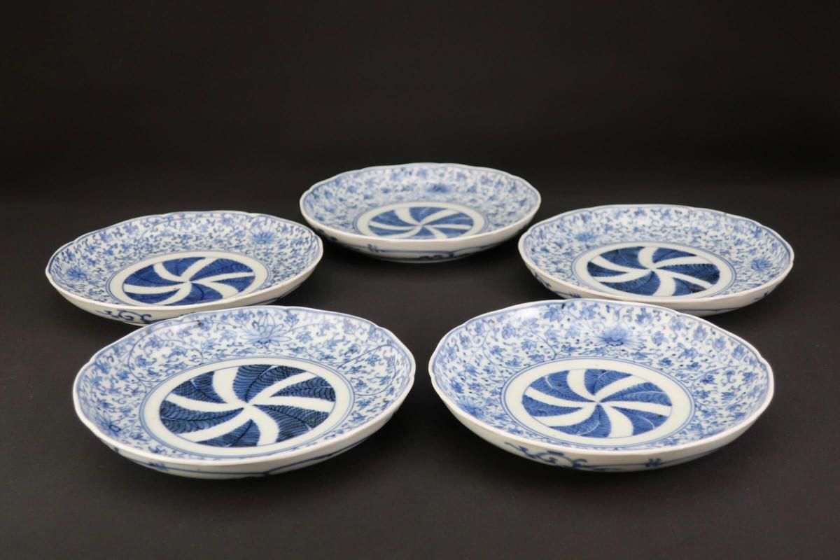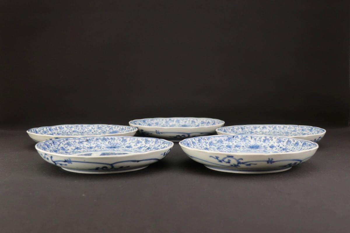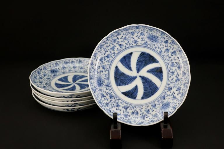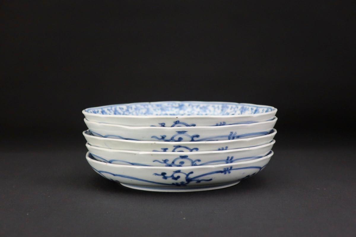 伊万里染付花唐草文六寸皿 五枚組 / Imari Blue & White Plates with 'Hanakarakusa' Pattern set of 5