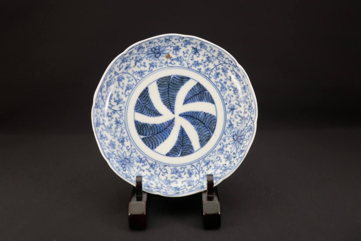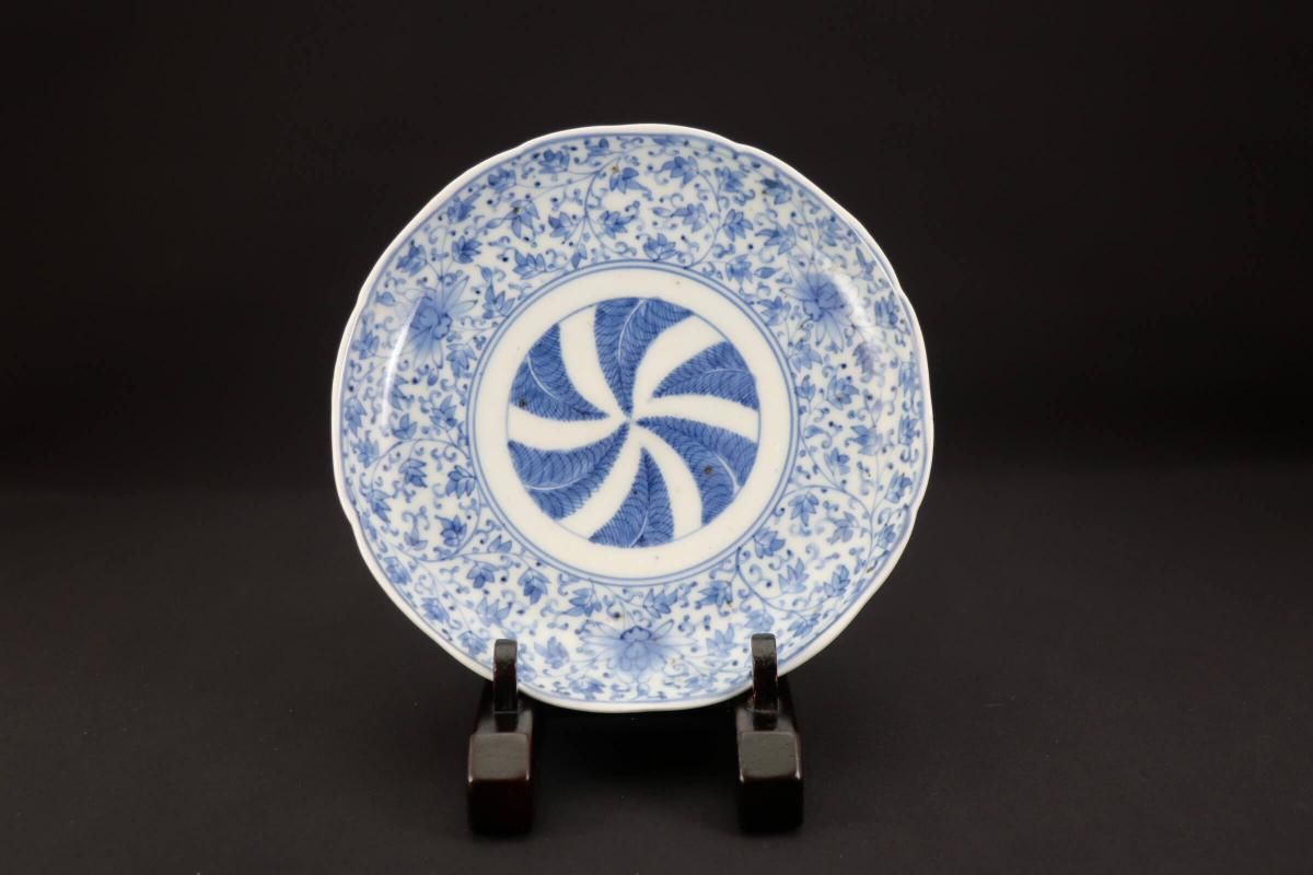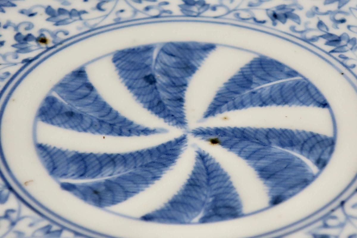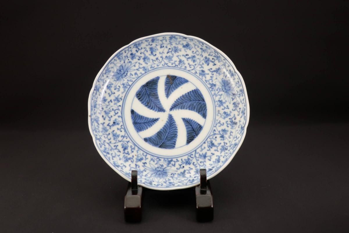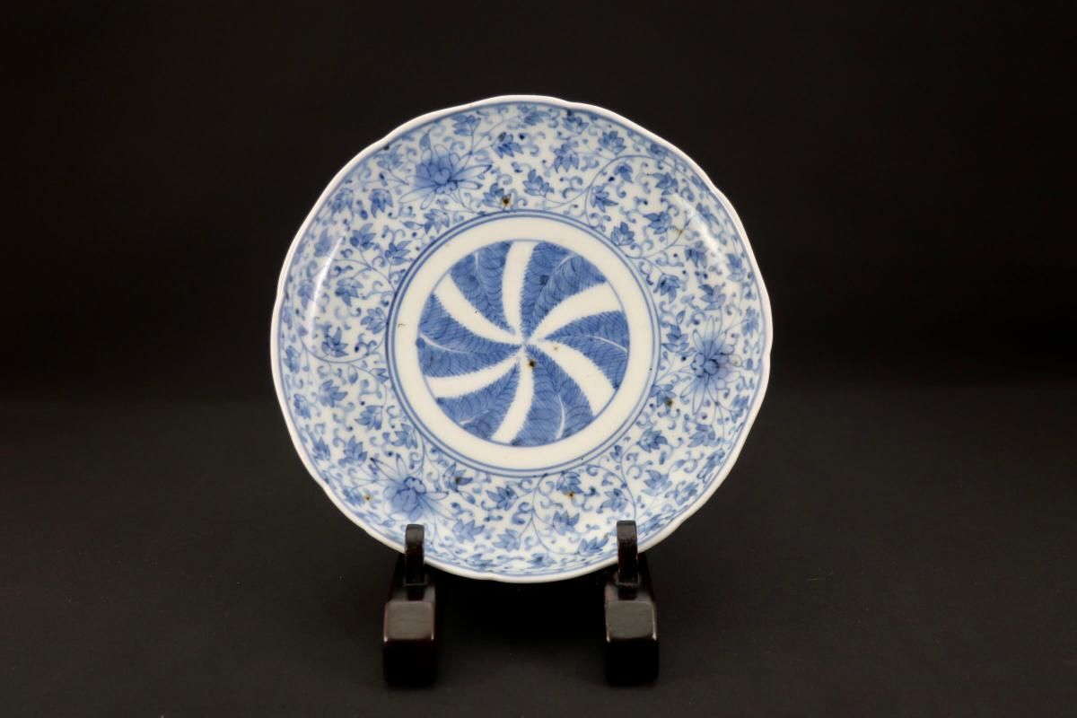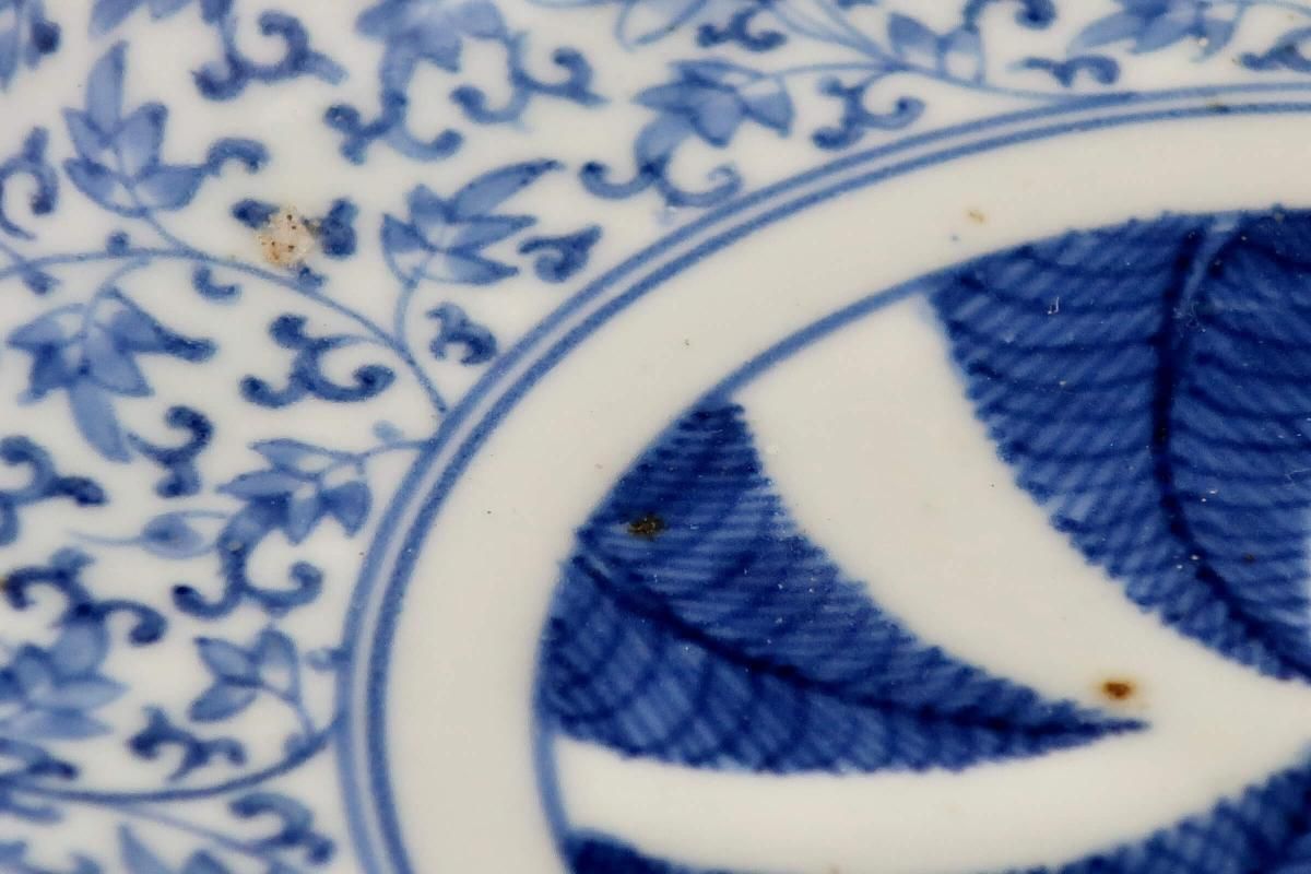 花唐草文様と羊歯の組み合わせは珍しく、濃いブルーが良いコントラストになっています。