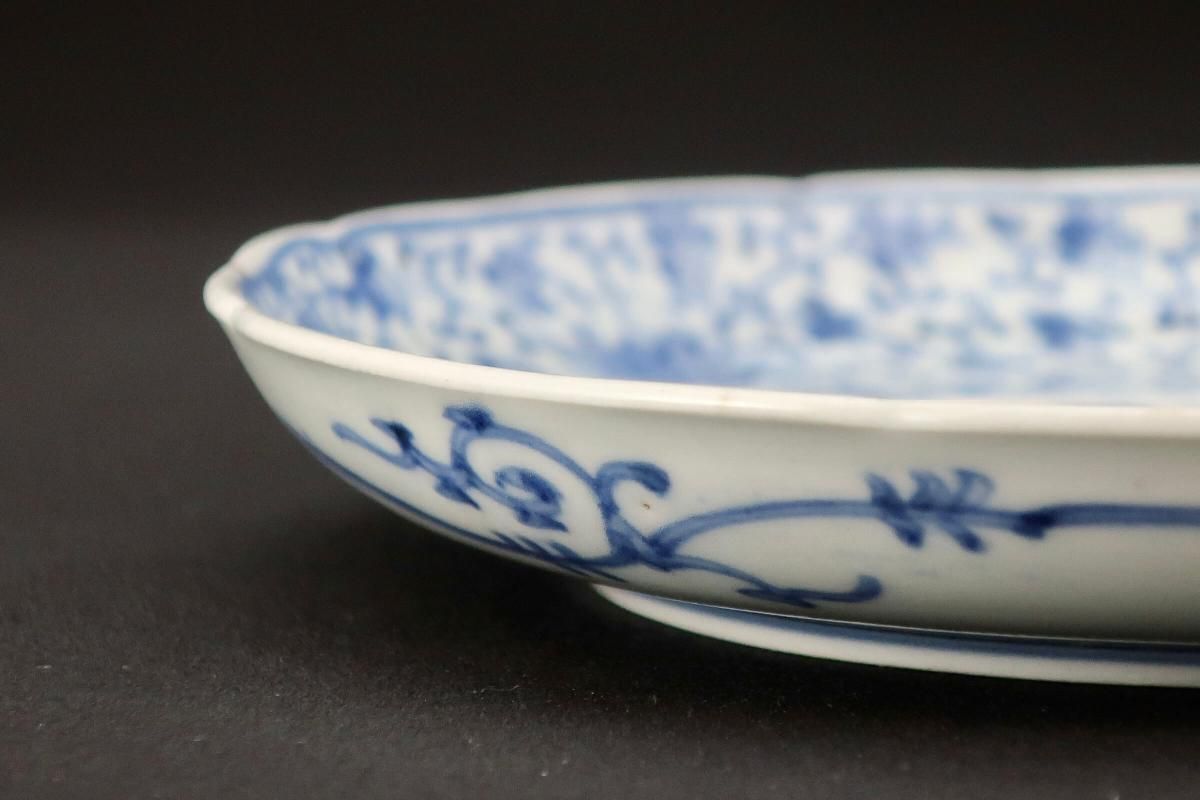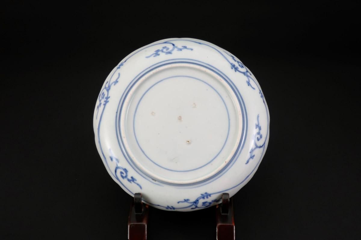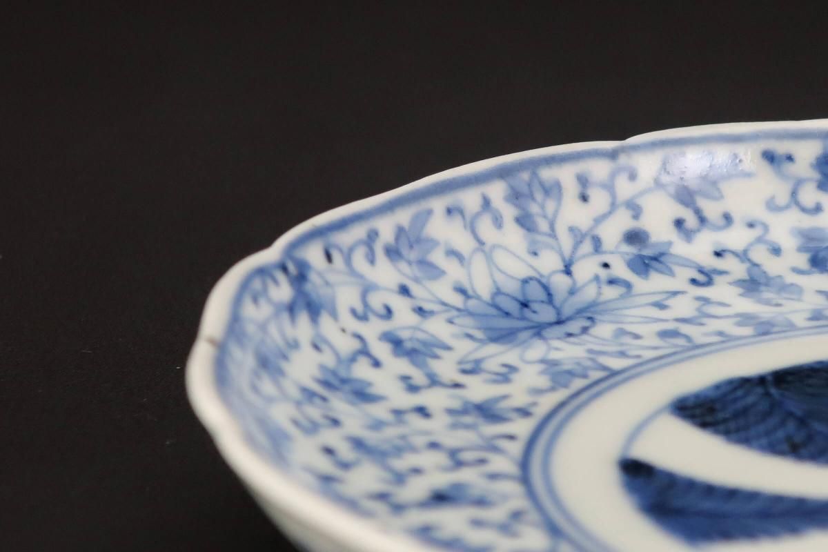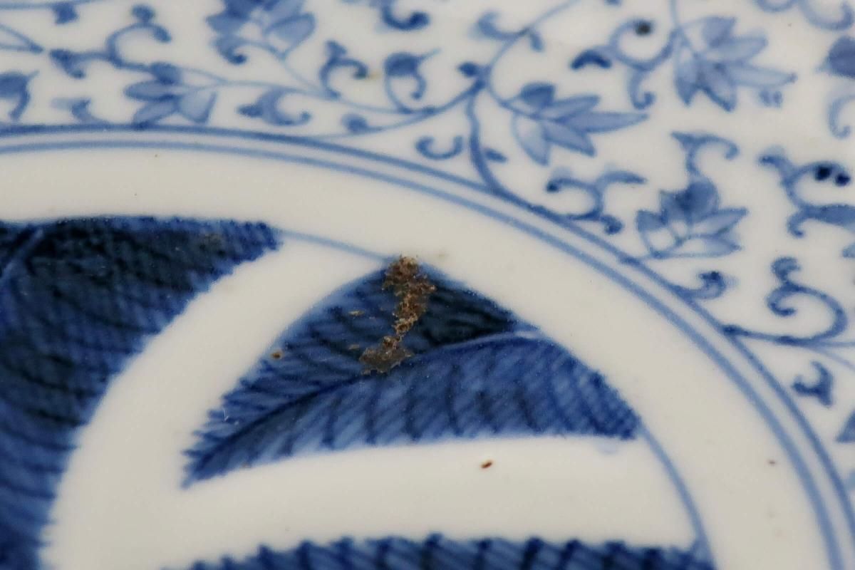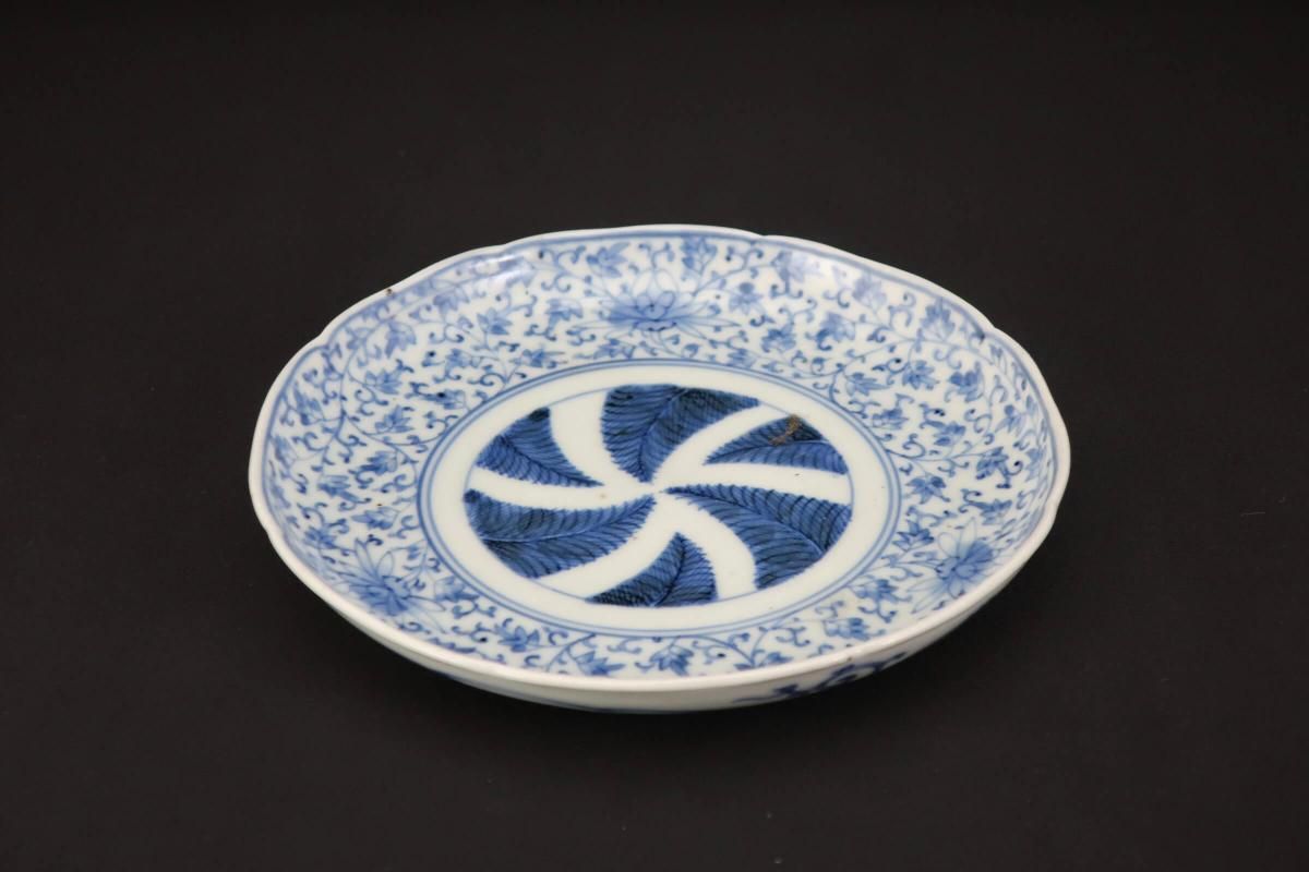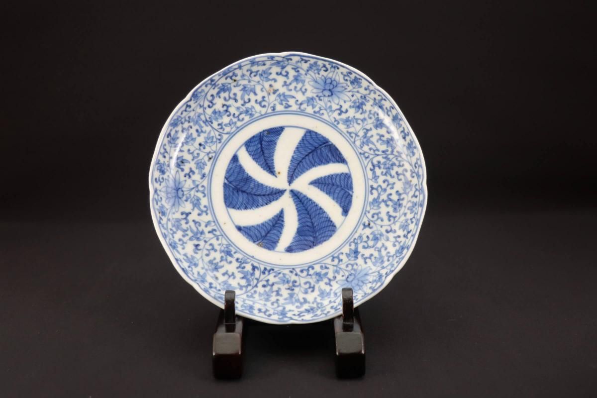 花唐草文様と羊歯の組み合わせは珍しく、濃いブルーが良いコントラストになっています。