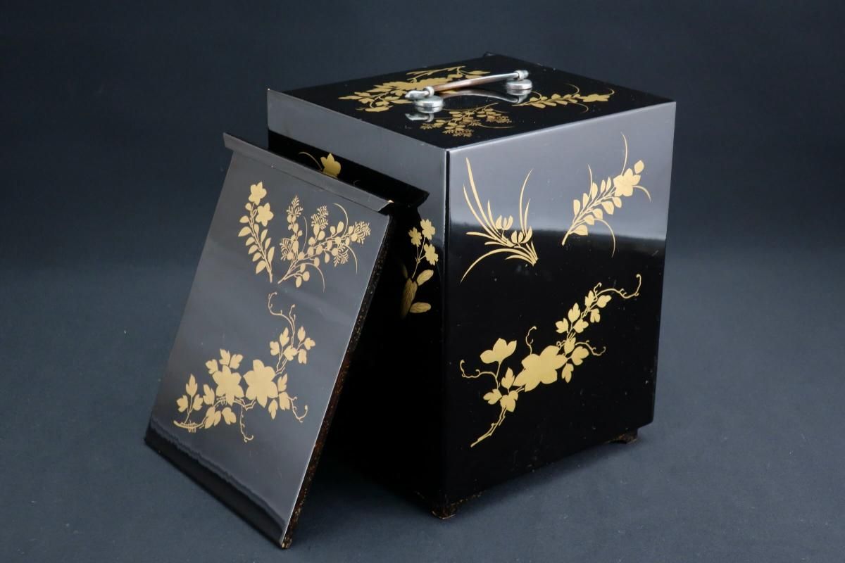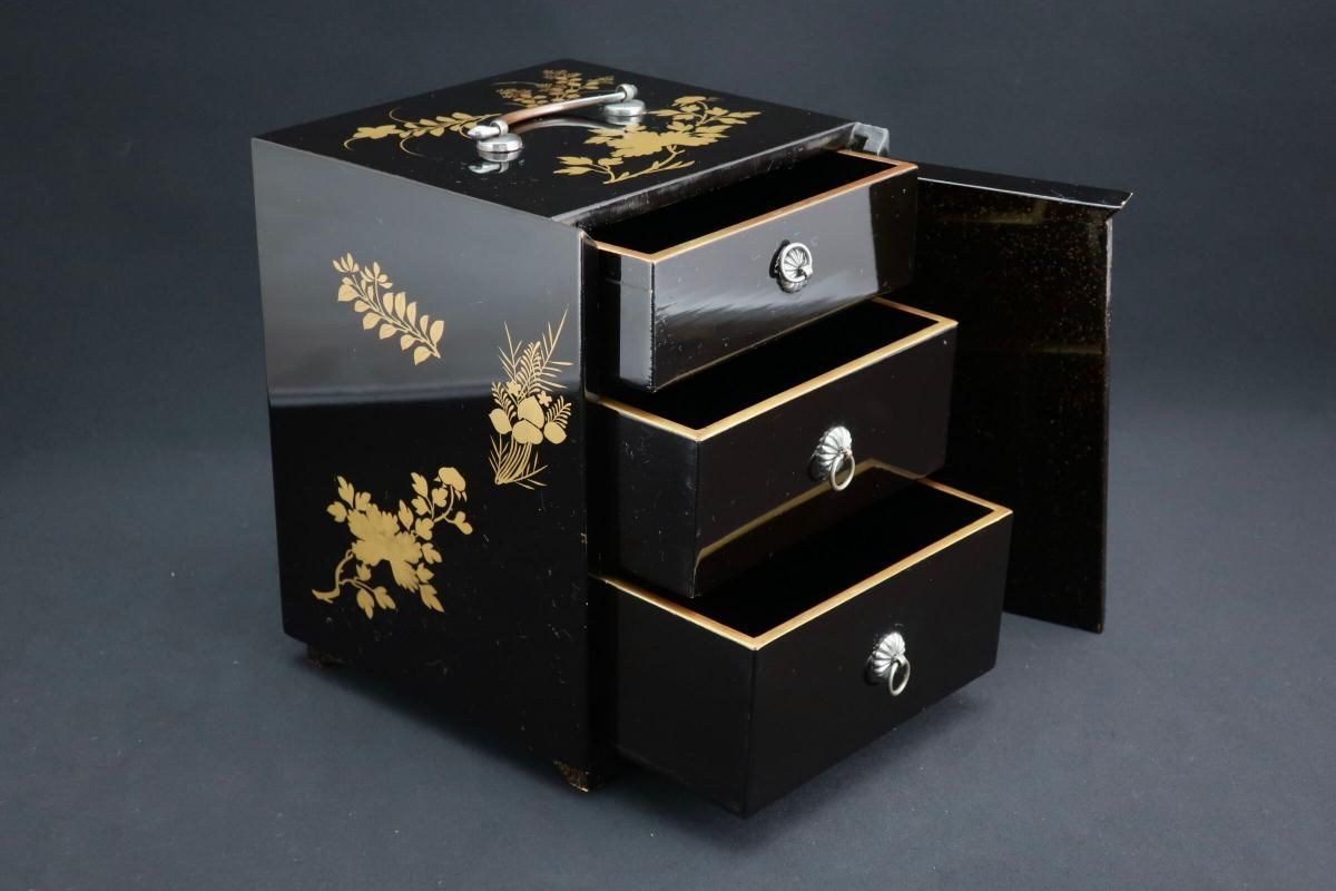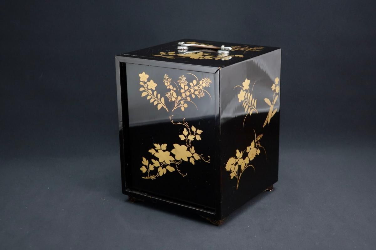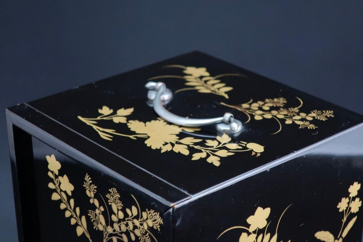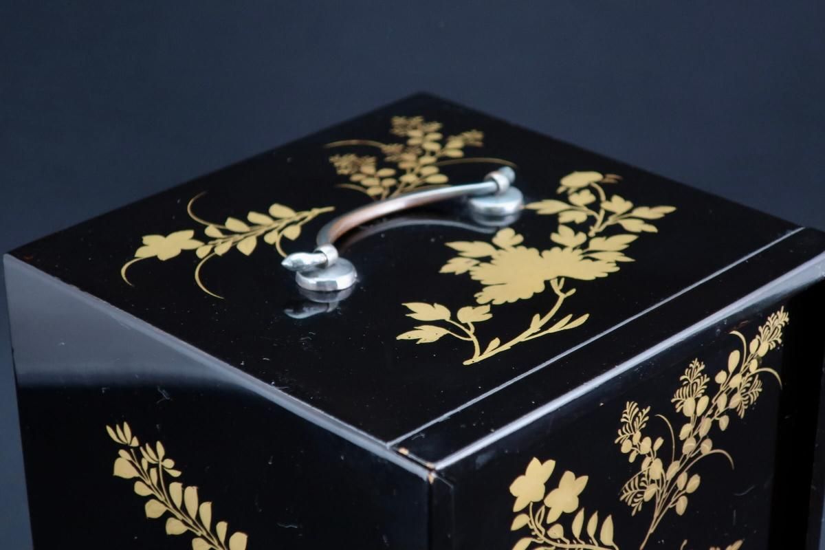 黒塗草花金蒔絵菓子箪笥 / Black-lacuquered Small Chest of Drawers for Sweet 'Kashi Tansu'