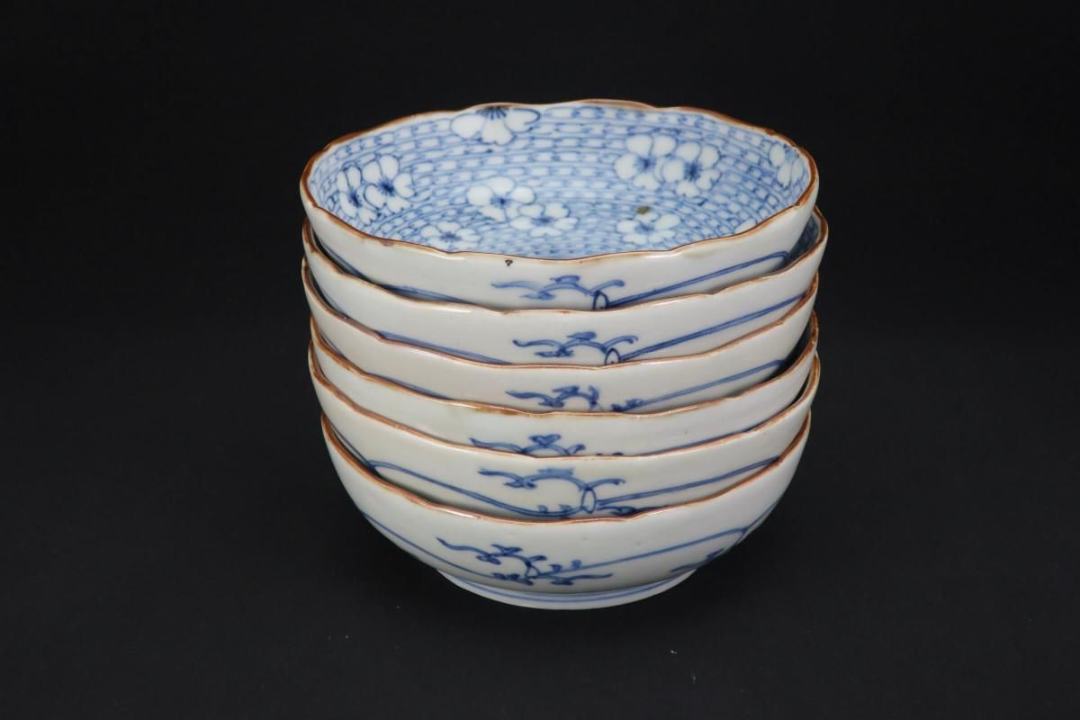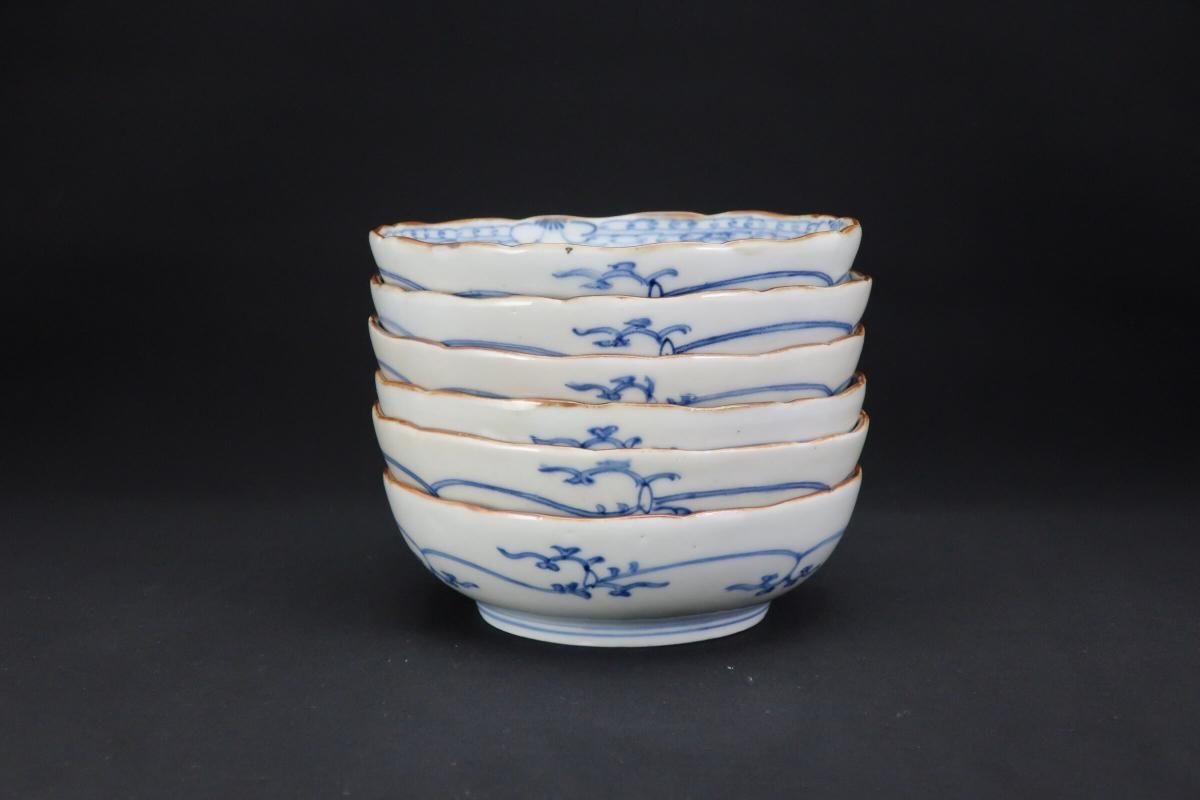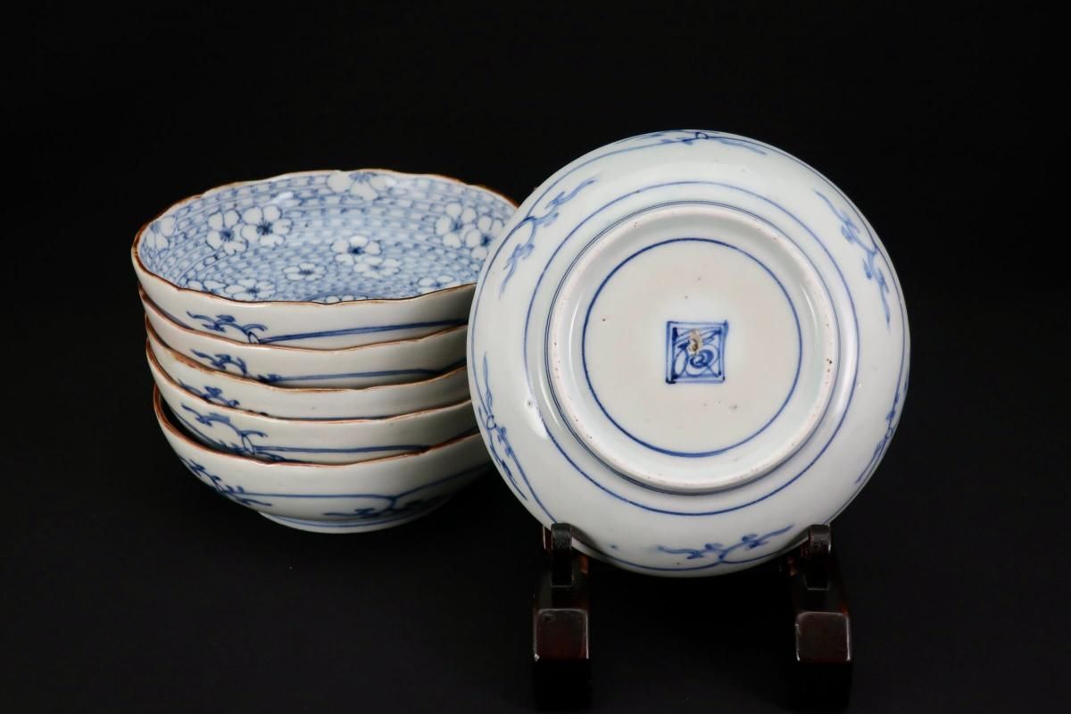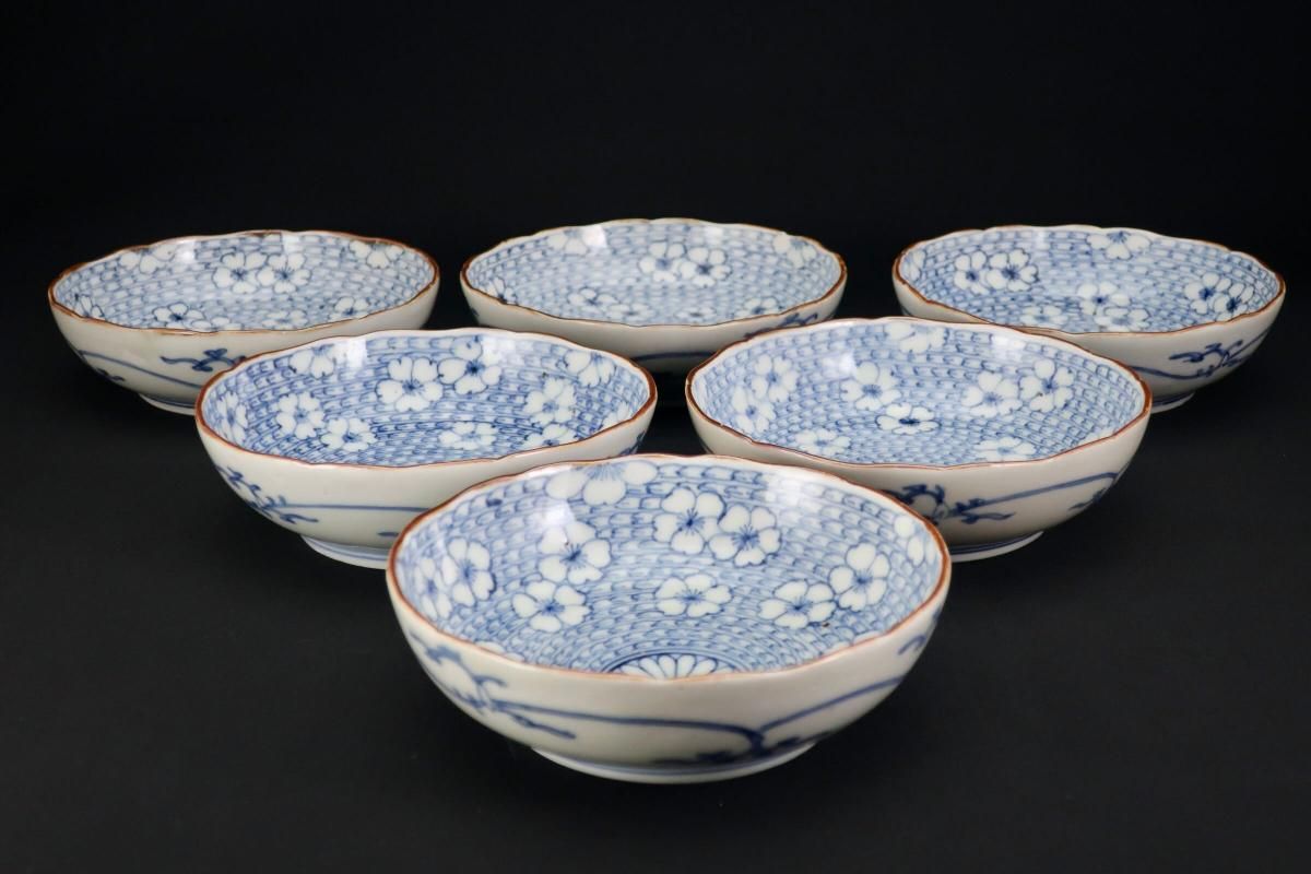 伊万里菊桜文なます皿 六枚組 / Imari Blue & White 'Namasu' Bowls with the picture of 'Sakura' set of 6