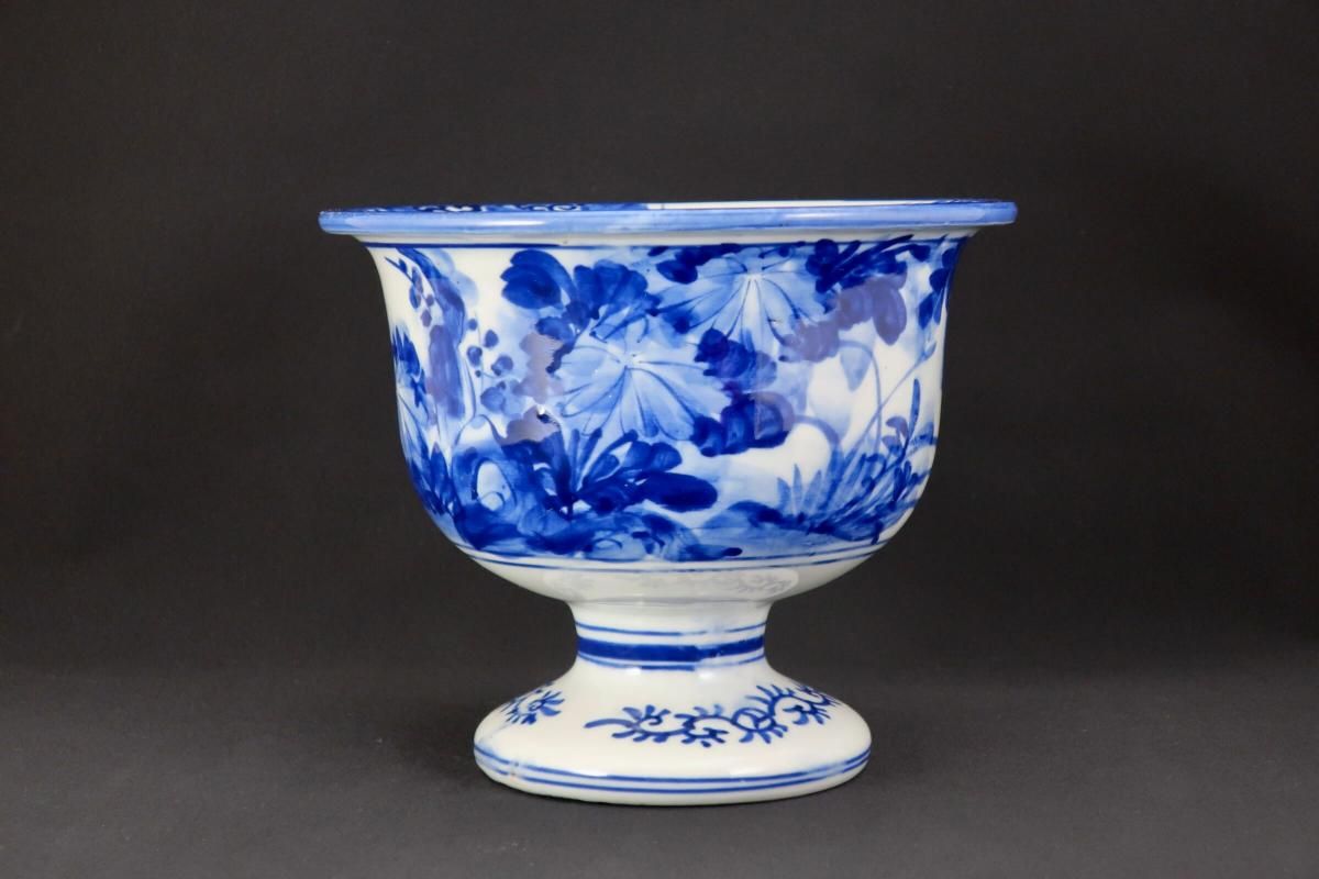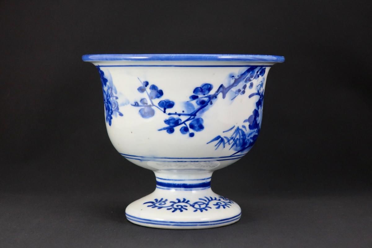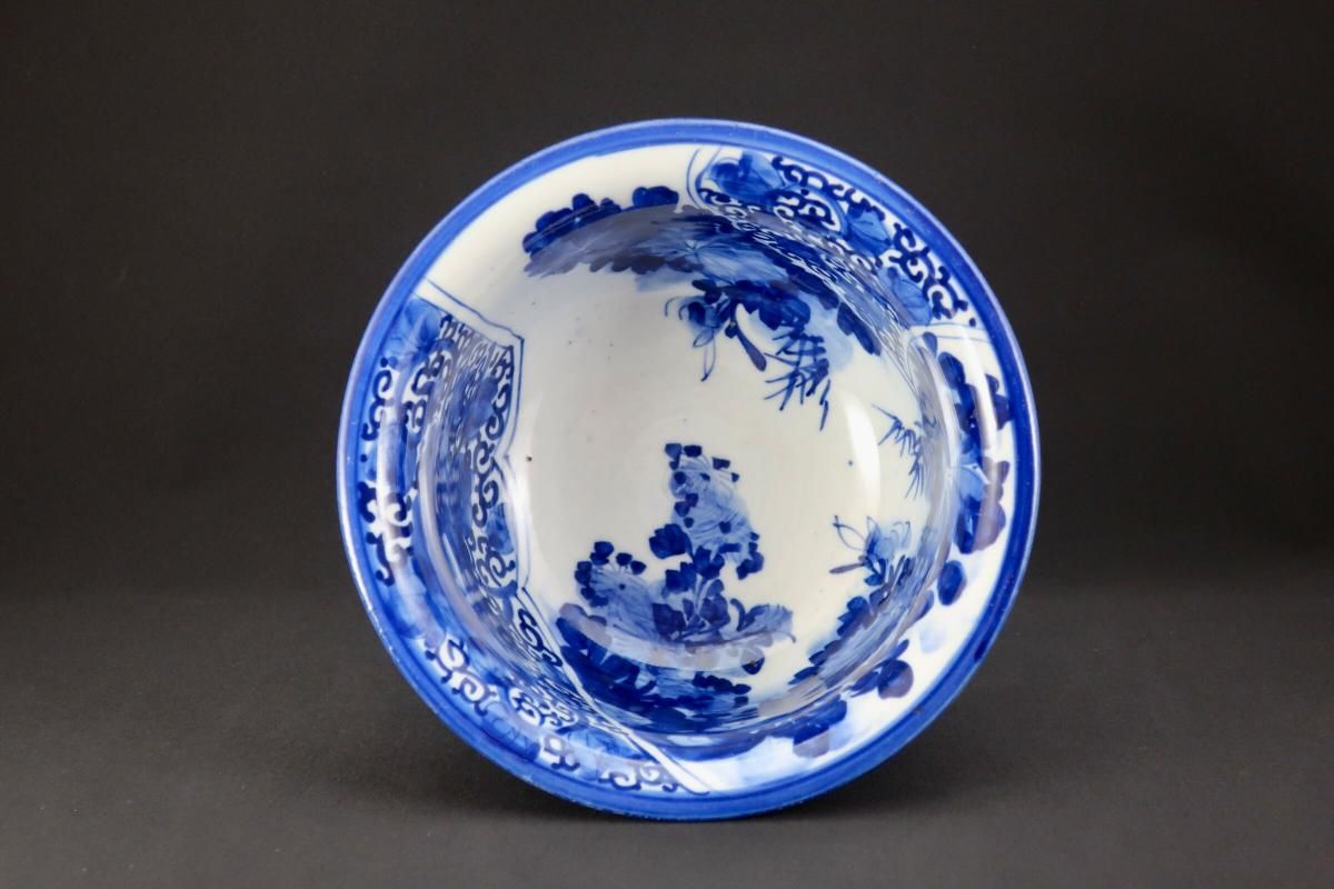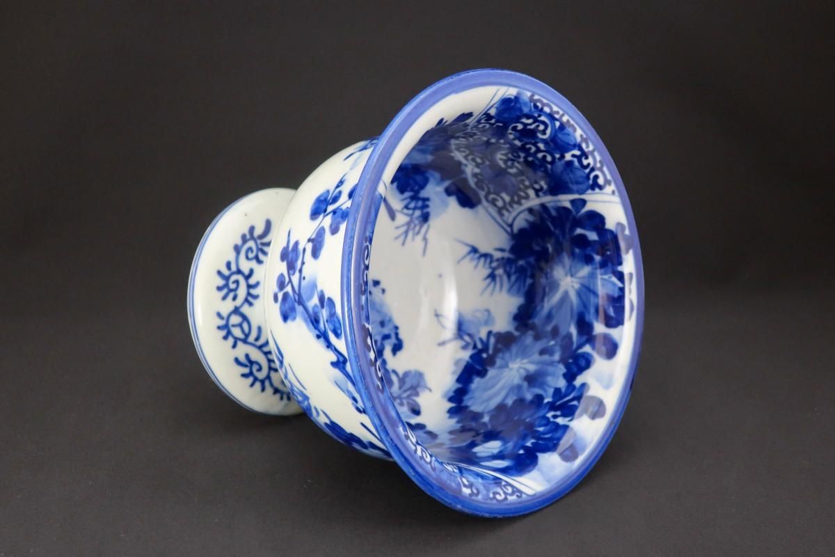 瀬戸ベロ藍染付草花文盃洗 / Seto Blue & White 'Haisen' Sake Cup Washing Bowl
