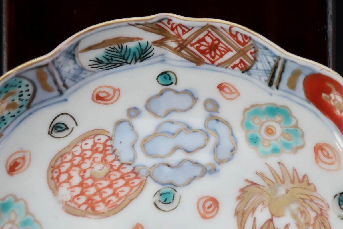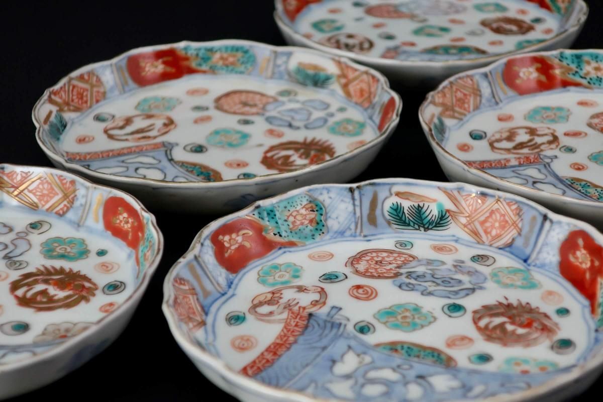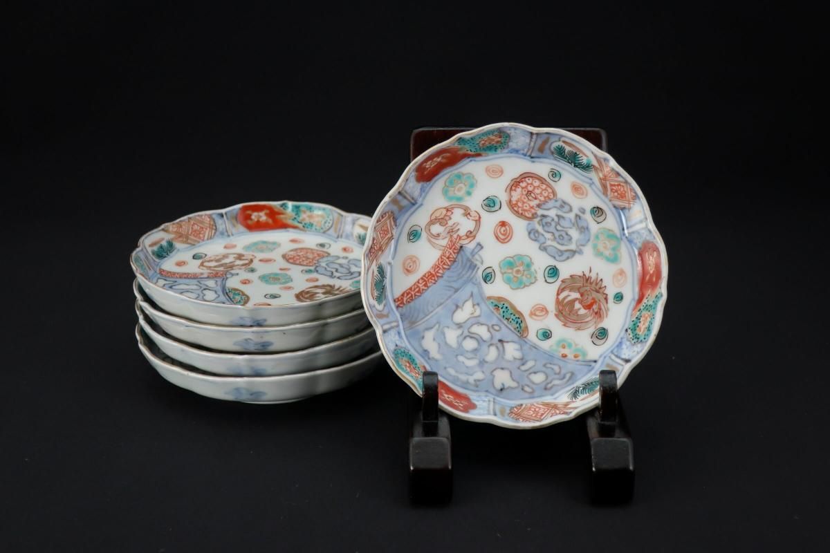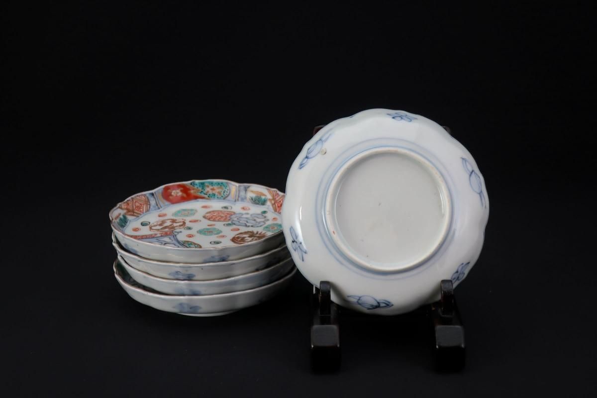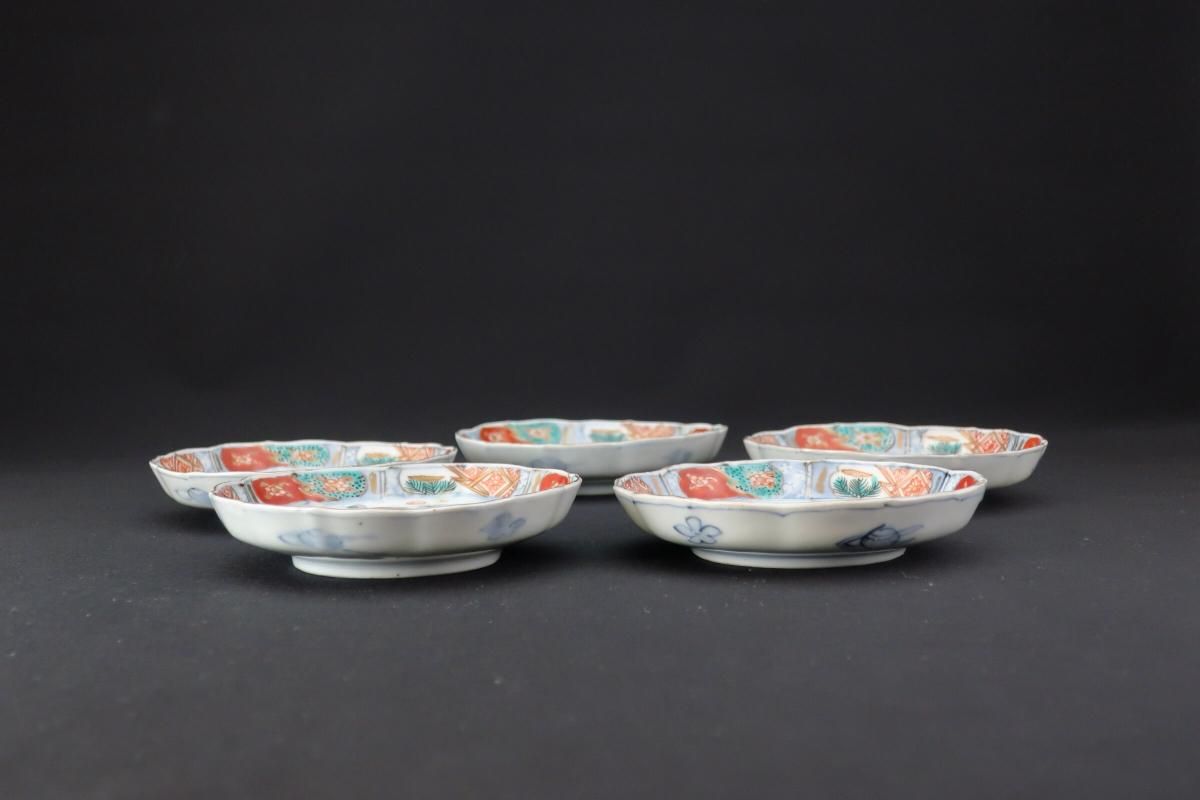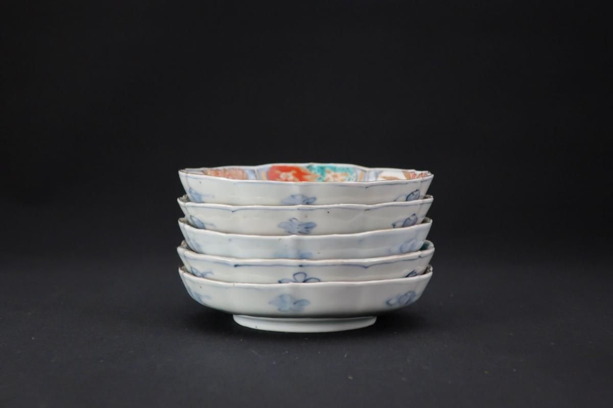 伊万里色絵輪花形四寸皿 五枚組 / Imari Flower-shaped Small Polychrome Plates set of 5