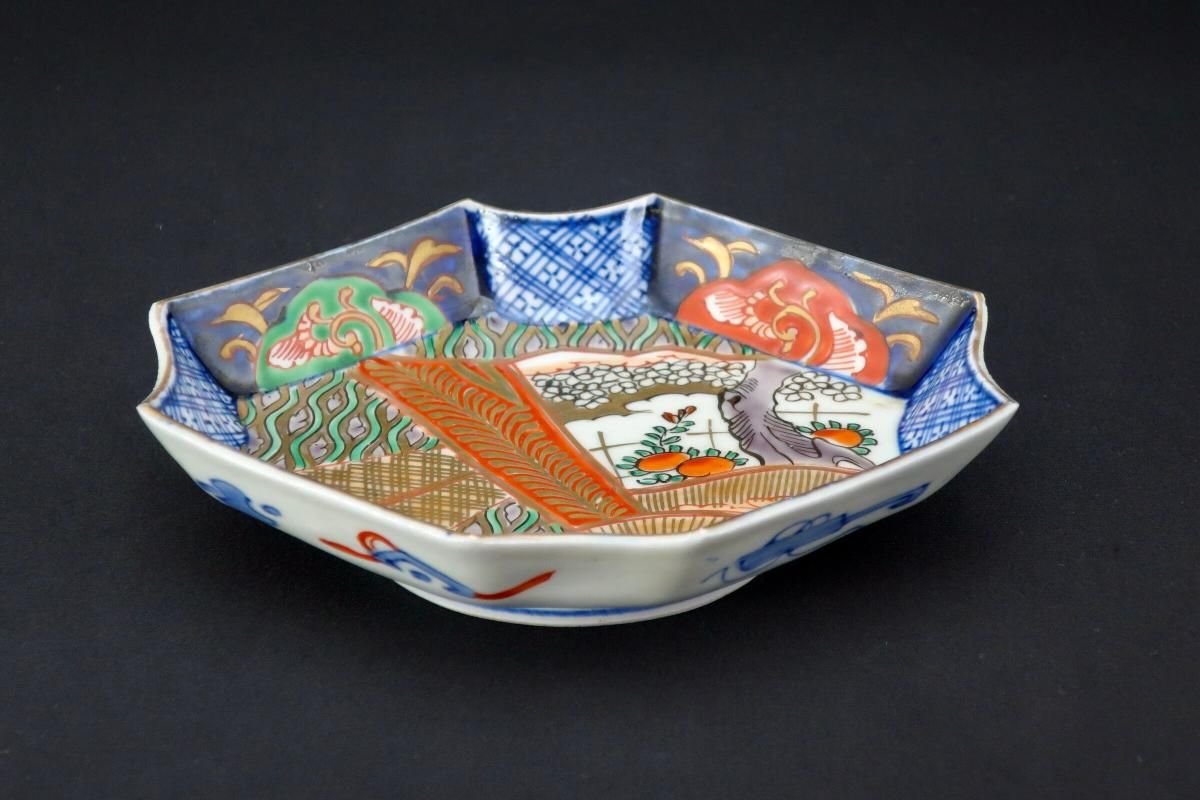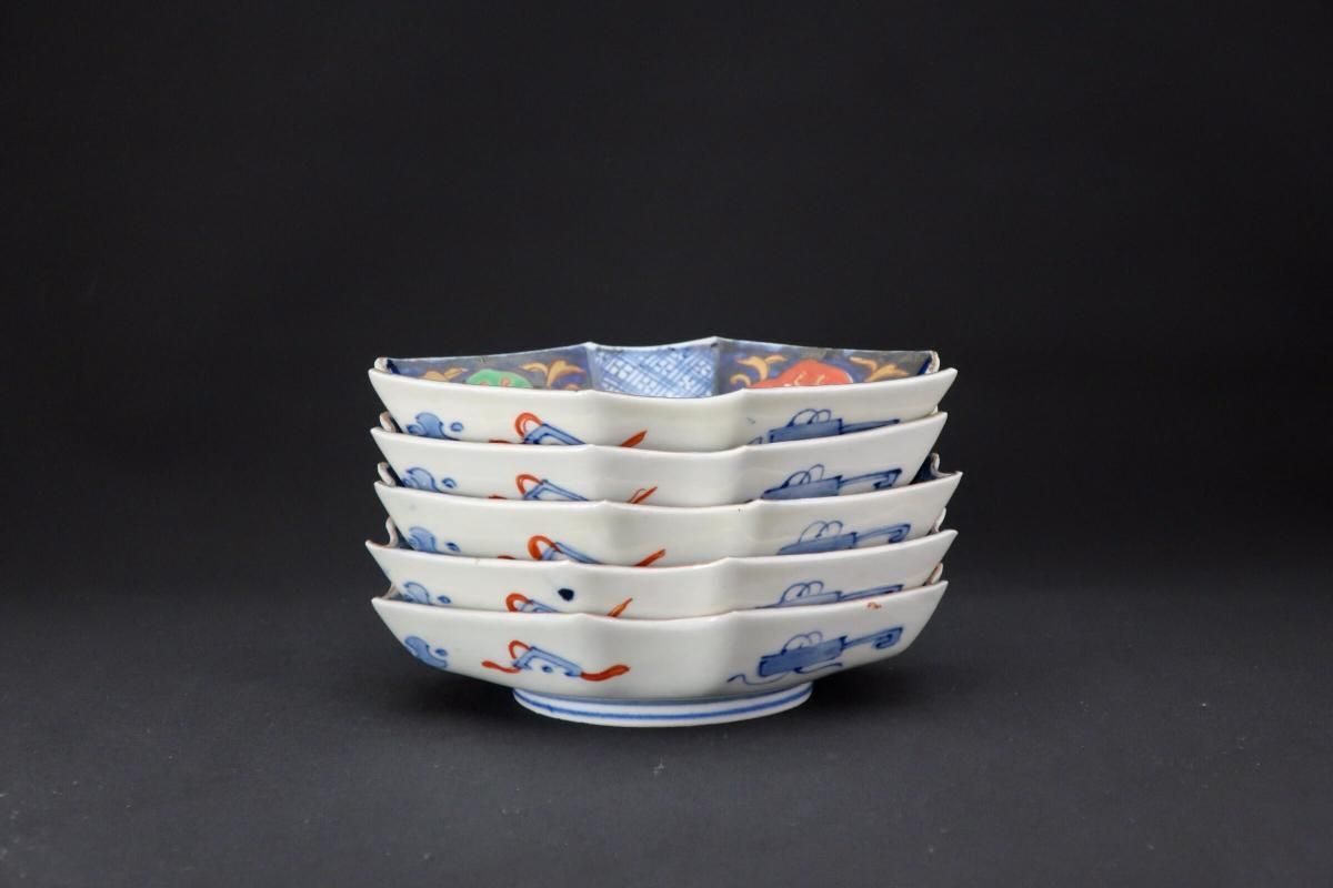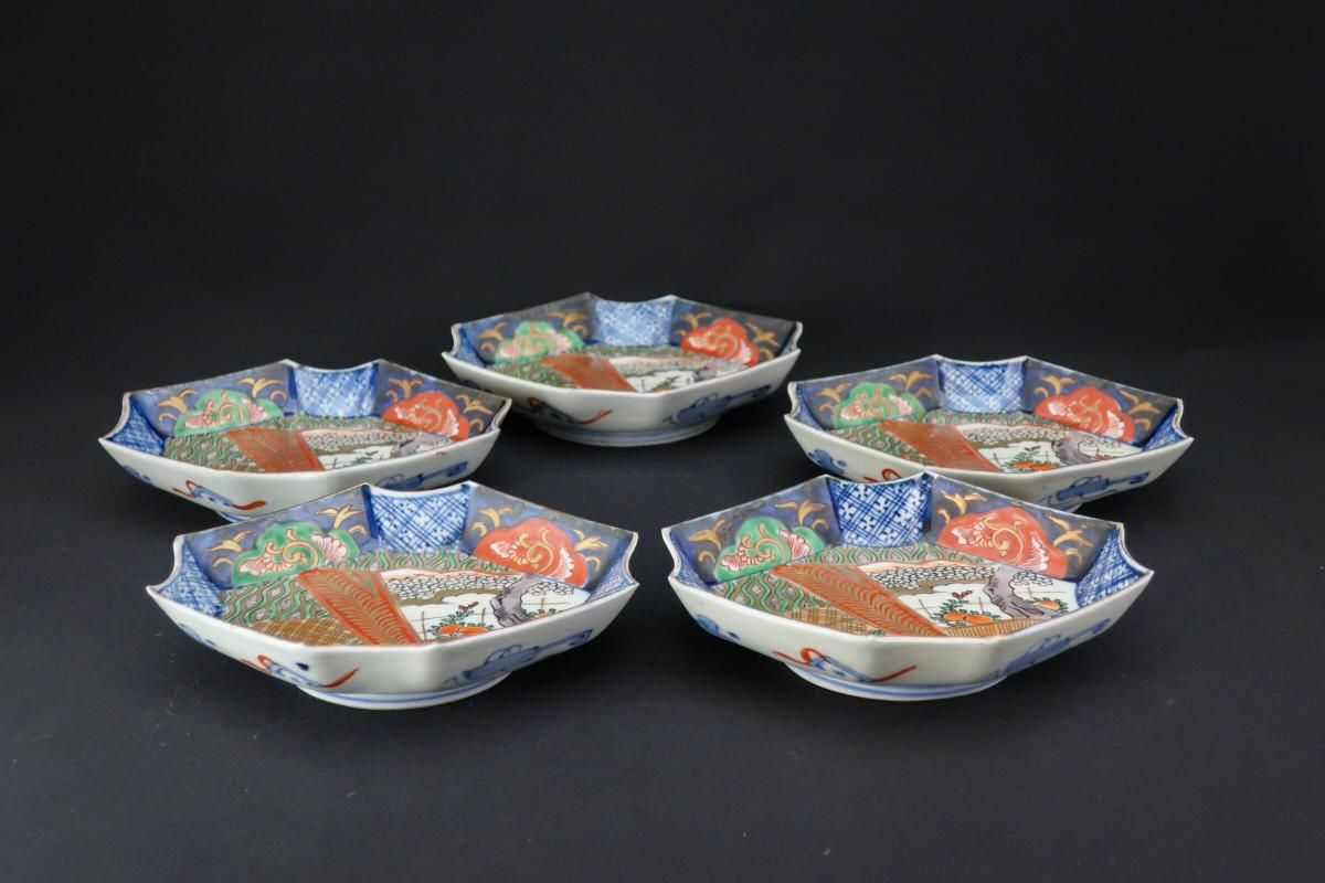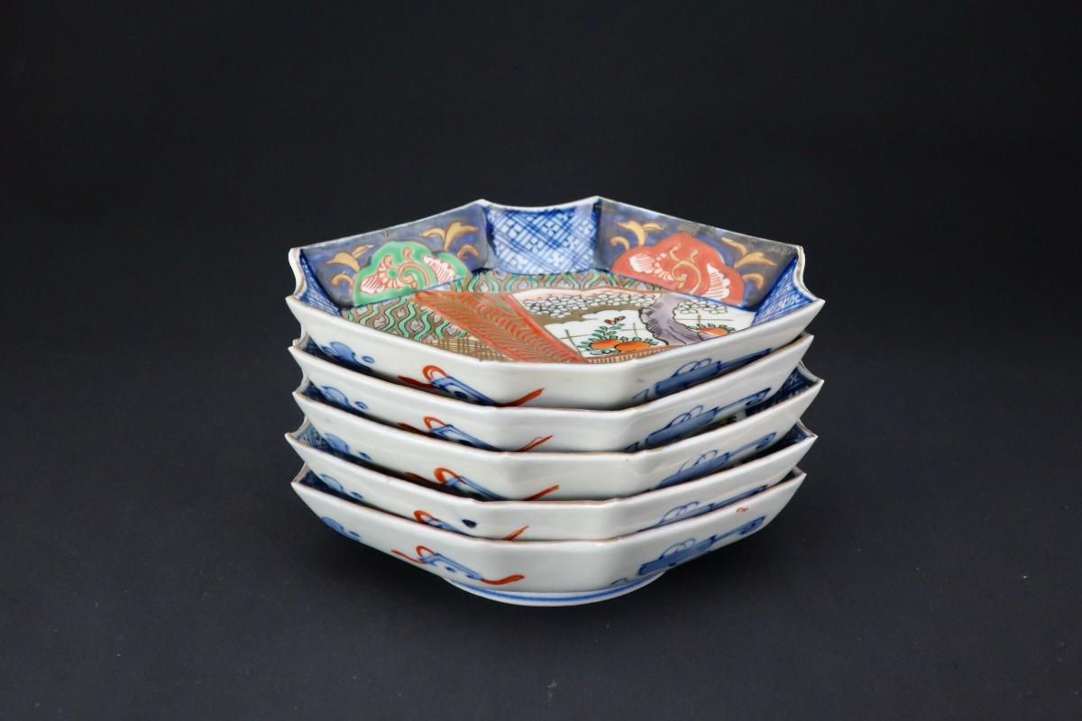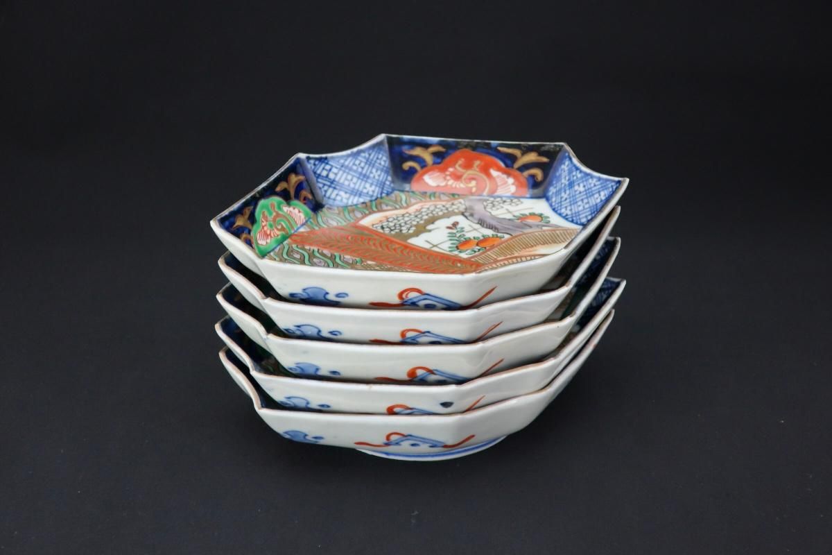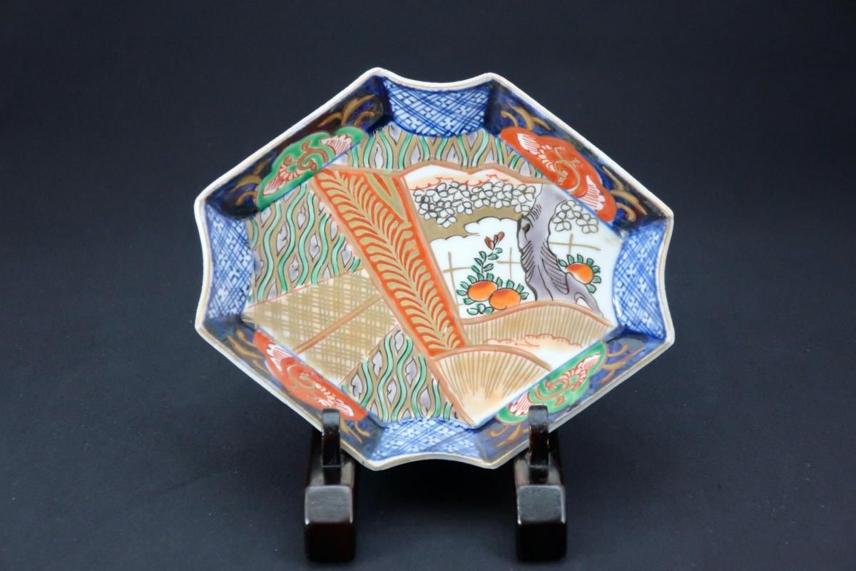伊万里色絵扇面文菱形皿 五枚組 / Imari Diamond-shaped Polychrome Plates wit the picture of Fans set of 4