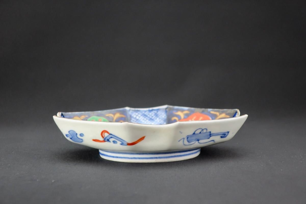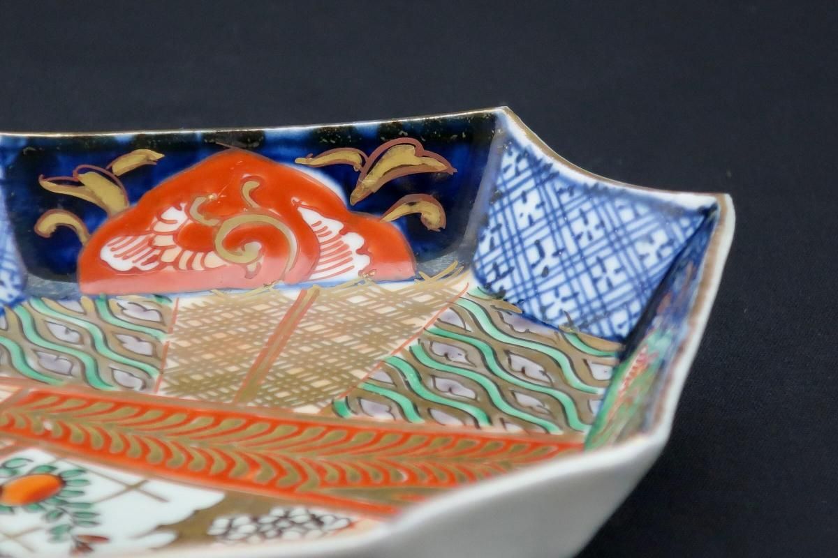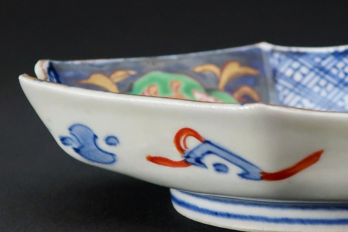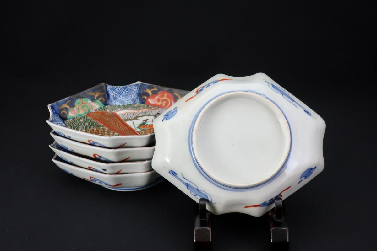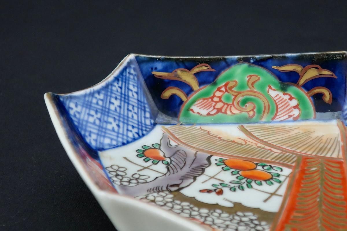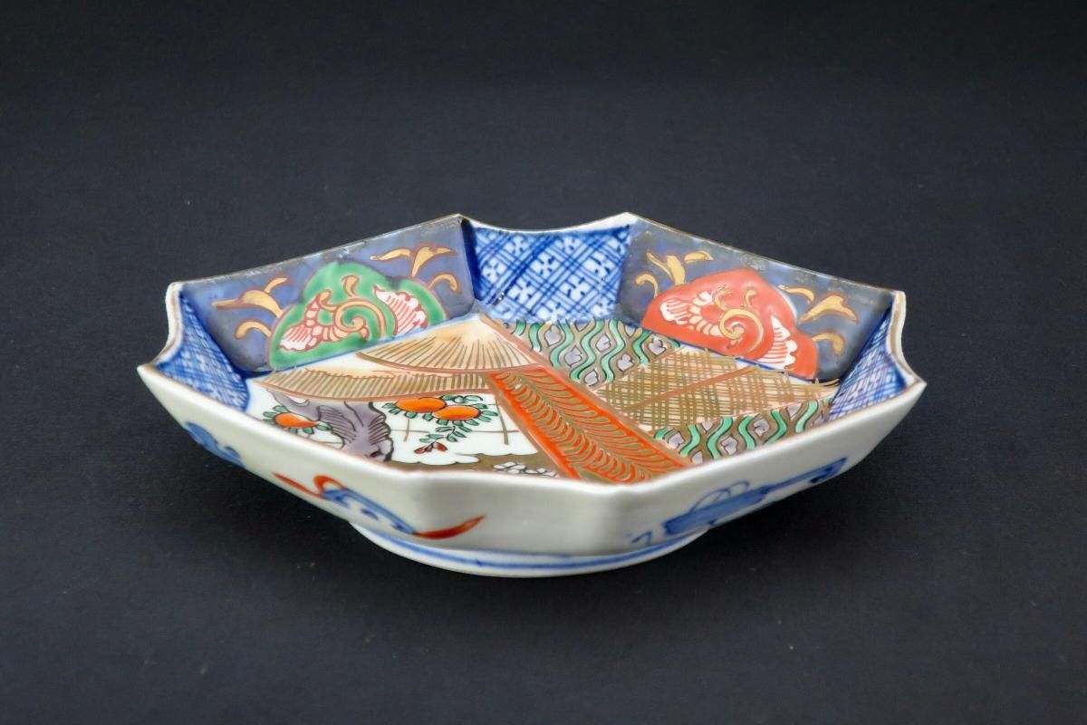 伊万里色絵扇面文菱形皿 五枚組 / Imari Diamond-shaped Polychrome Plates wit the picture of Fans set of 4