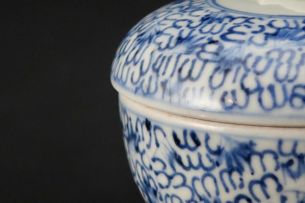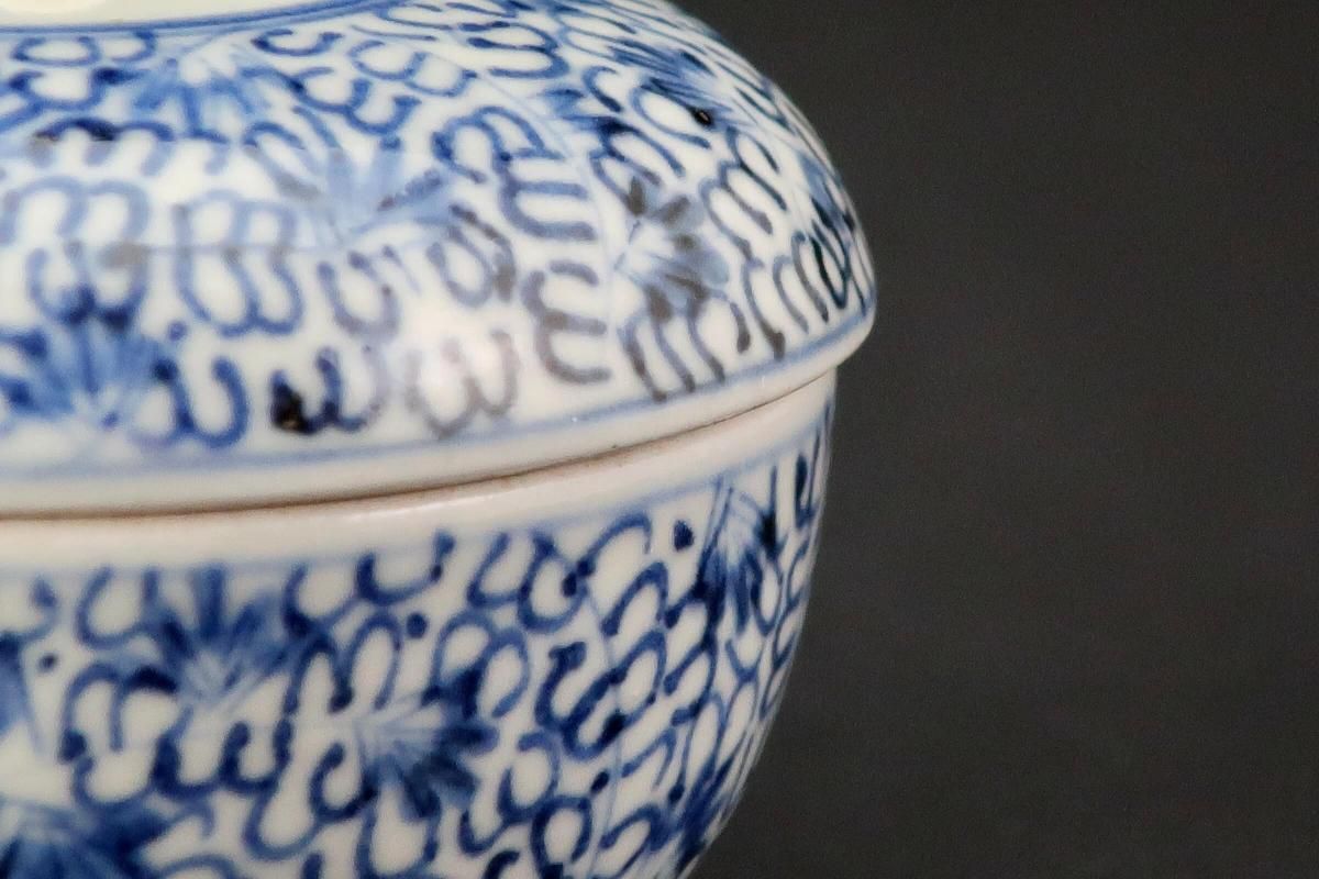 伊万里染付微塵唐草文ミニ食籠(珍味入) / Imari VERY Small Blue & White Spice Box